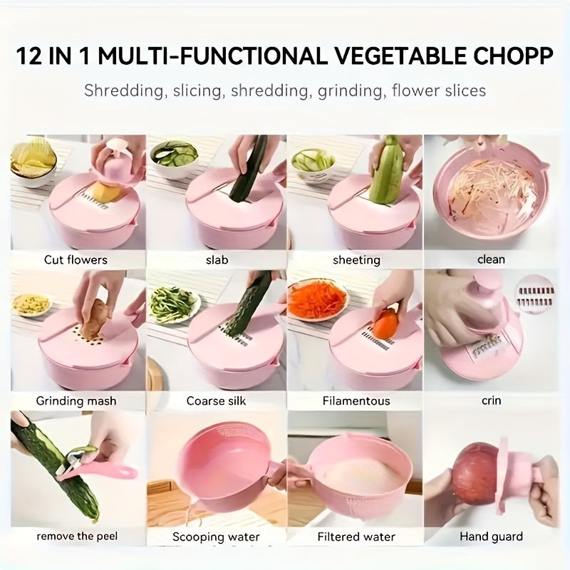 12-in-1 Manual Vegetable Chopper and Mandoline Slicer - Stainless Steel, Non-Rechargeable, Multi-Purpose Kitchen Grater with Hand Guard - Ideal for Shredding, Slicing Carrots, Potatoes, Cucumbers - Perfect Mother'S Day Gift