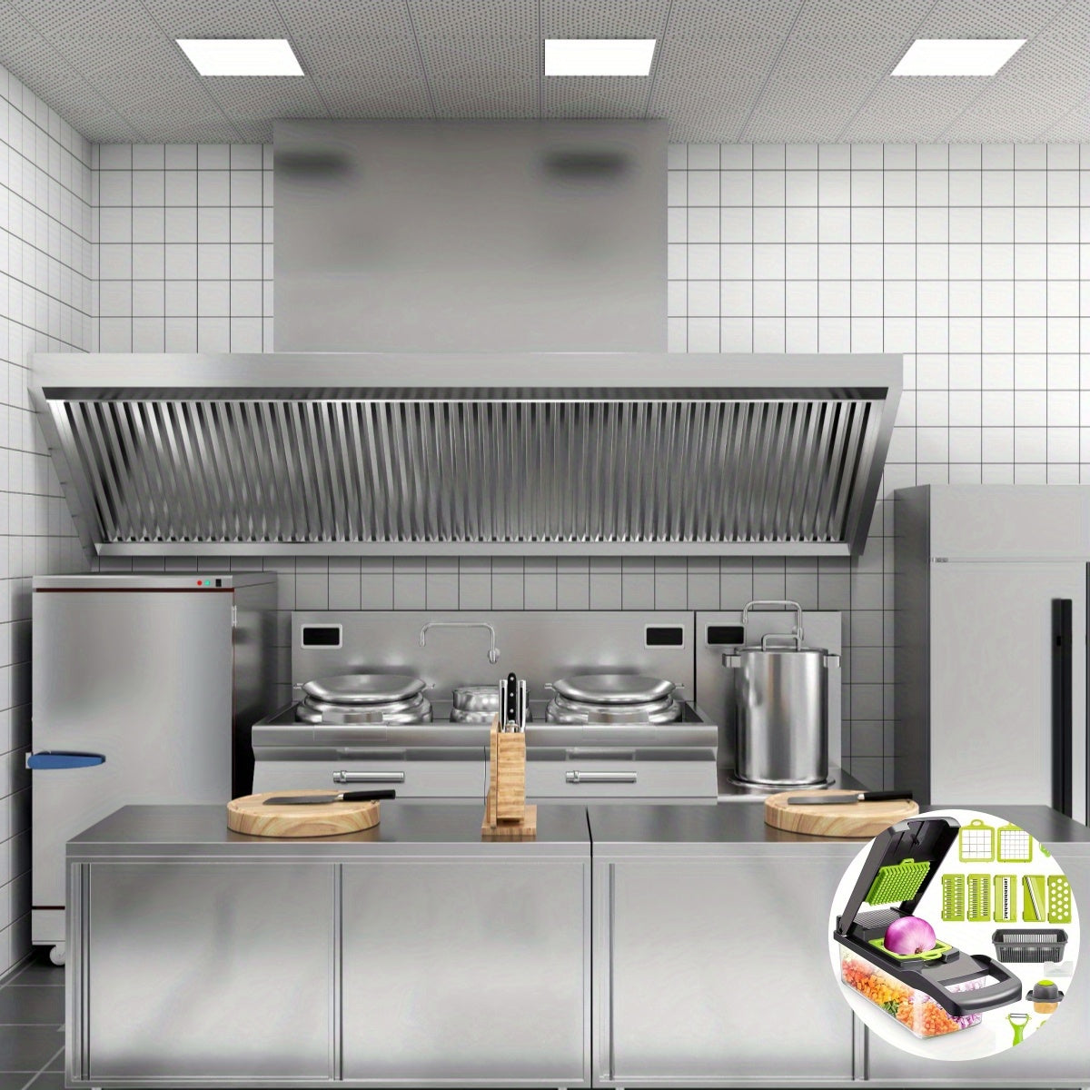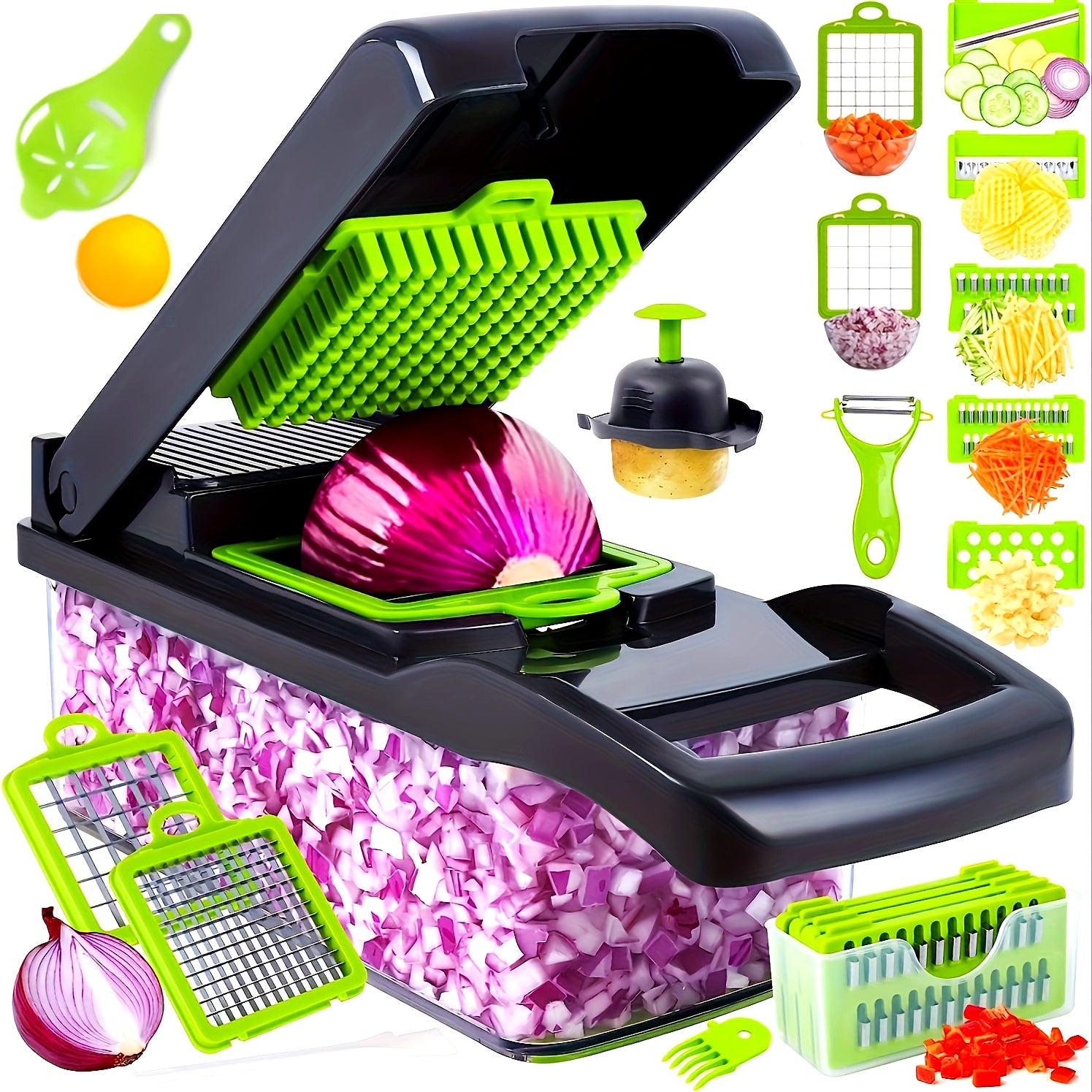 16-in-1 Multifunctional Vegetable Chopper - Manual Food Slicer Dicer with Container, Kitchen Veggie Cutter for Onion, Carrot, Garlic - Plastic Kitchen Gadget Set with Drain Basket & Hand Protector