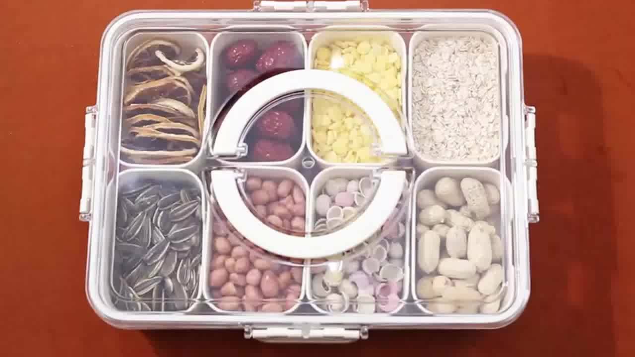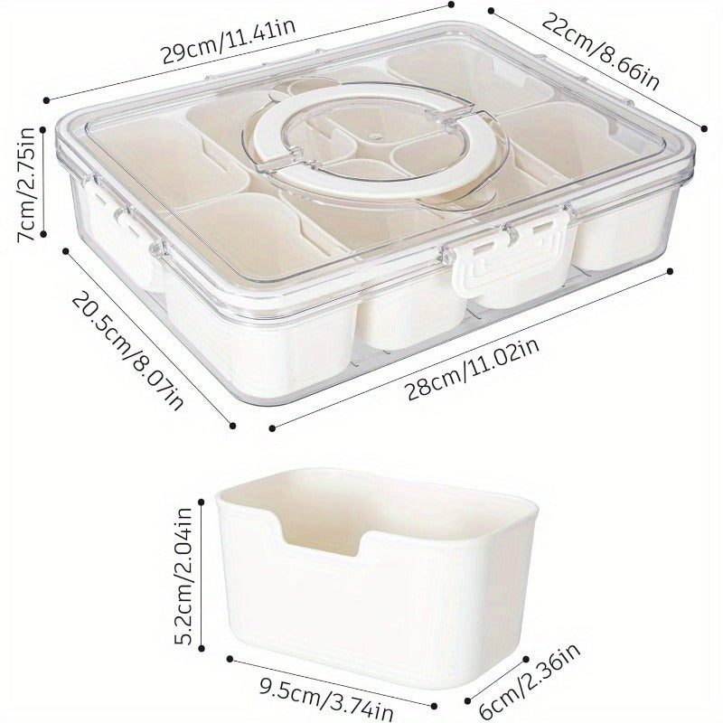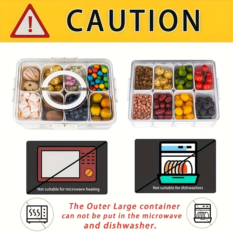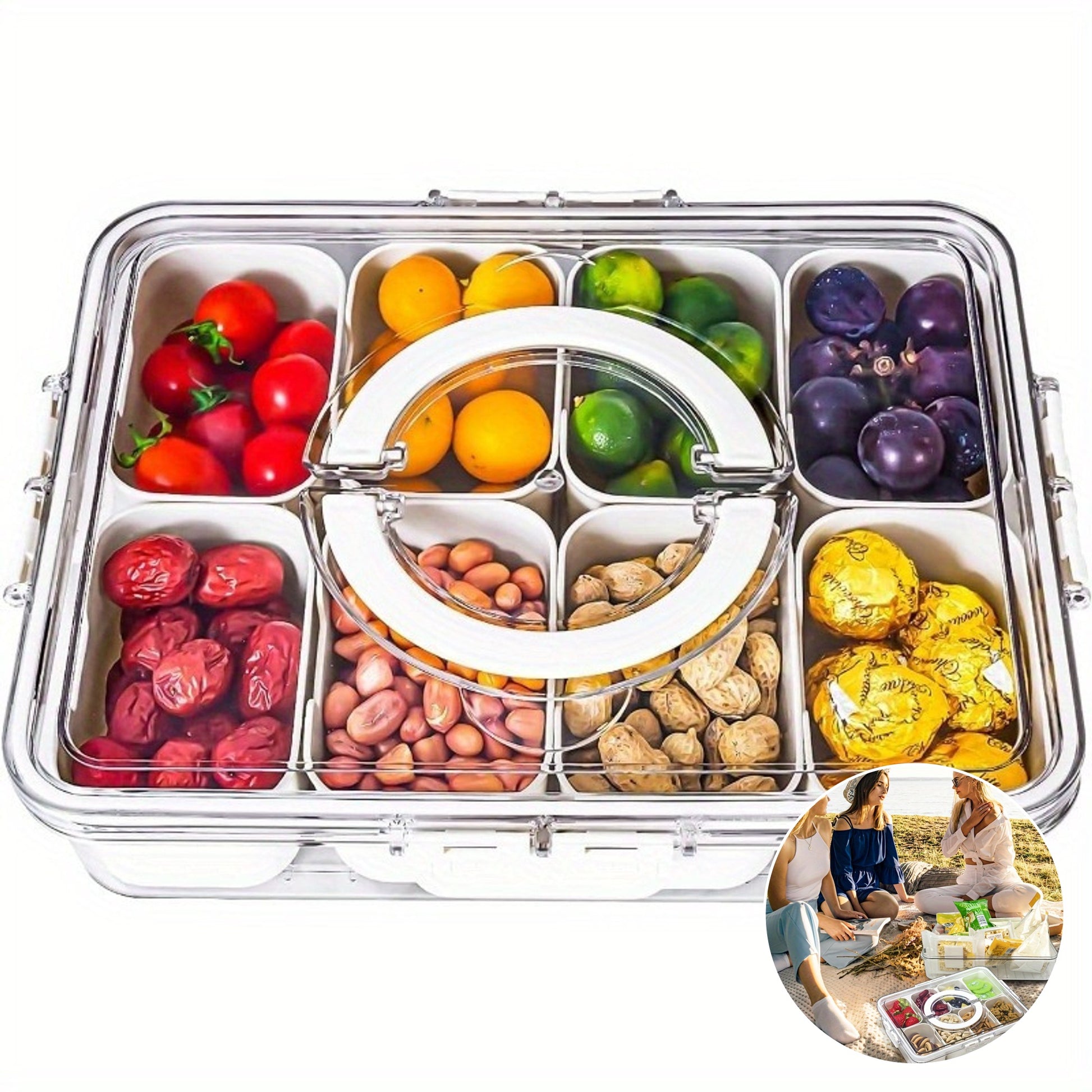1pc Clear 8 Compartments Divided Serving Tray With Lid And Handle, Snackle Box, Charcuterie Container, Portable Snack Platters For Party, Kitchen Supplies