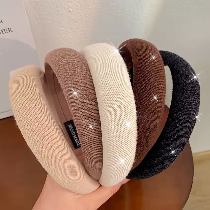 1pc Elegant Wide Headband for Women - Padded, Solid Color (Beige/Brown/Black/Light Brown), Soft Fabric Design, Perfect for Face Wash, Makeup, or Everyday Style, Makeup Headband | Stylish Face Covering | Soft Fabric Band, Cute Headbands