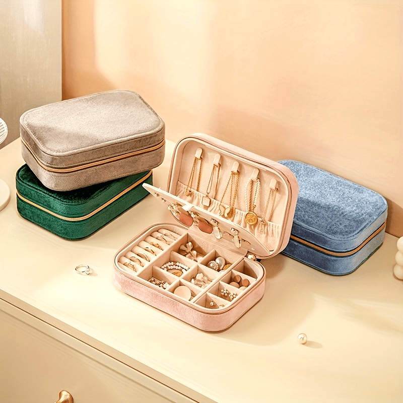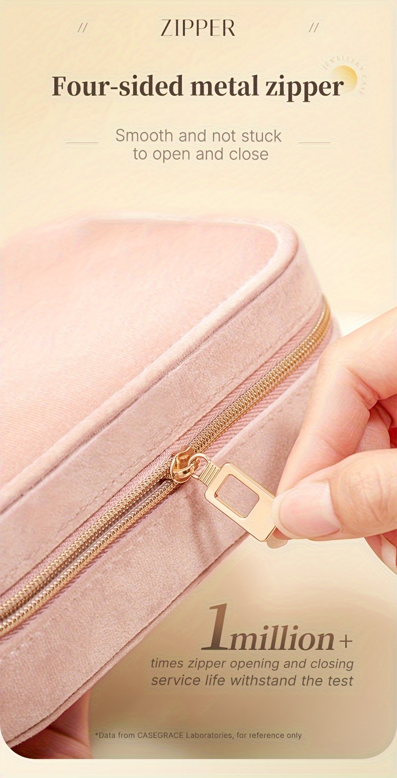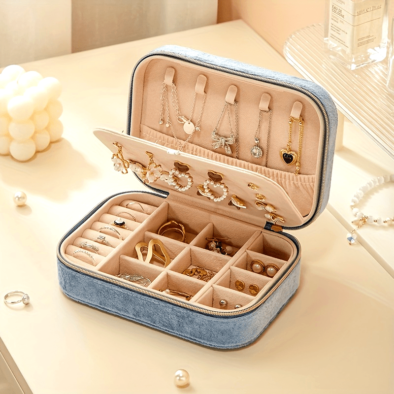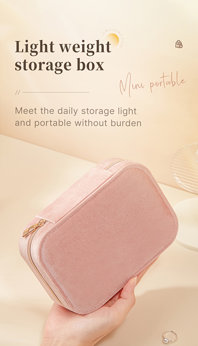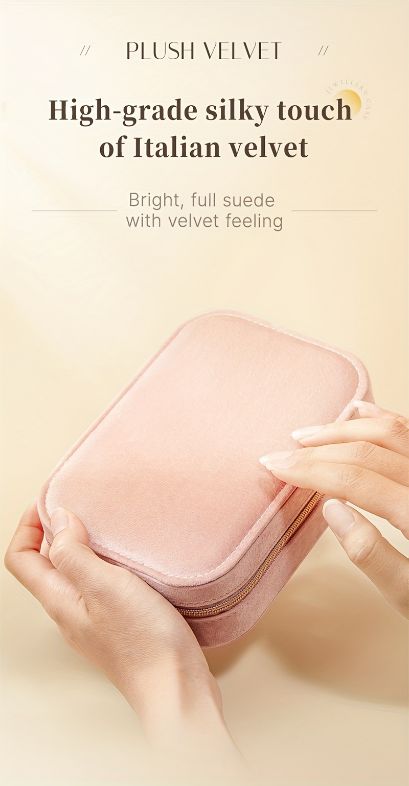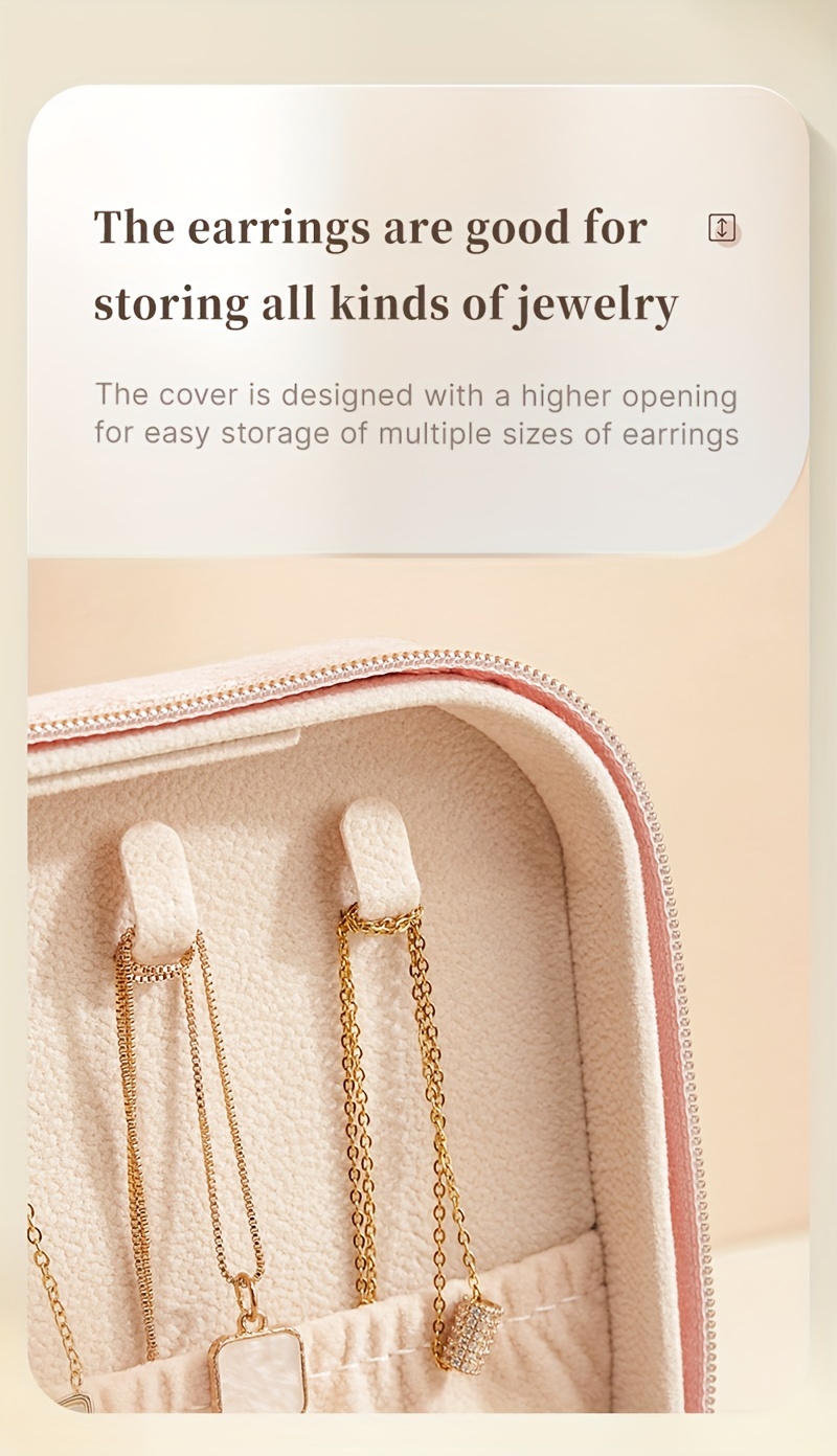 1pc Glam Style 3-Layer Velvet Jewelry Box with Zipper Closure - Multipurpose Rectangular Organizer with Necklace Hooks for Earrings, Necklaces, Rings, Watches, Hair Accessories - Ideal for Travel & Home Storage - Perfect for Christmas, New Year, Valentine