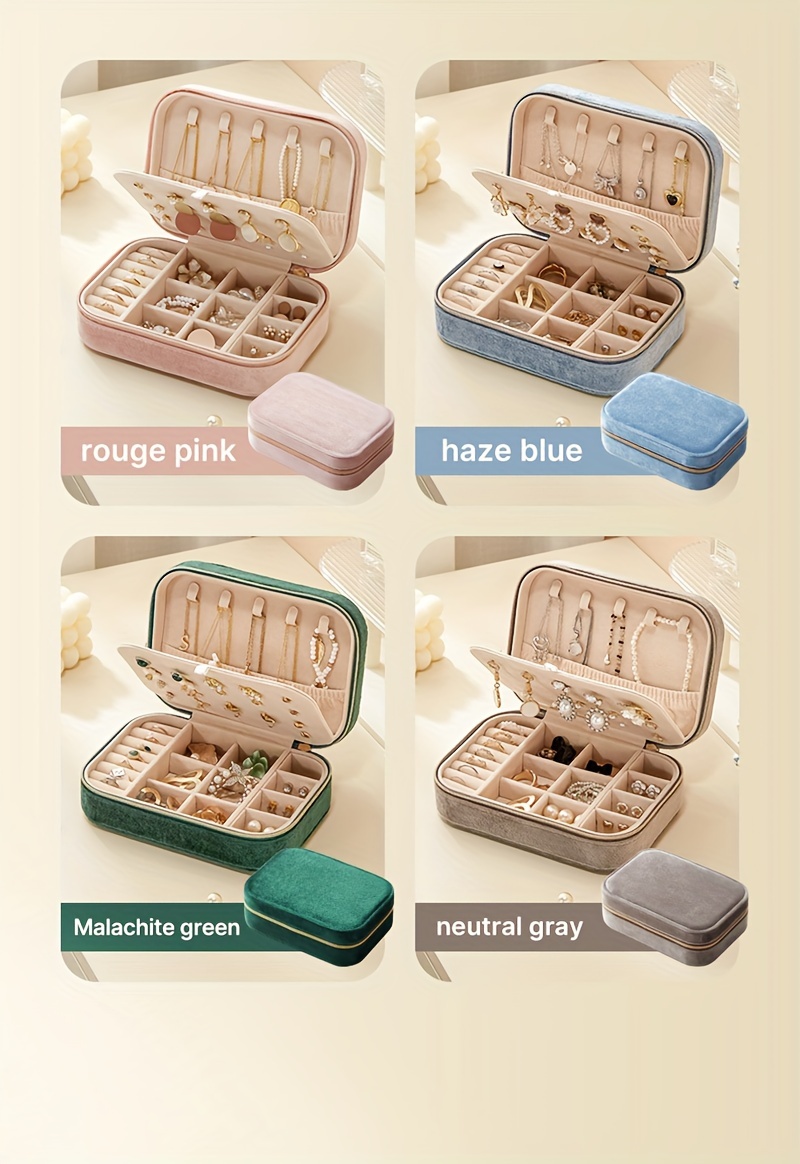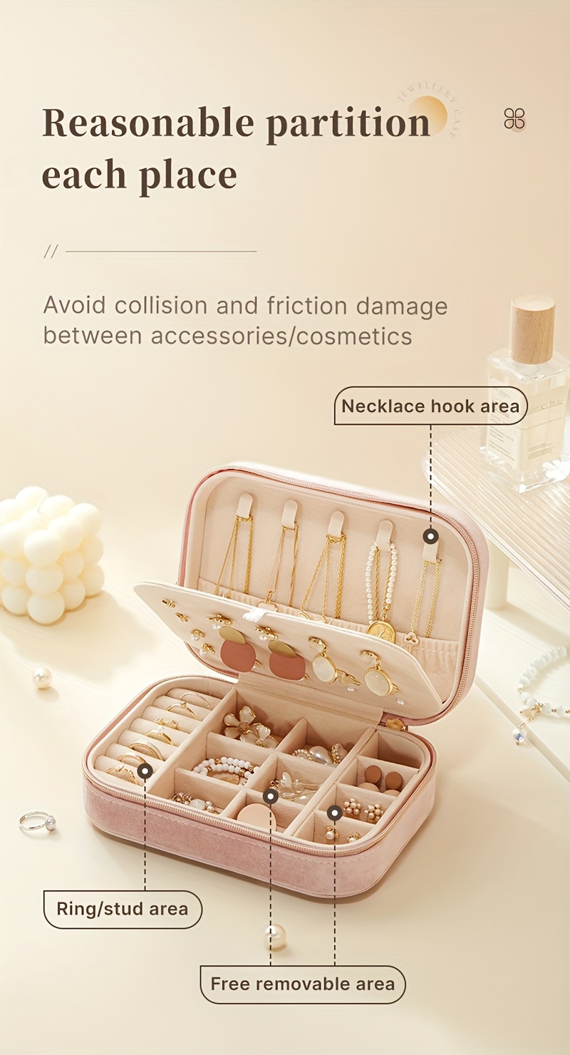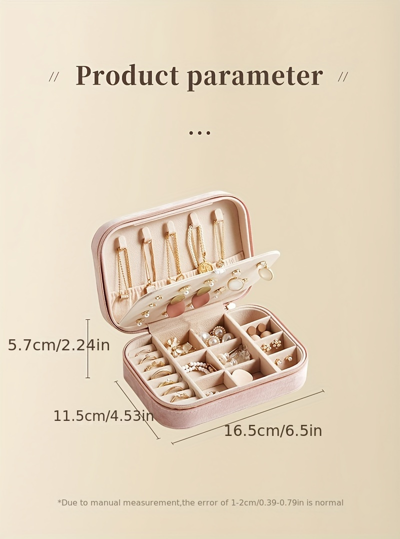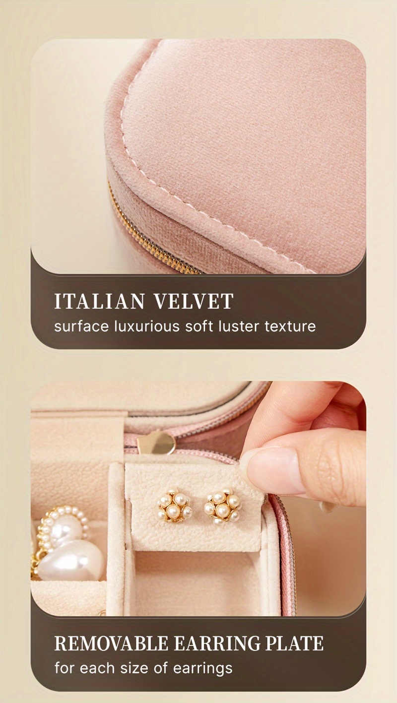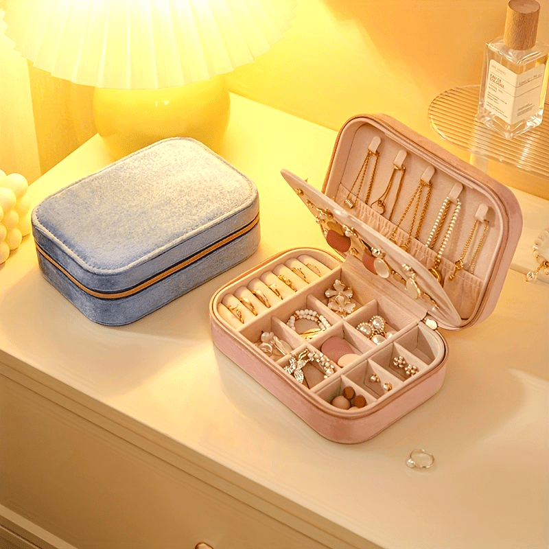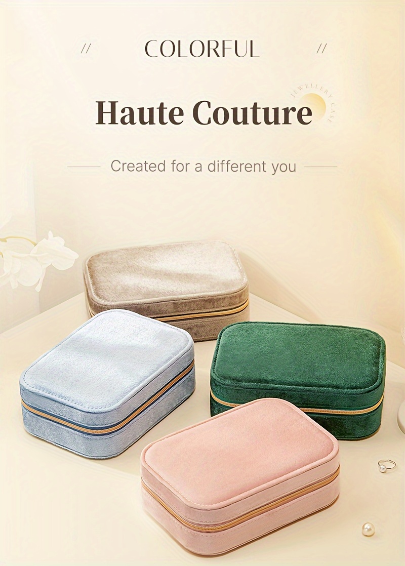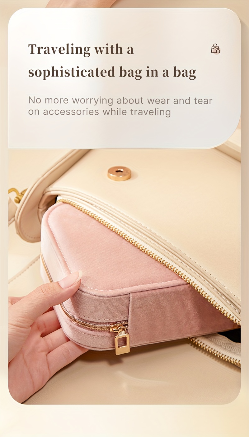 1pc Glam Style 3-Layer Velvet Jewelry Box with Zipper Closure - Multipurpose Rectangular Organizer with Necklace Hooks for Earrings, Necklaces, Rings, Watches, Hair Accessories - Ideal for Travel & Home Storage - Perfect for Christmas, New Year, Valentine