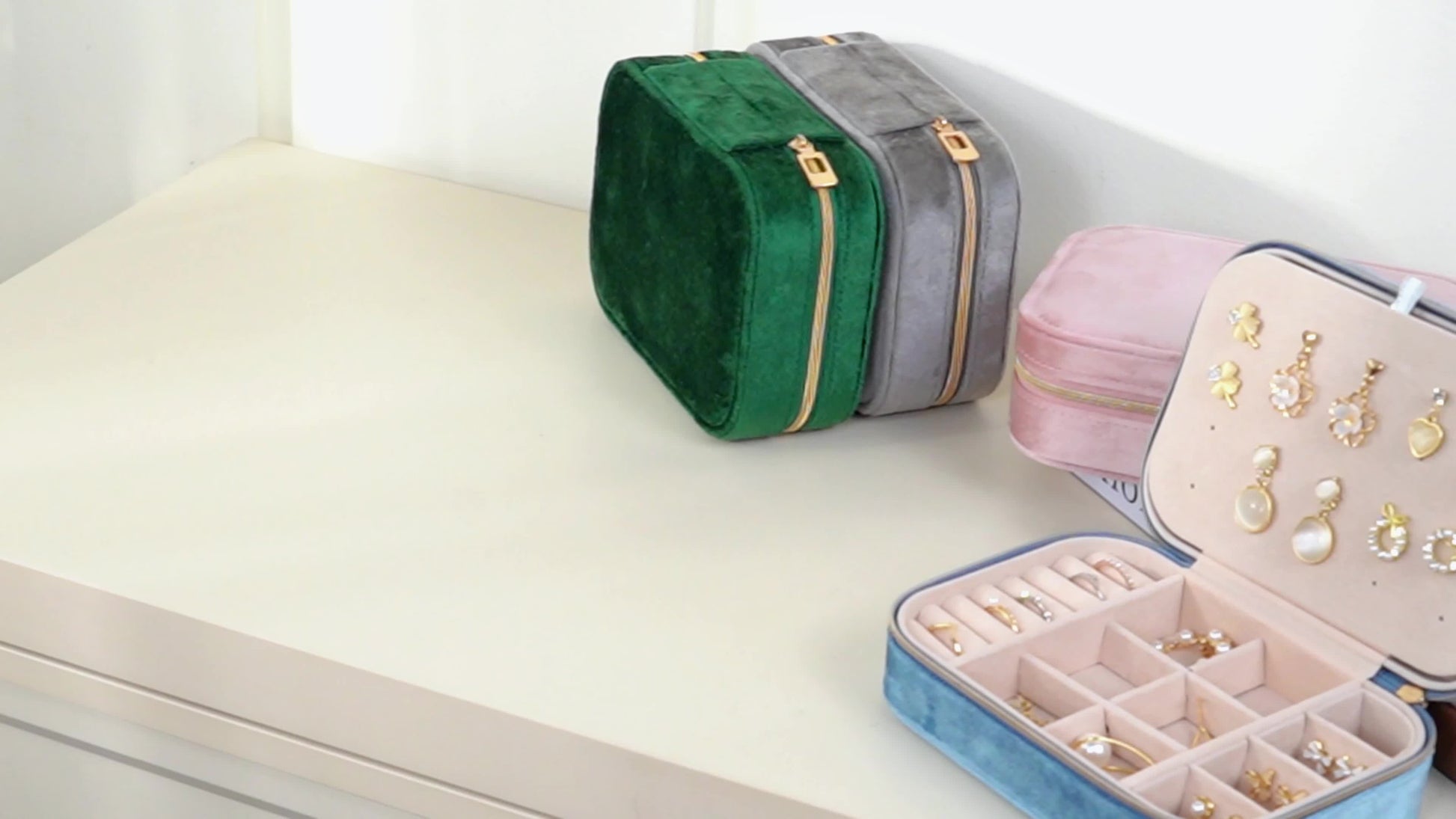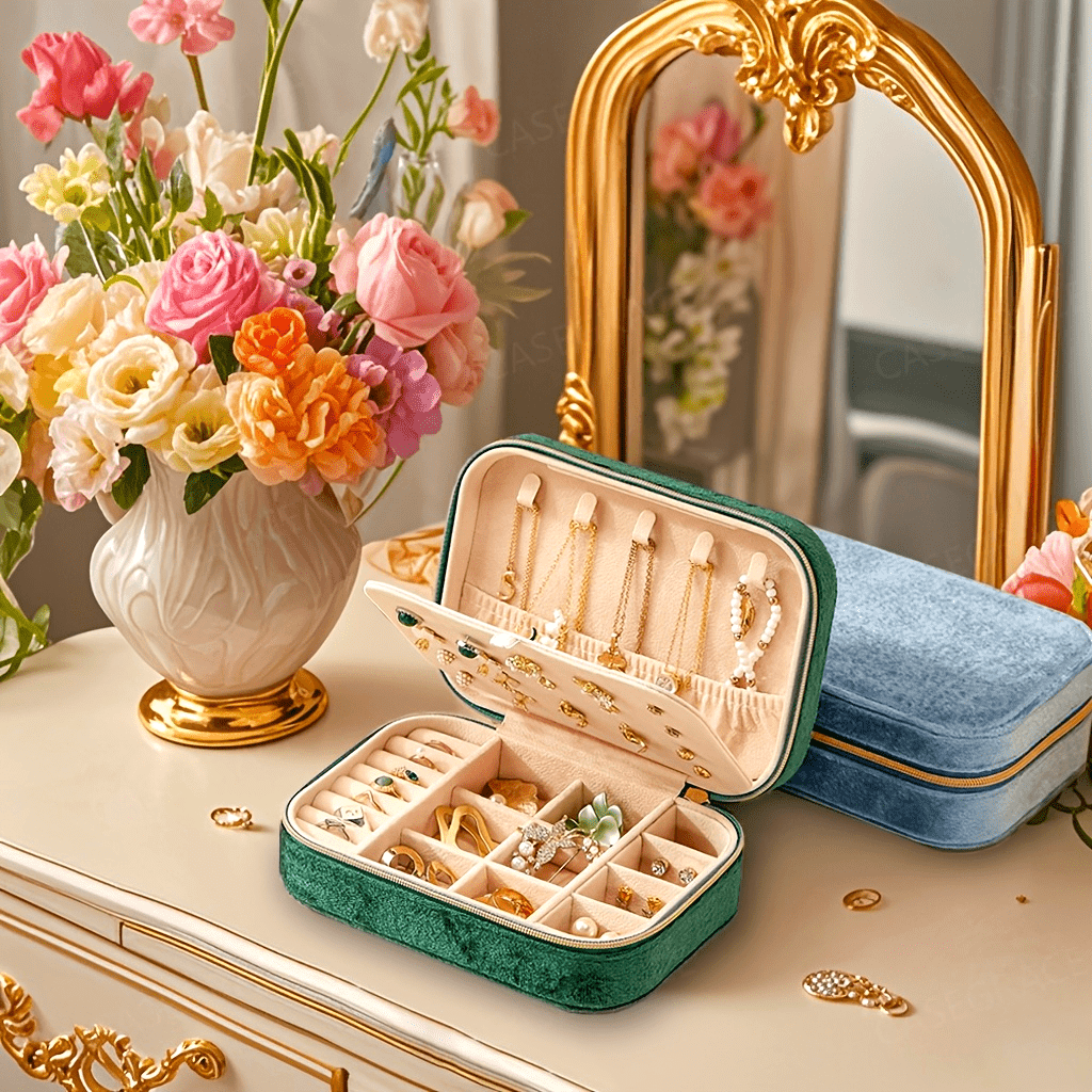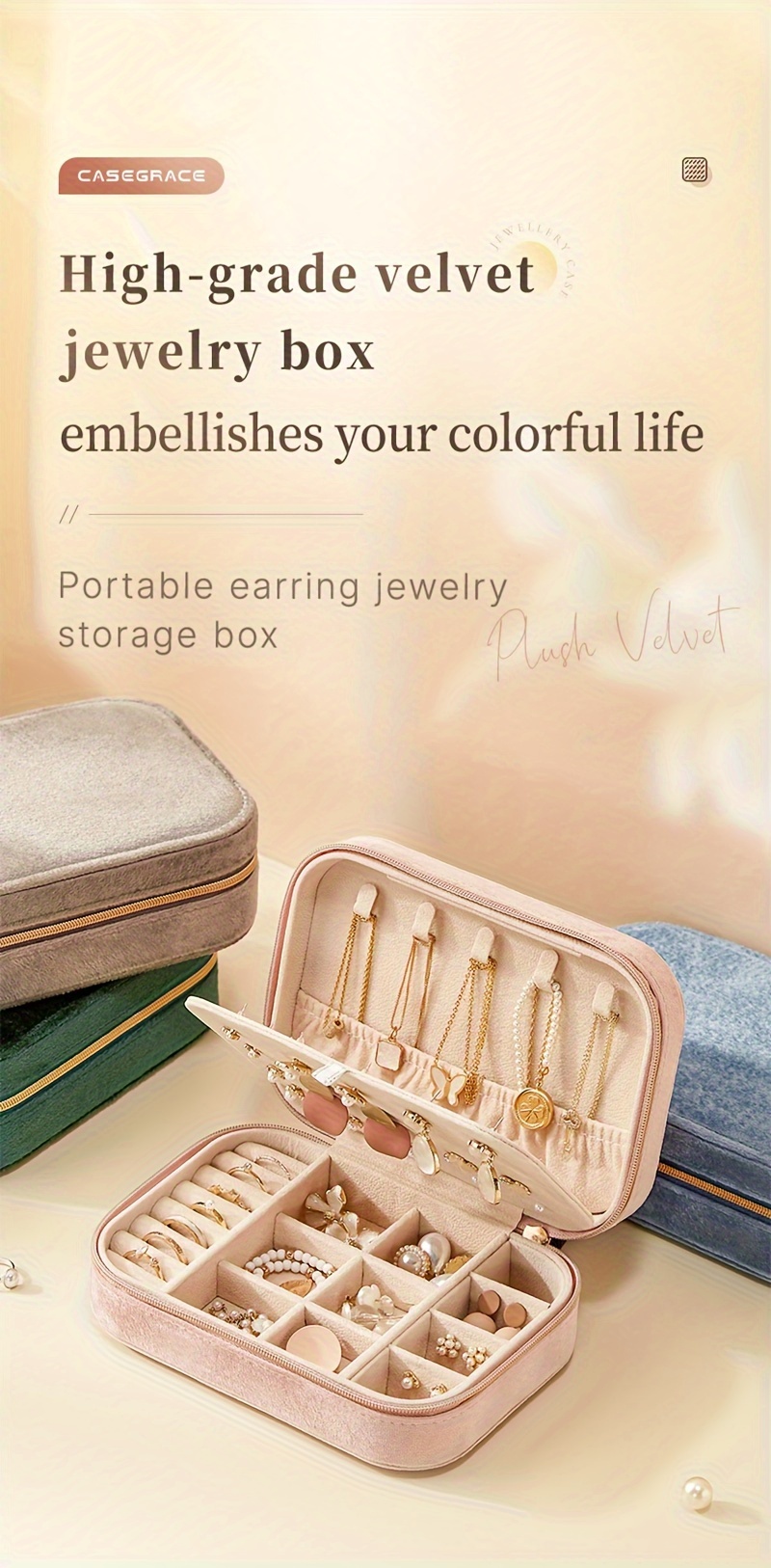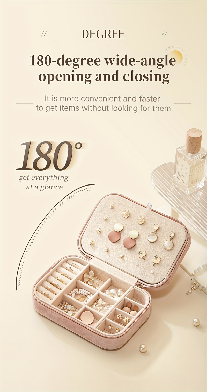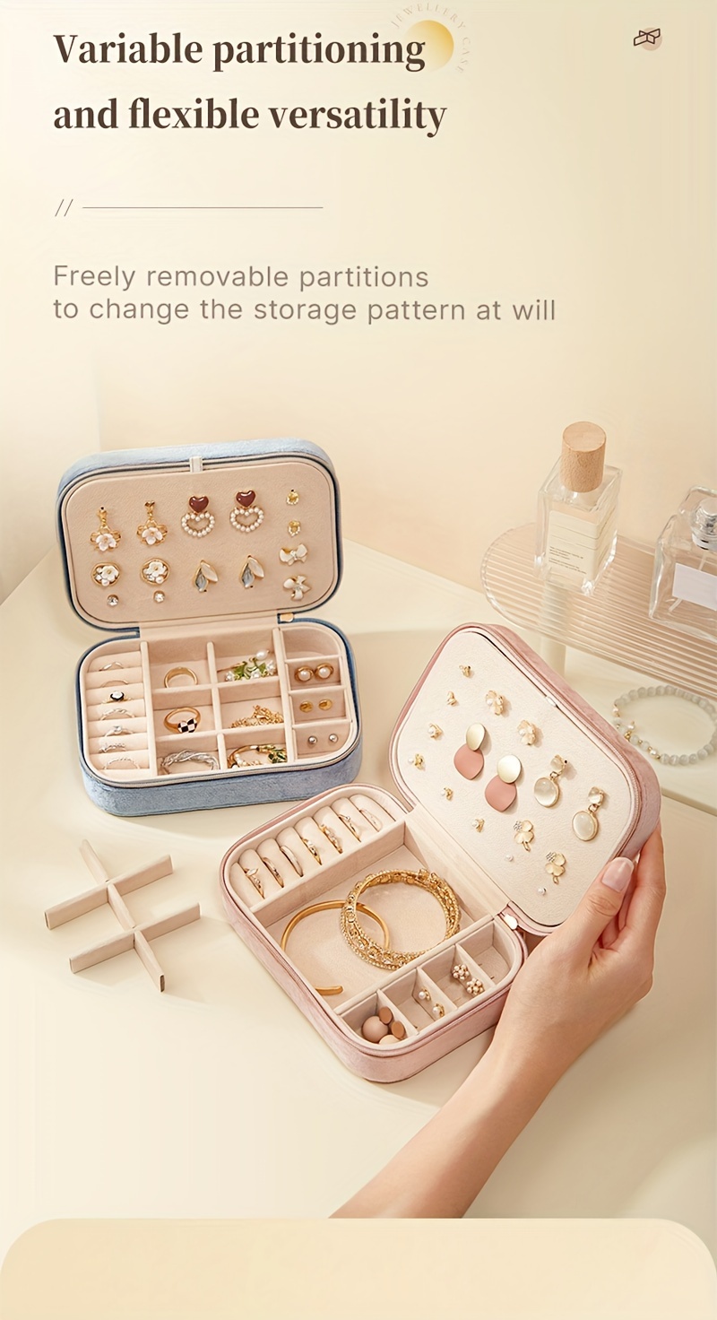 1pc Glam Style 3-Layer Velvet Jewelry Box with Zipper Closure - Multipurpose Rectangular Organizer with Necklace Hooks for Earrings, Necklaces, Rings, Watches, Hair Accessories - Ideal for Travel & Home Storage - Perfect for Christmas, New Year, Valentine