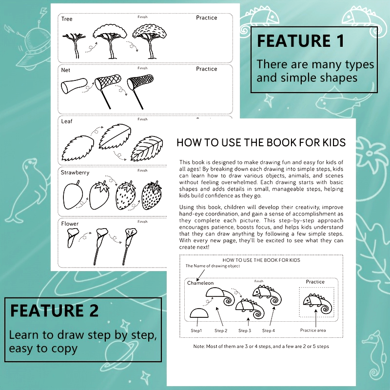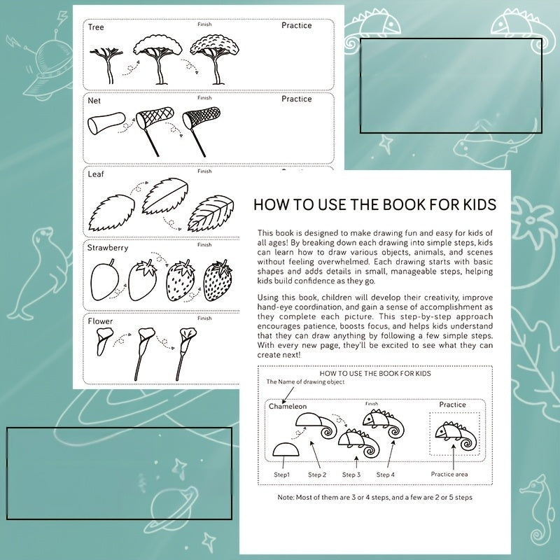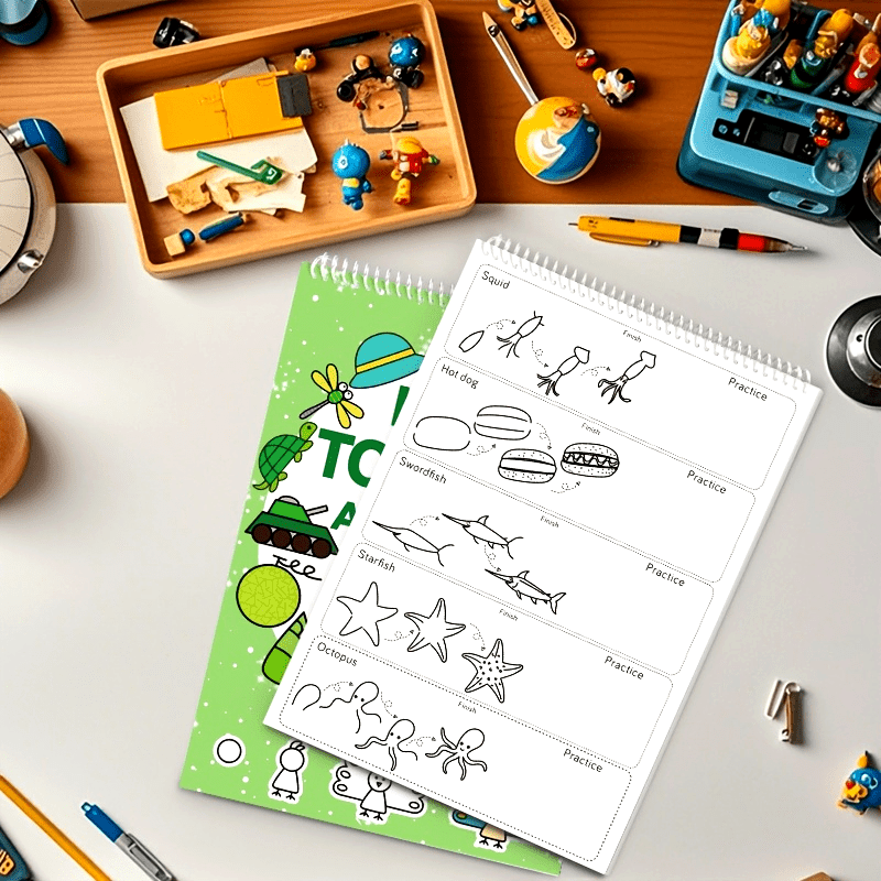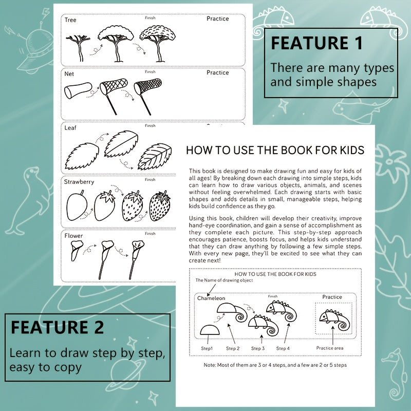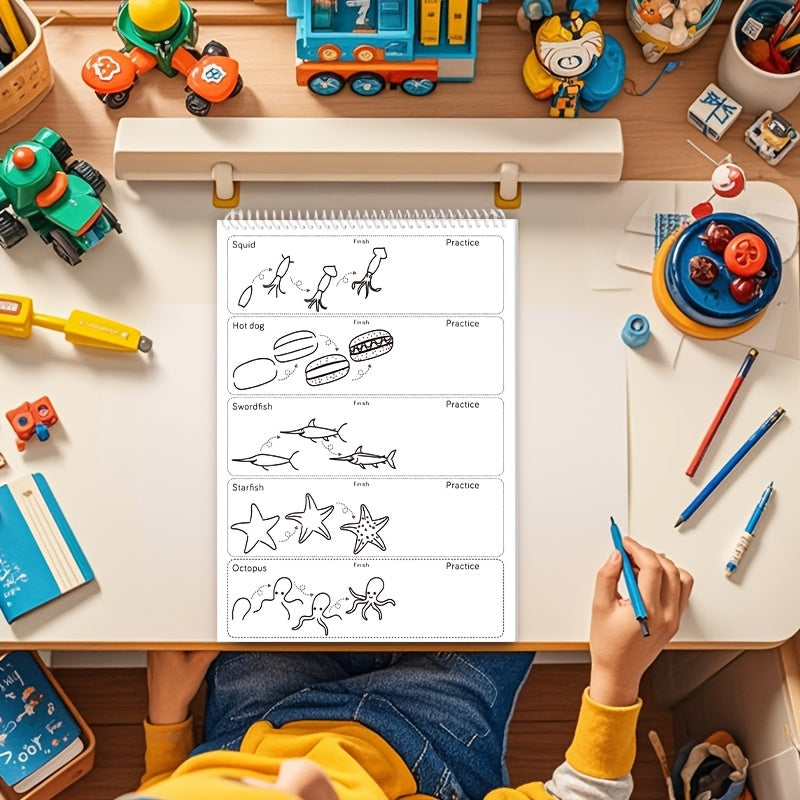 1pc Green Stick Figure Drawing Book for Youngsters - 300+ Step-by-Step Art & Education Toy, Learning Painting Supplies with Cartoon Dinosaur & Frog Designs, Perfect for Creative Writing & Coloring, Youngsters Drawing Book | Playful Design | Spiralbound Bo