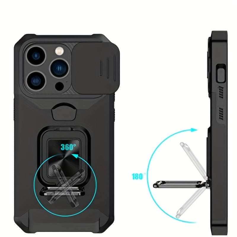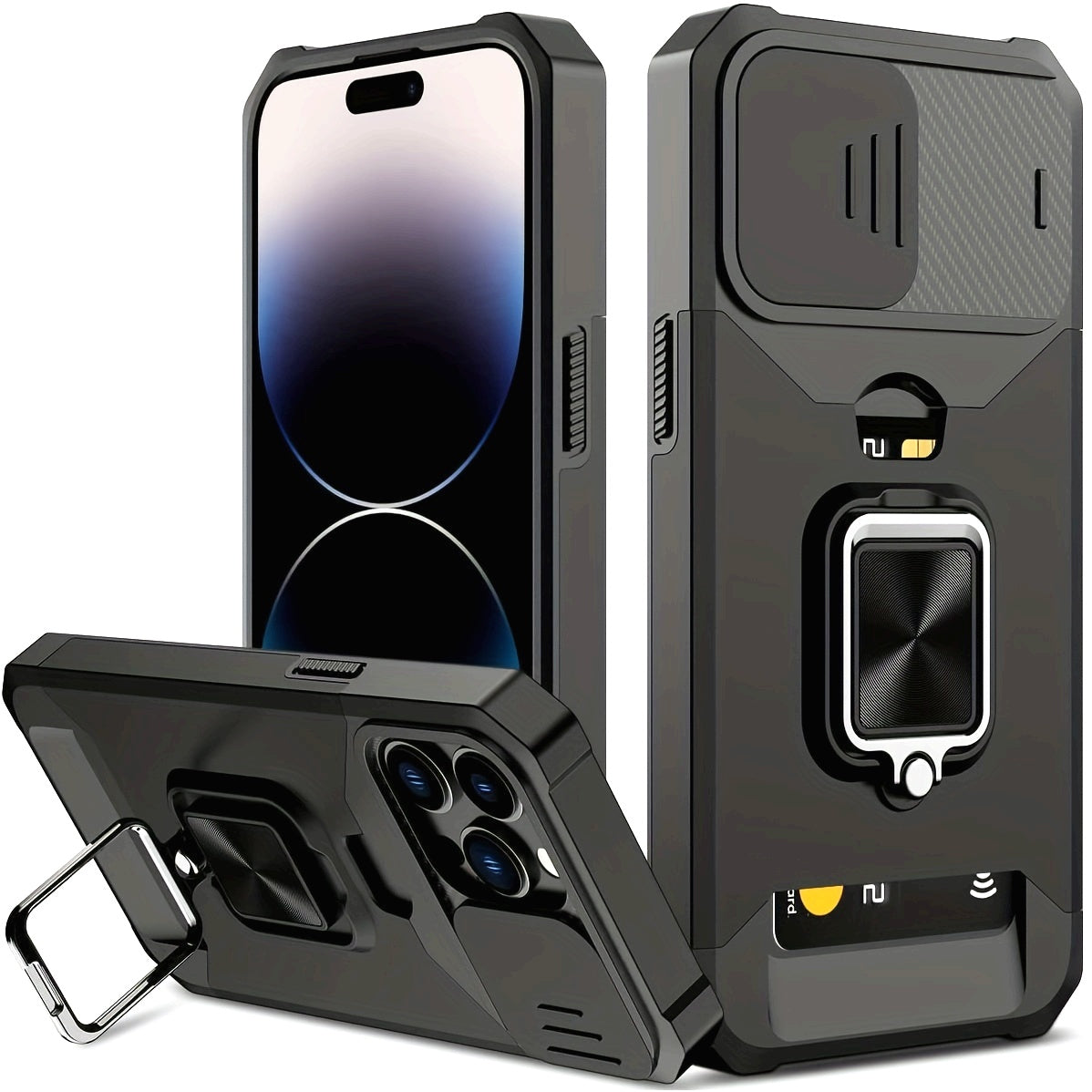 [1pc Heavy-Duty Phone Case] Heavy-Duty Shockproof Phone Case with a Metal Stand And Card Slot, Compatible with Iphone 16 Pro Max, 15 Pro Max, 14 Pro Max, And 13 Pro Max.