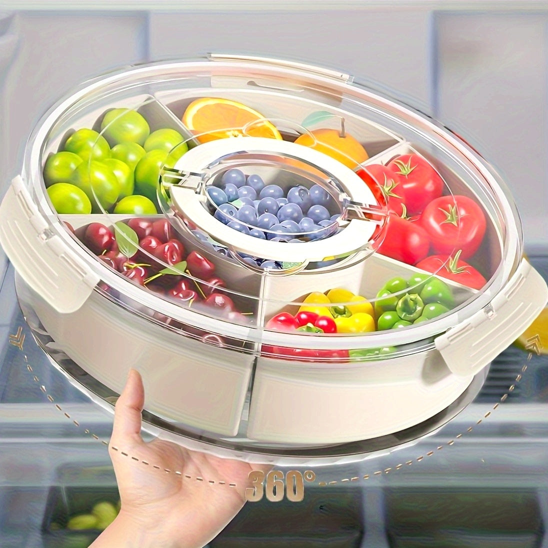 1pc HOOFUN Rotating Fruit and Vegetable Tray with Lid and Handle - Durable Plastic, Multi-Compartment Organizer for Kitchen Storage, Ideal for Snacks and Produce Display, Kitchen Organizers And Storage