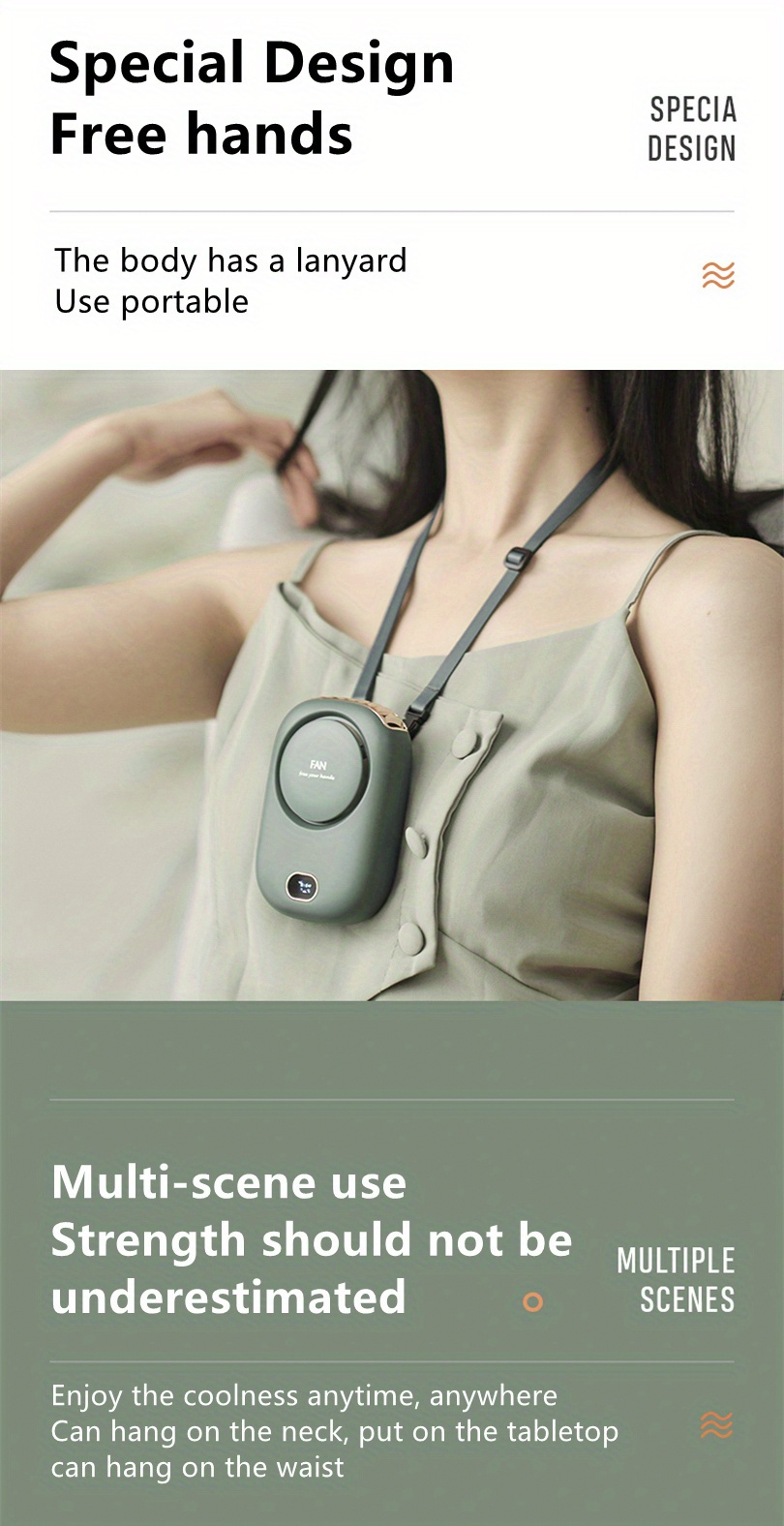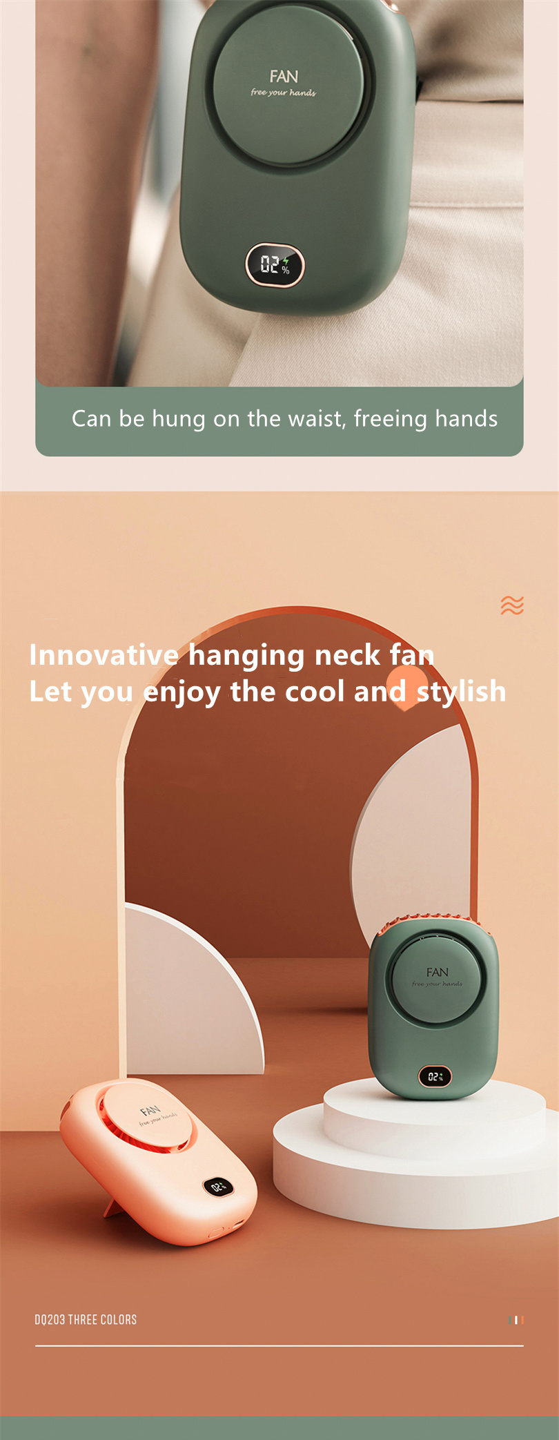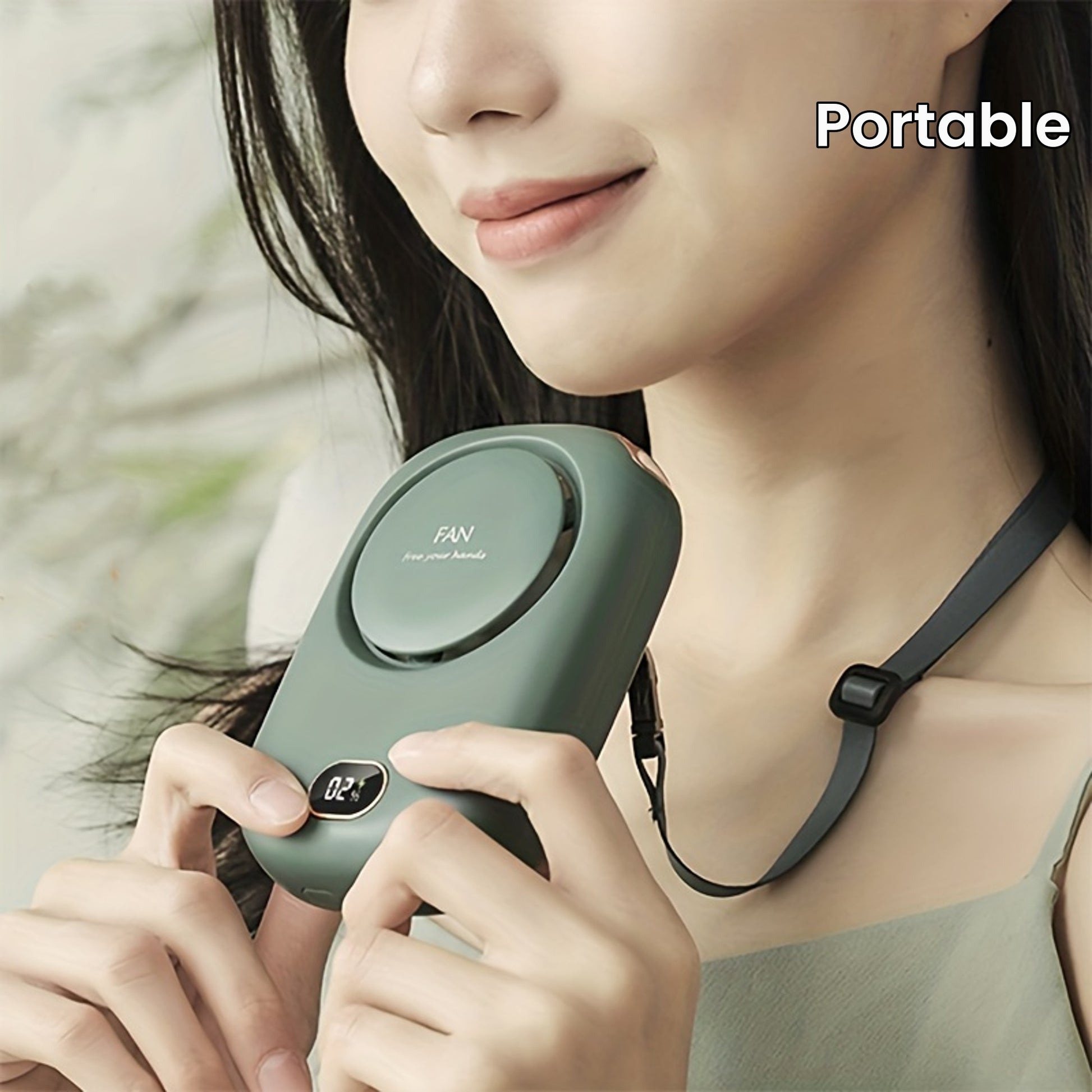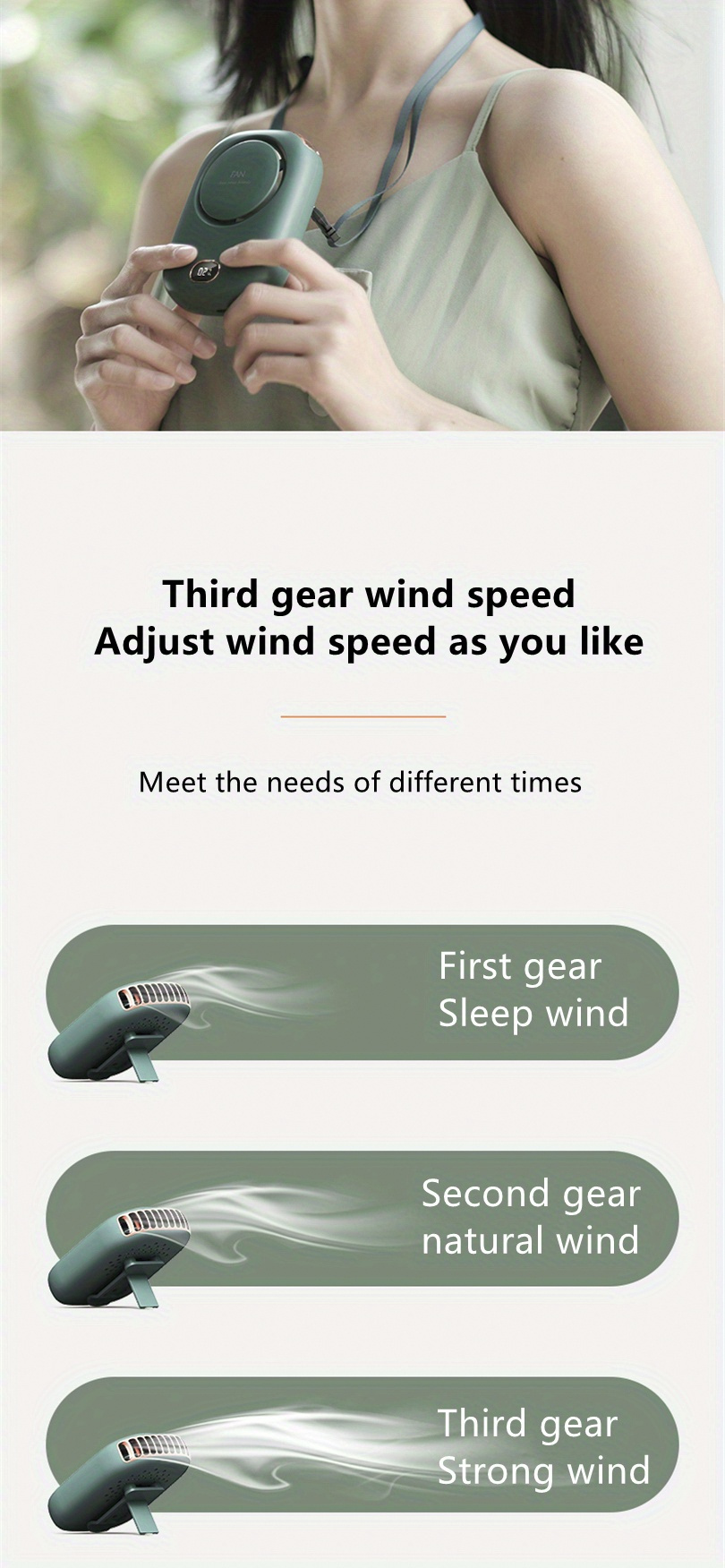 1pc Portable Three-Speed USB Fan with Waist-Hanging and Desktop Stand, Power Display, and Leafless Design