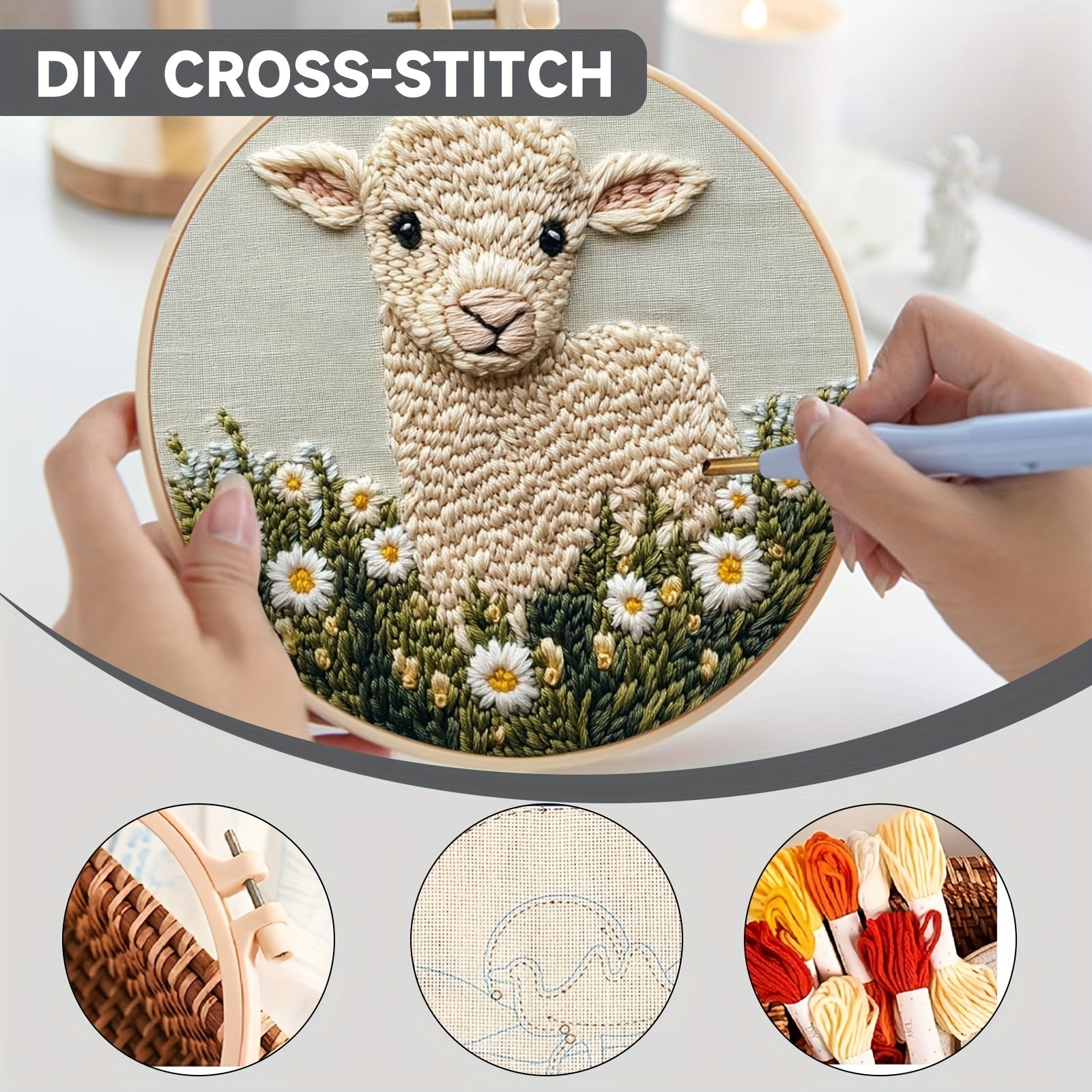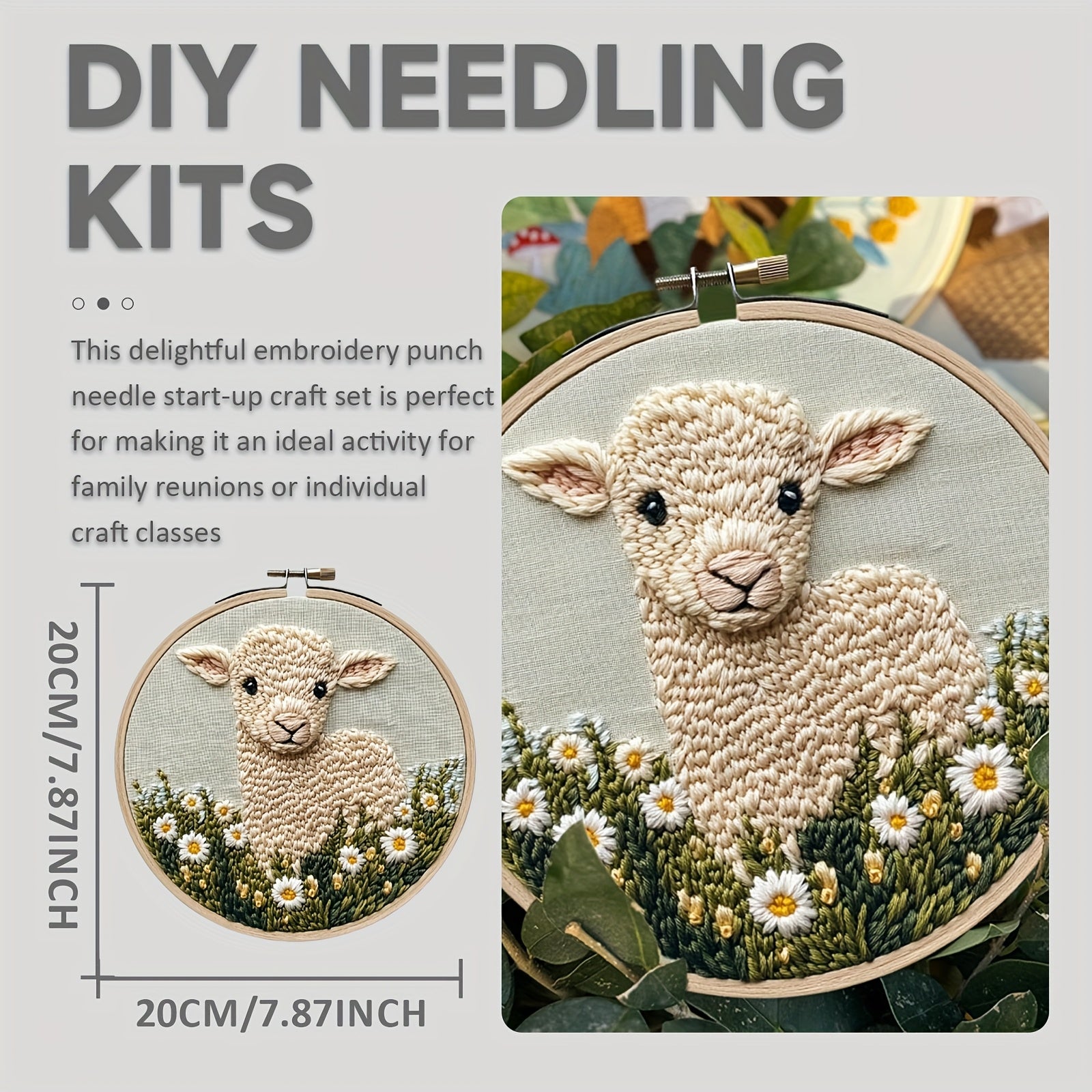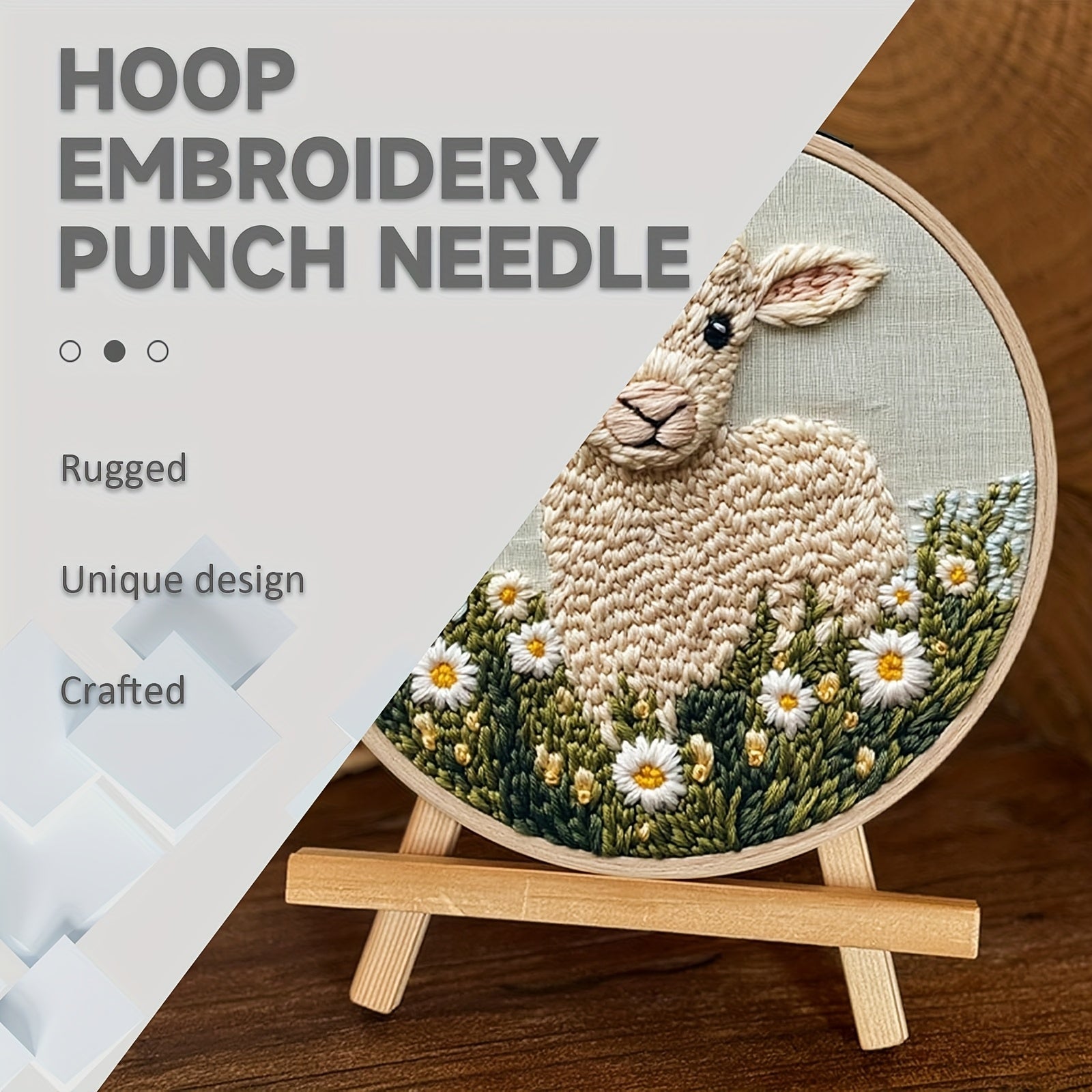 1pc Punch Needle Kit - Adult's Punch Stitching Set, Adorable Cartoon Animal with Daisy Flowers, DIY Needle Punch Kits for Art Crafts, Suitable for Handmade and Decoration, An Ideal Holiday Gift