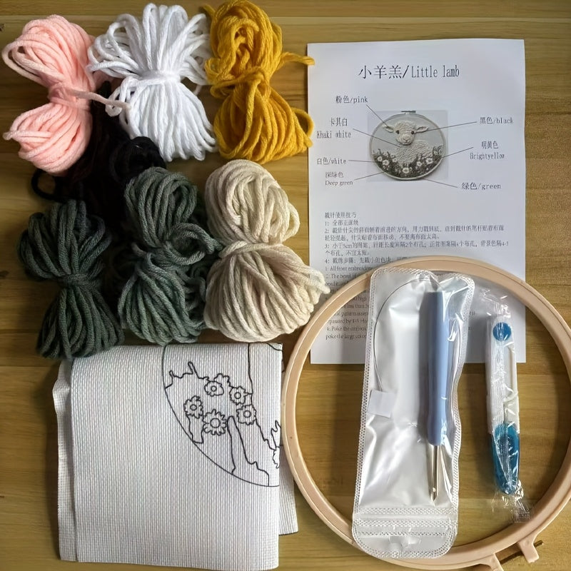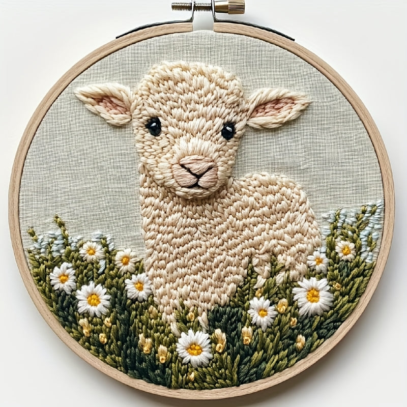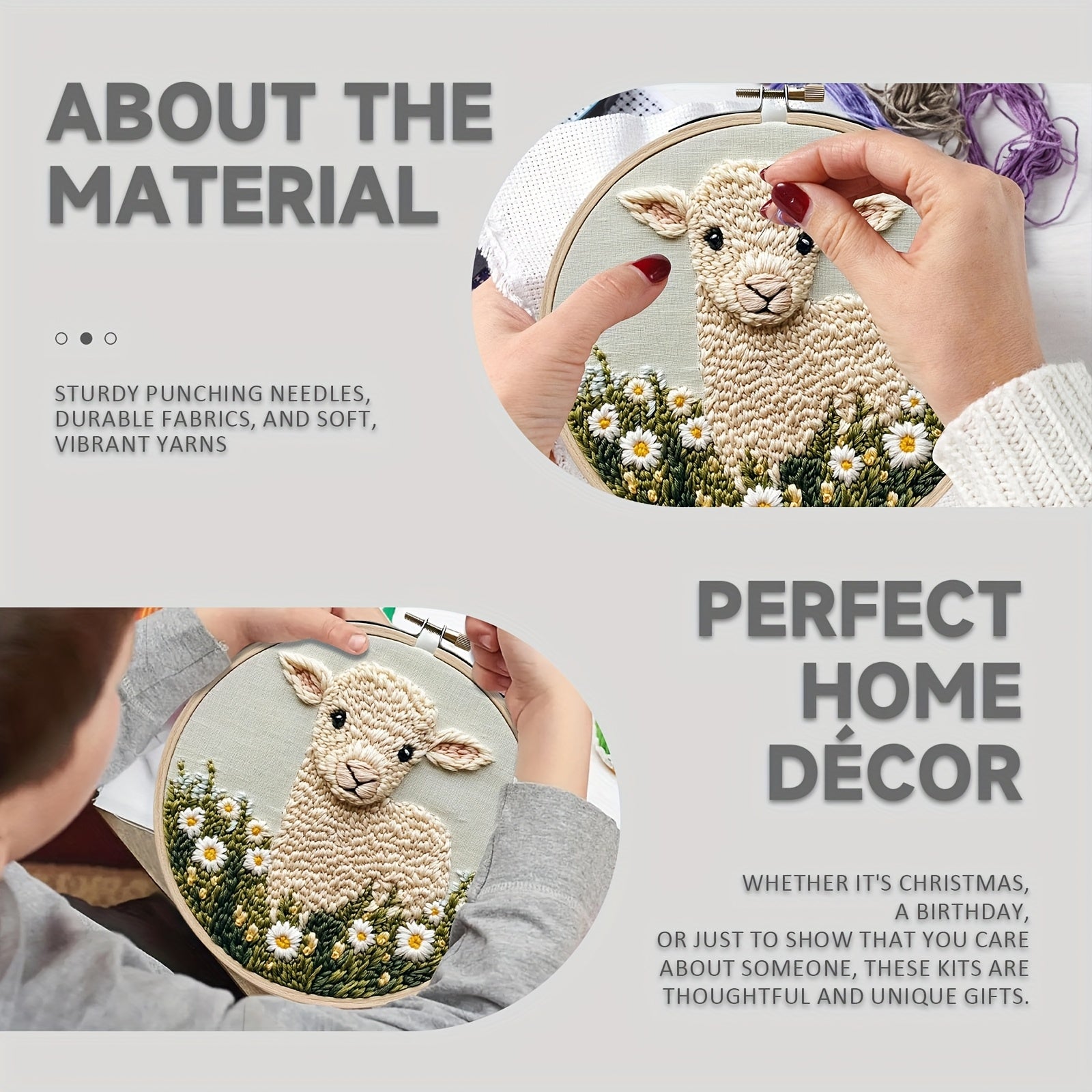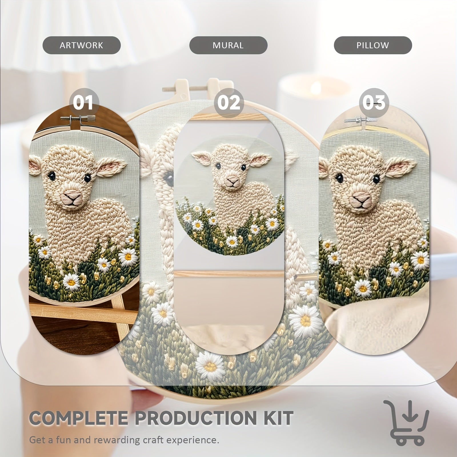 1pc Punch Needle Kit - Adult's Punch Stitching Set, Adorable Cartoon Animal with Daisy Flowers, DIY Needle Punch Kits for Art Crafts, Suitable for Handmade and Decoration, An Ideal Holiday Gift