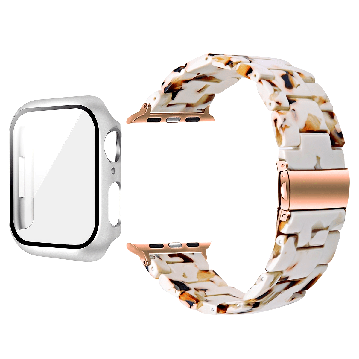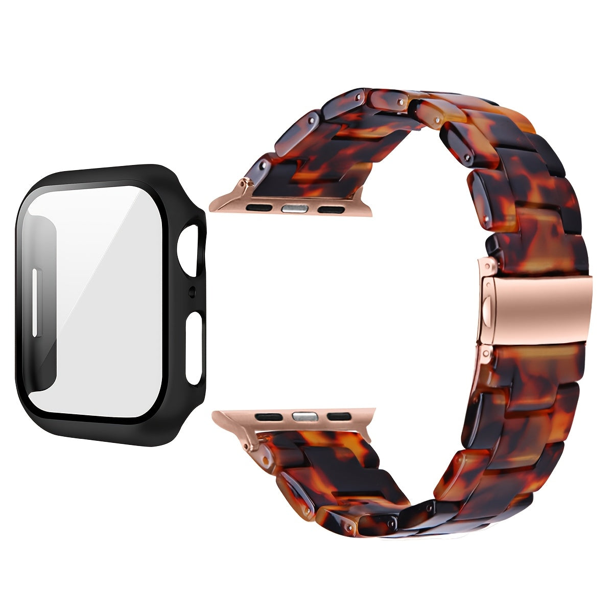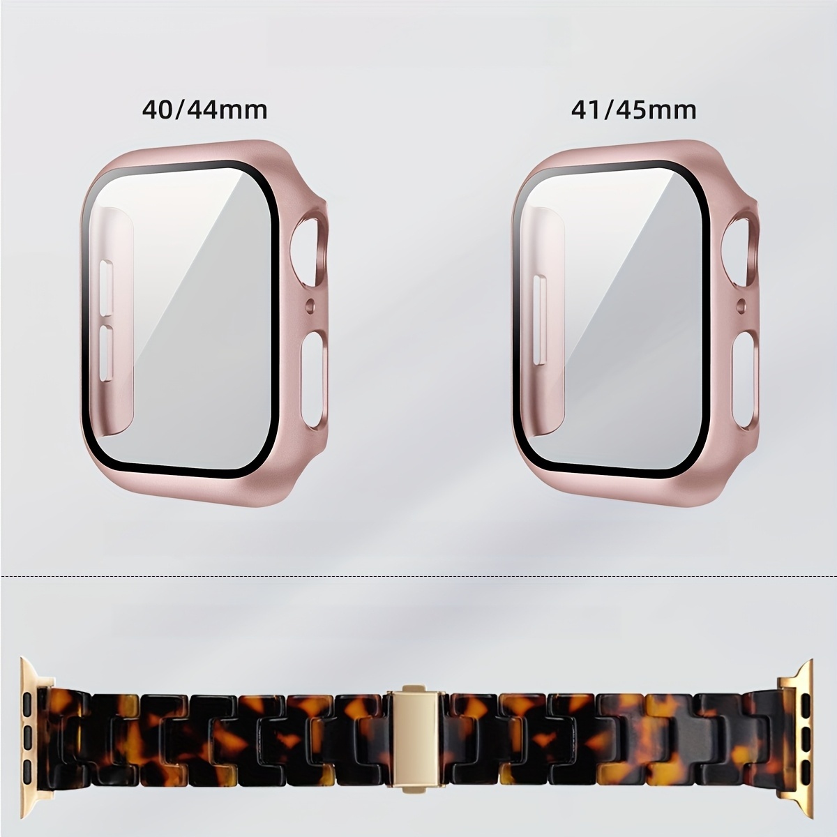 2-in-1 watch strap + screen protector case, stylish and lightweight resin watch strap compatible with stainless steel buckle, PC and resin material, suitable for iWatch 9 8 7 6 5 4 series, size: 40/41/44/45mm