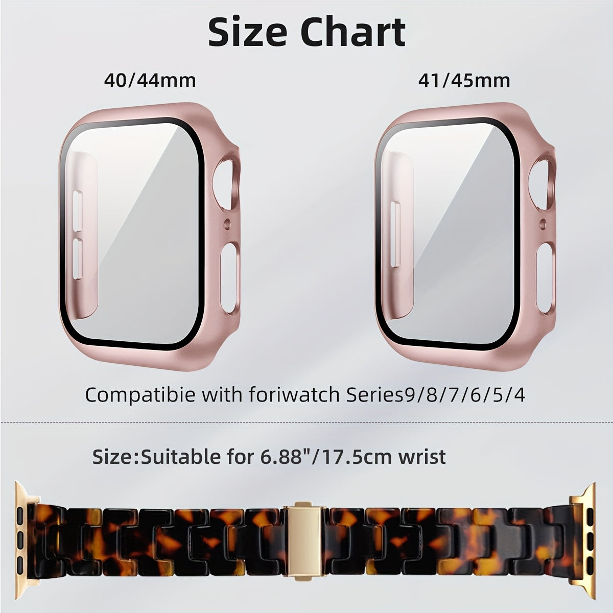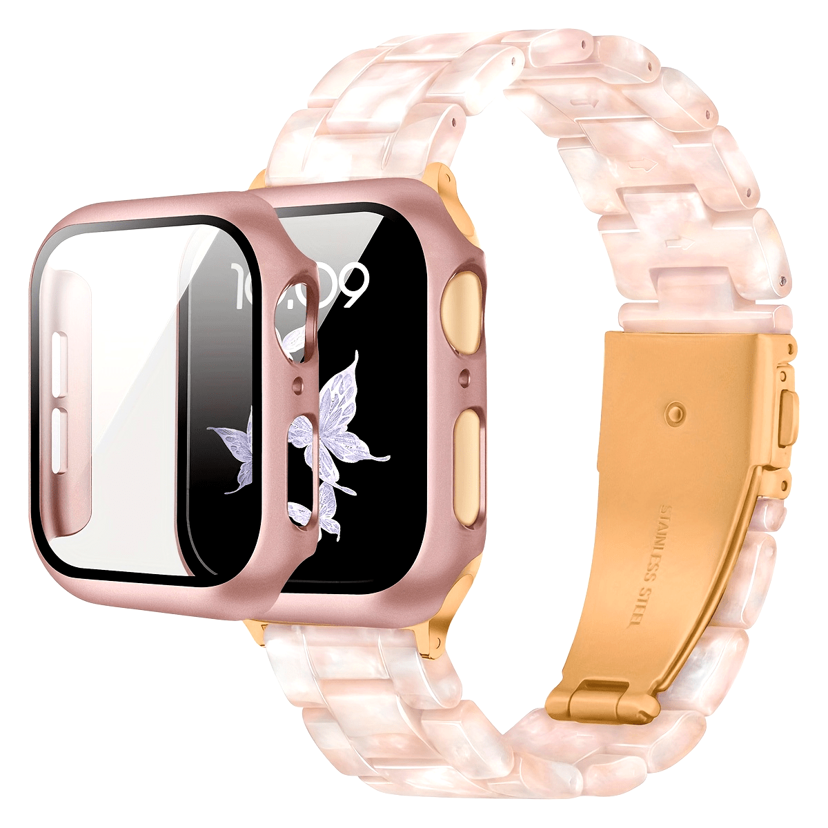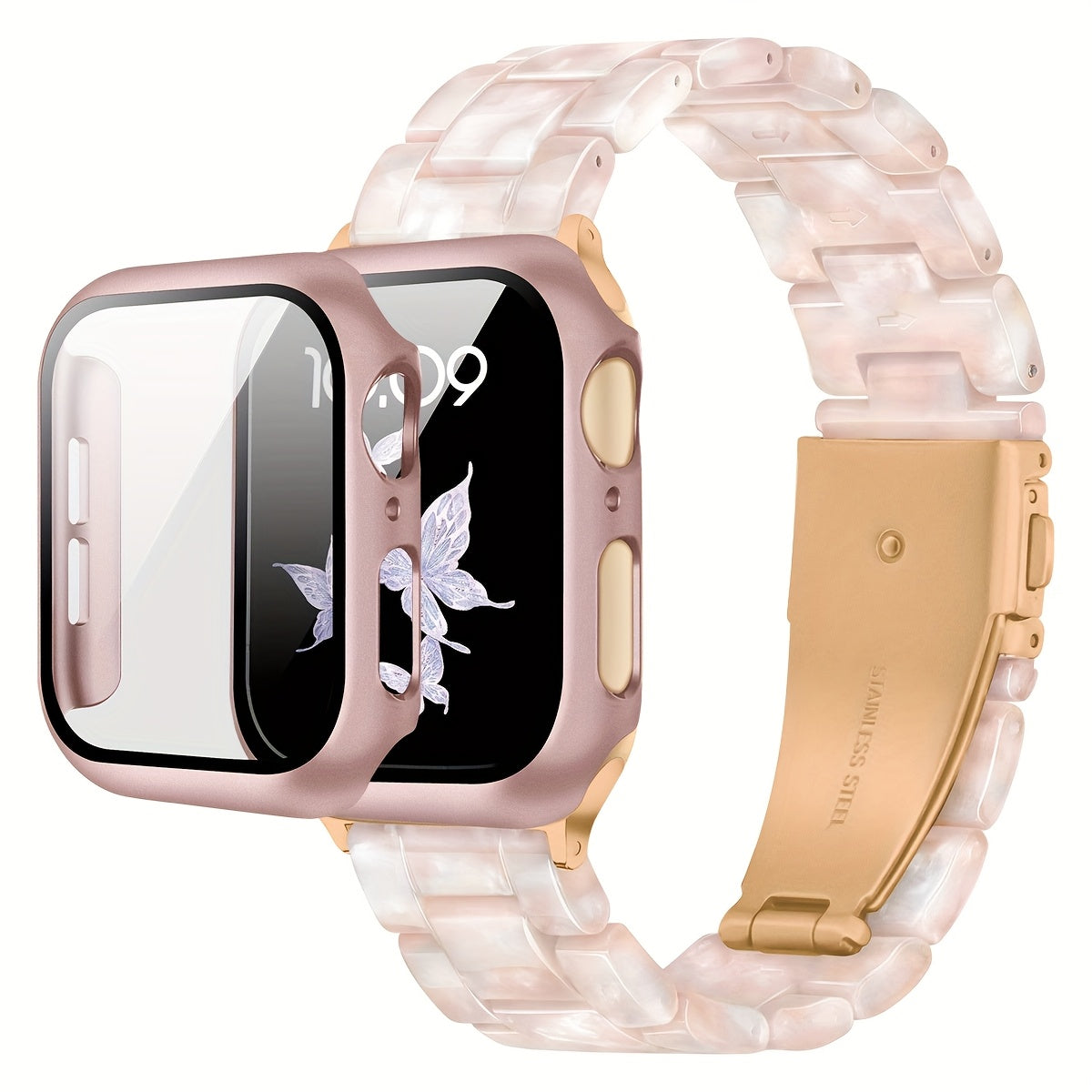 2-in-1 watch strap + screen protector case, stylish and lightweight resin watch strap compatible with stainless steel buckle, PC and resin material, suitable for iWatch 9 8 7 6 5 4 series, size: 40/41/44/45mm