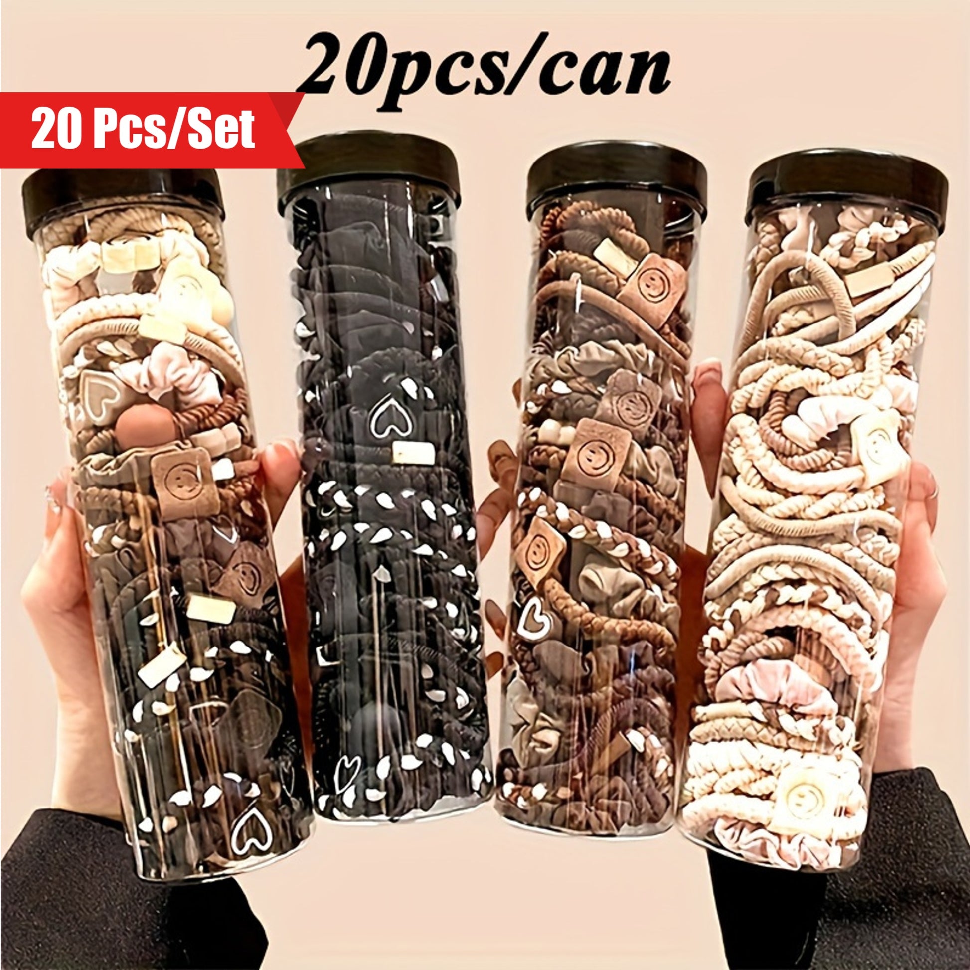 20 Pcs/Set Fabric Minimalist Chic Hair Ties & Elastics - Solid Color, Flexible, Cute, Versatile Ponytail Holders for Ages 14+