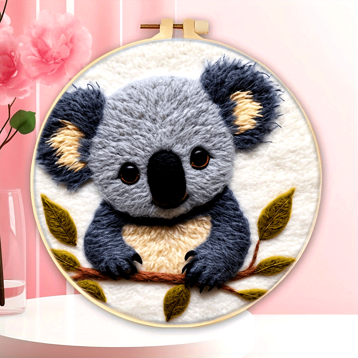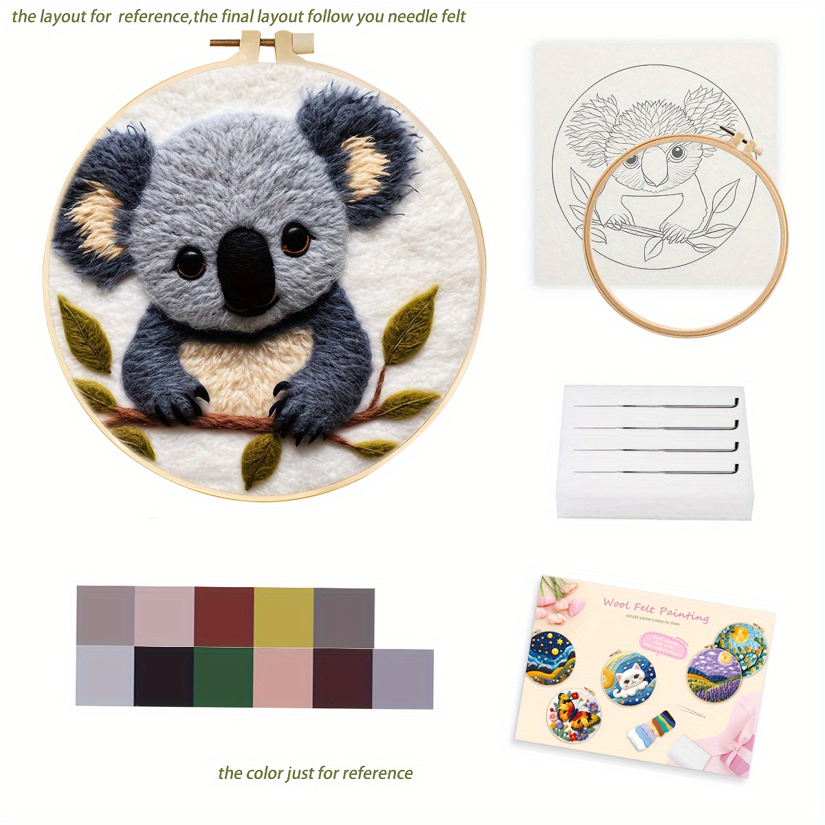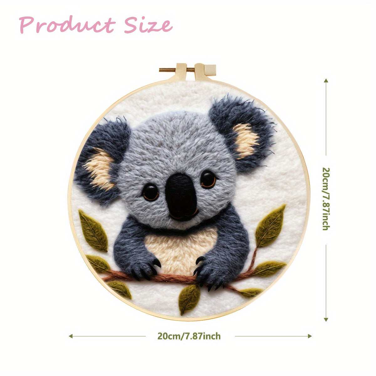 20Cm/7.87In Felt Koala Needle Felting Kit: DIY Fleece Felt Art with Hoop, Needles, Cloth, and Instruction Manual for Beginners and Home Decor