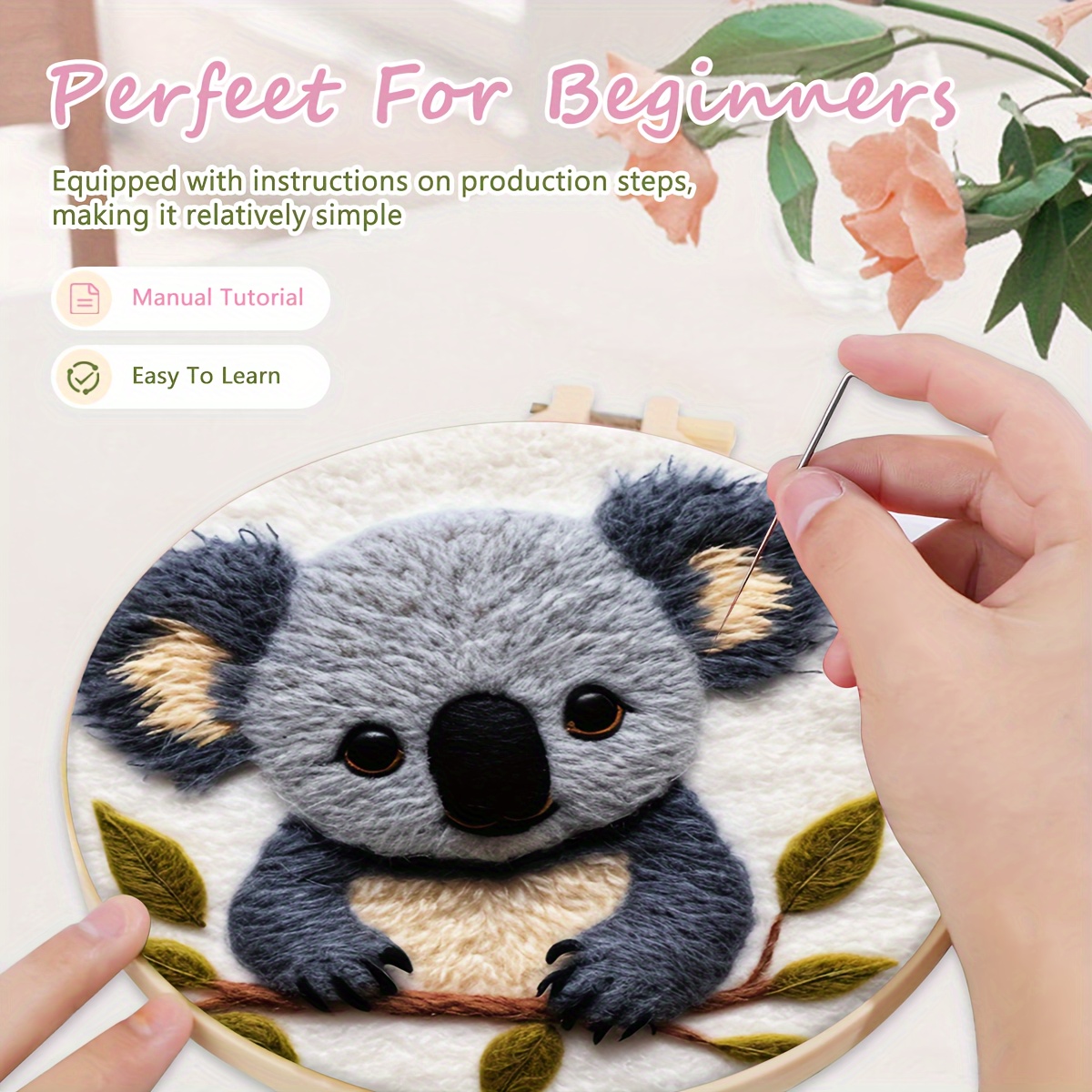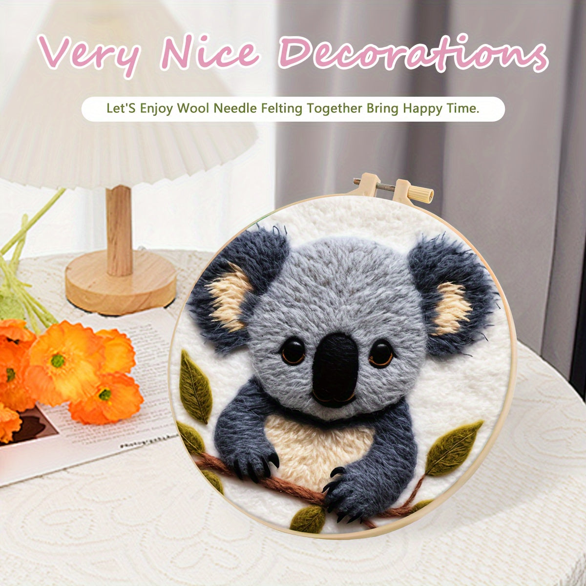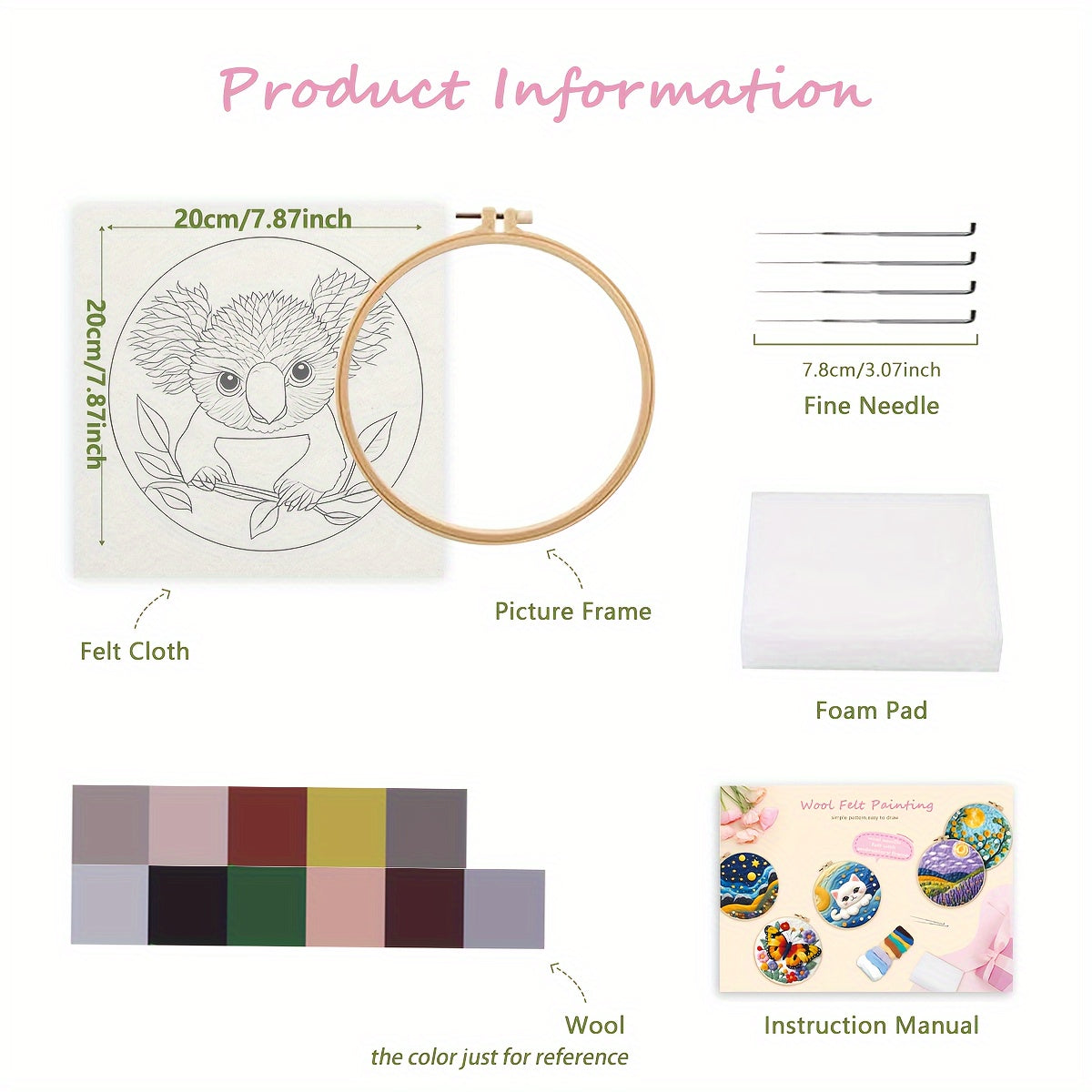 20Cm/7.87In Felt Koala Needle Felting Kit: DIY Fleece Felt Art with Hoop, Needles, Cloth, and Instruction Manual for Beginners and Home Decor