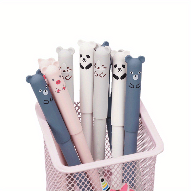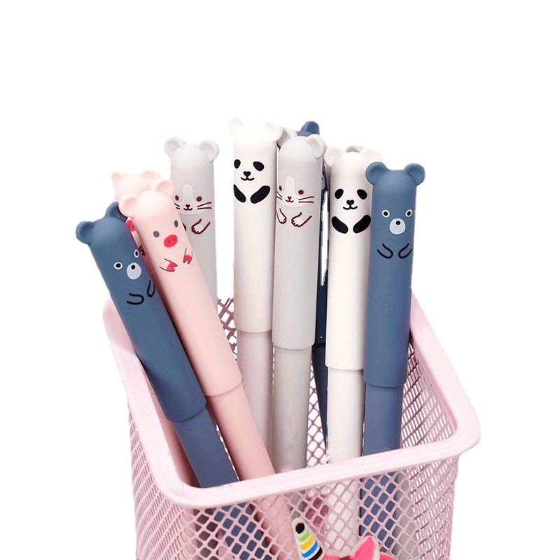 21pcs/set Erasable Bear Animal Gel Pens Easy to Erase 0.35mm Black and Blue Gel Pen Refills Animal Writing Stationery Office Supplies