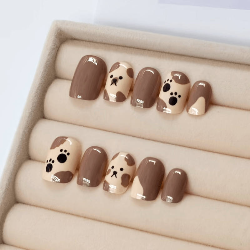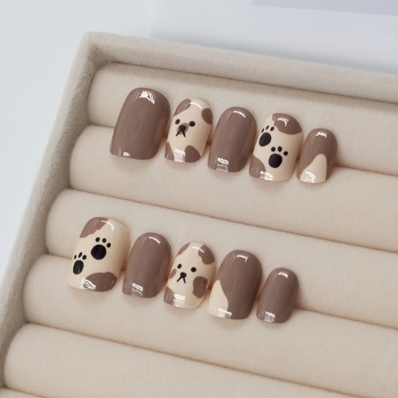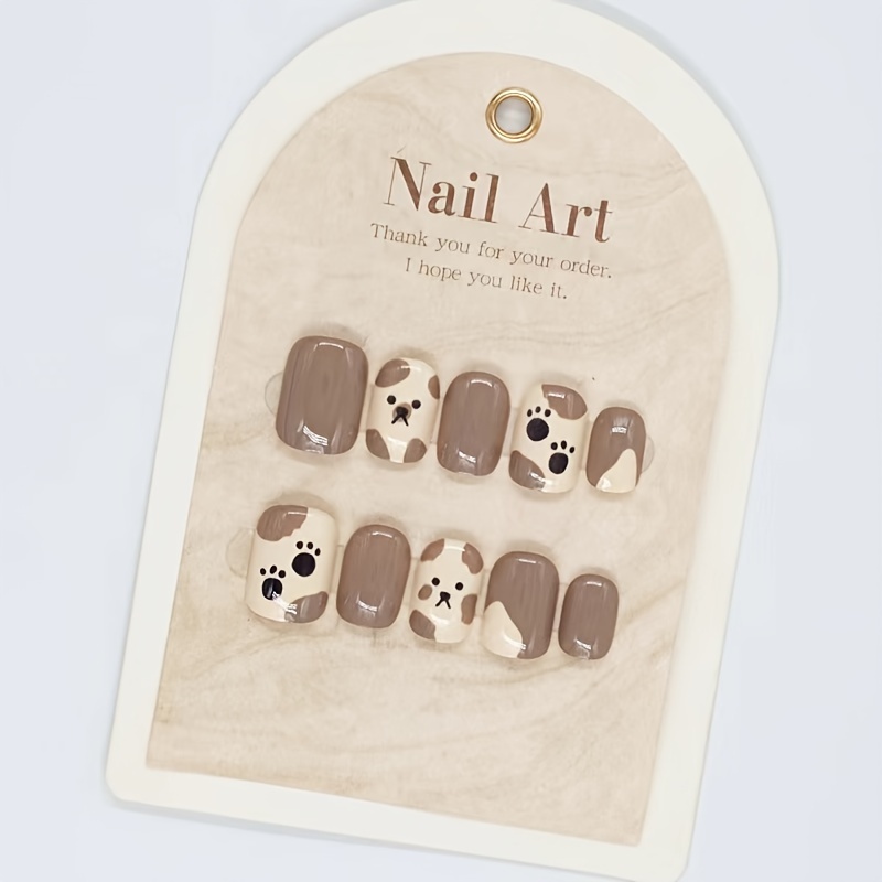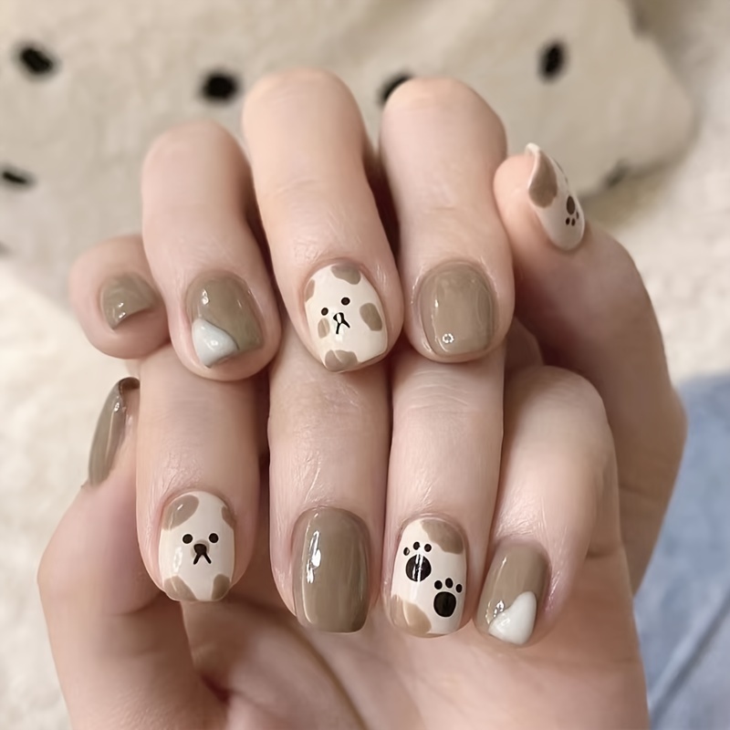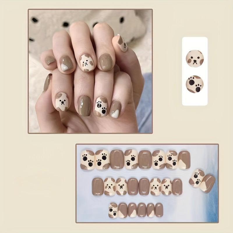 24pcs Cute Bear Design Fake Nails Set - Matte Finish, Animal Patterns, Reusable with Mini Nail File and Jelly Glue Included