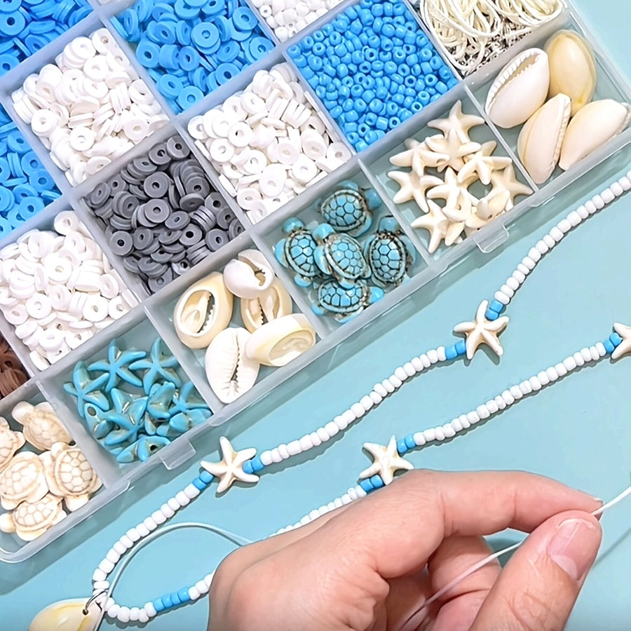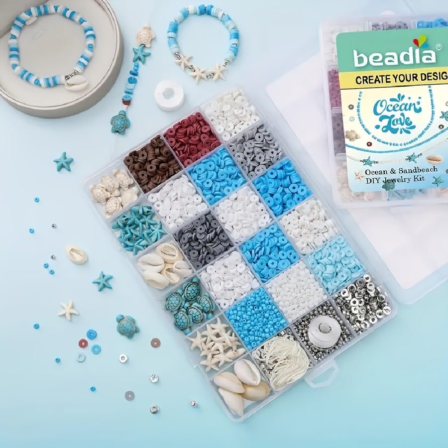 3200pcs Ocean Vacation Jewelry Making Kit with Sea Turtles, Shells, Starfish Charms - Includes Natural Stones & Polymer Clay Beads for DIY Friendship Bracelets, Necklaces - Elegant Beach-Themed Craft Set for Girls & Adults, Craft Kit|Creative Hobbies|Natu