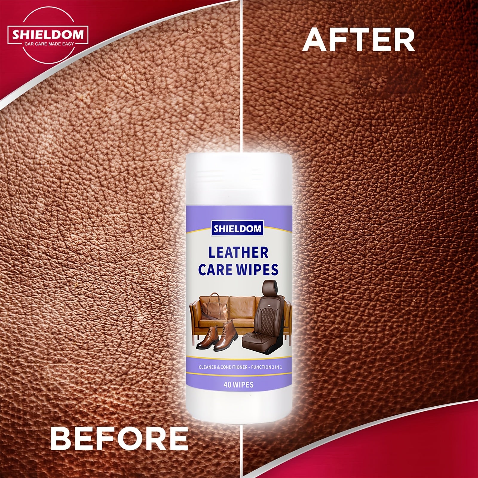 [40 Leather Care Wipes] 40 Leather Care Wipes | Car Seat Leather Conditioner Wipes for Leather Couches, Automotive Interior, Boots, Handbags, Shoes, Horse Saddles
