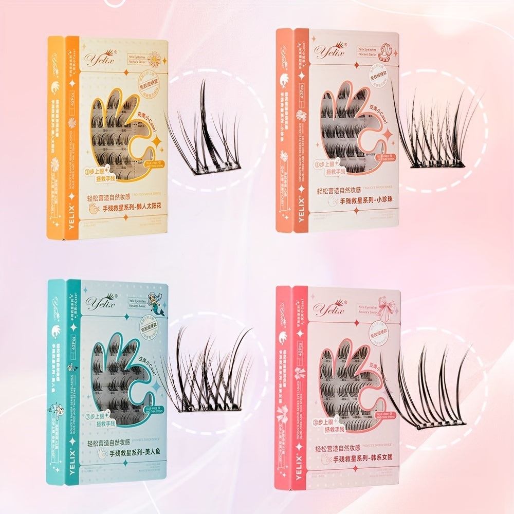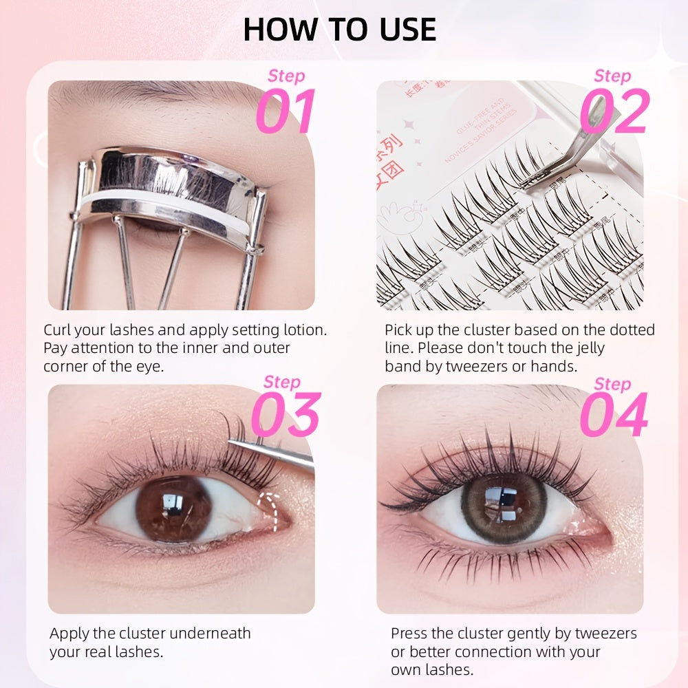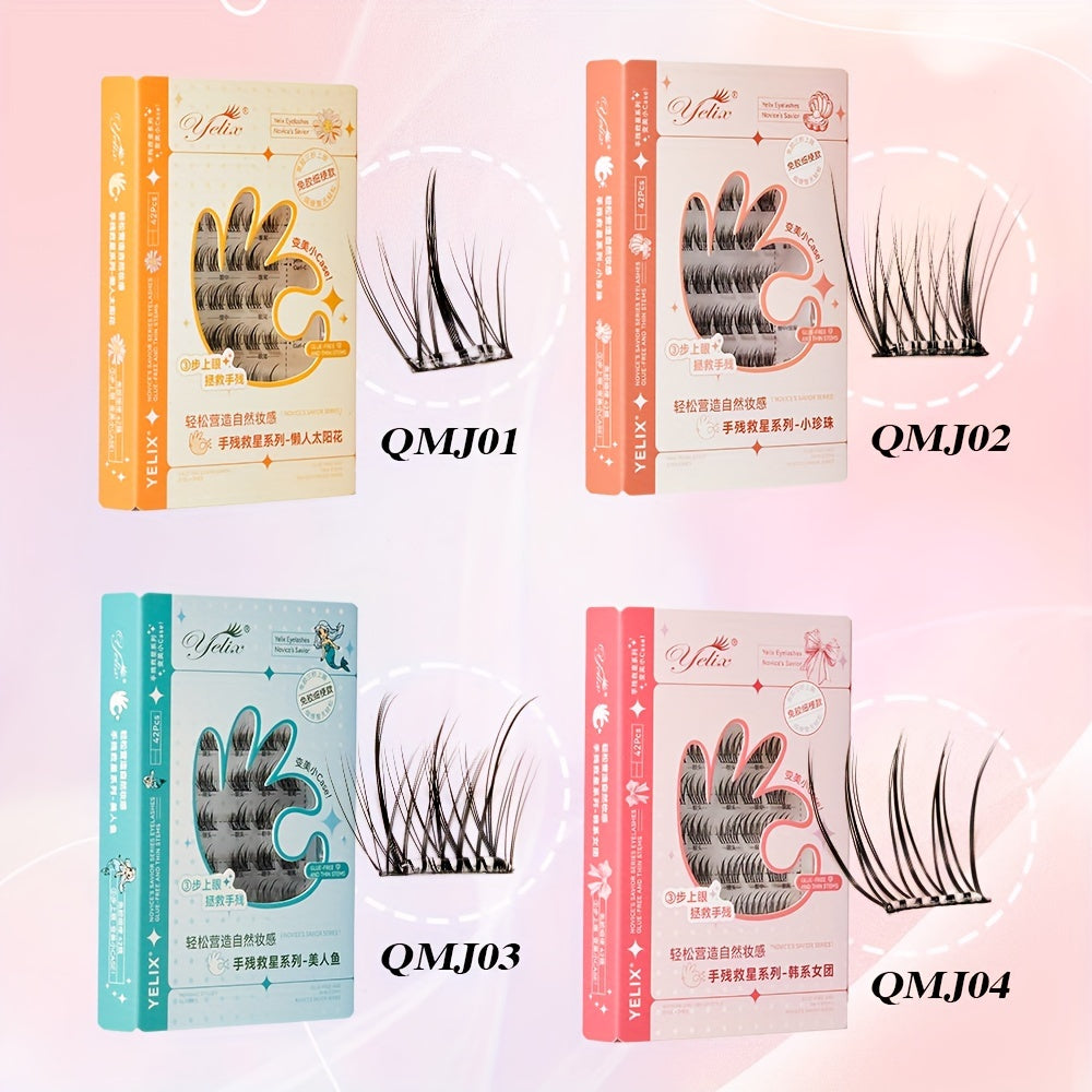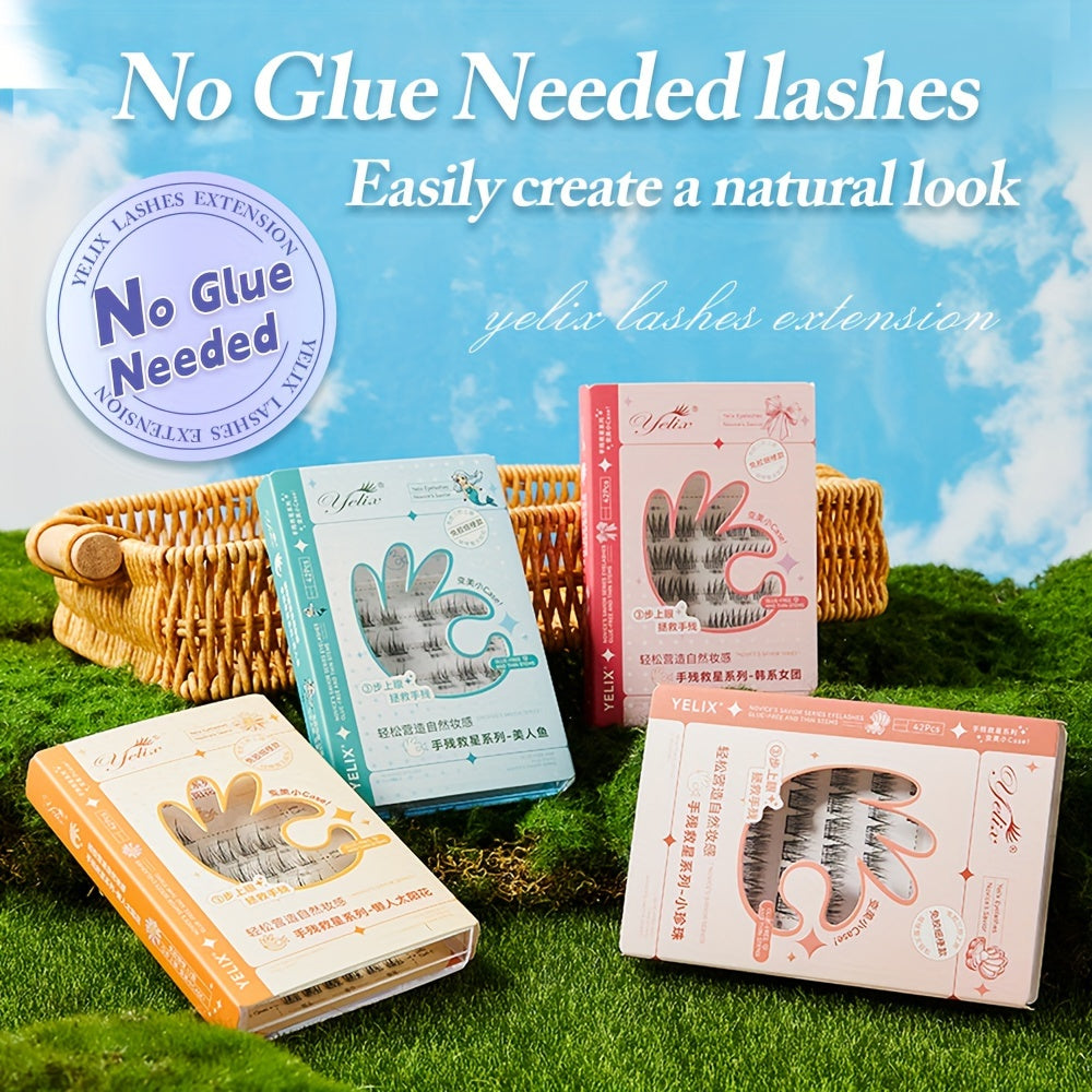 42 Clusters C/J Curl No Glue Needed Eyelash Extensions Handmade Grafting Individual False Eyelash Wispy Lashes Gift for Women & Girl