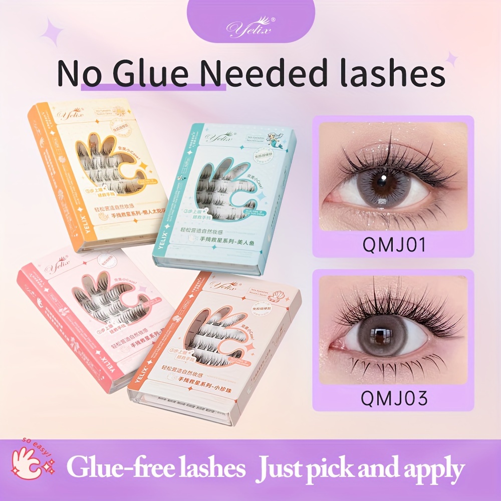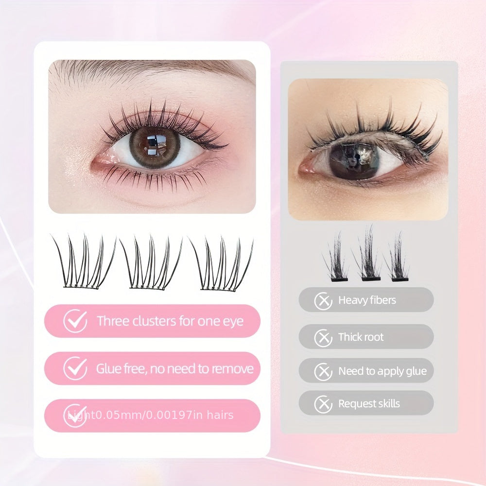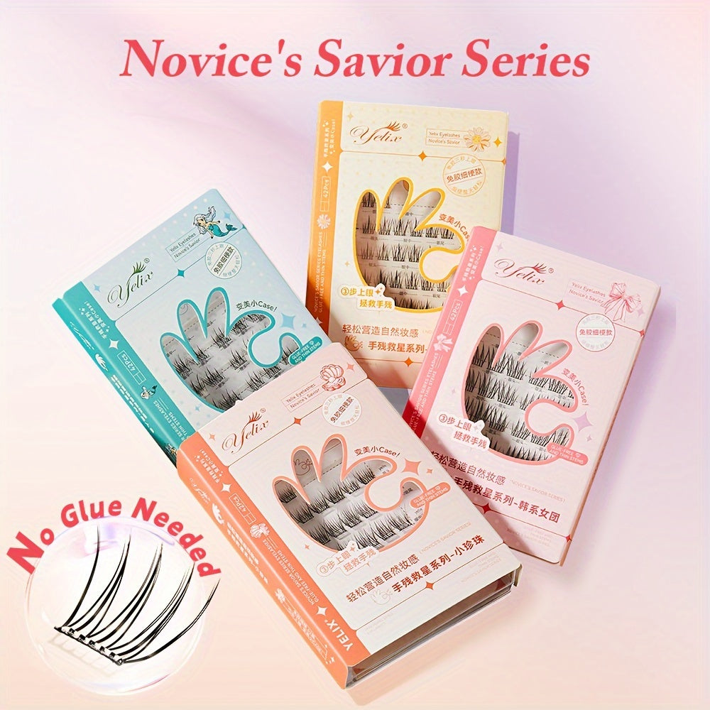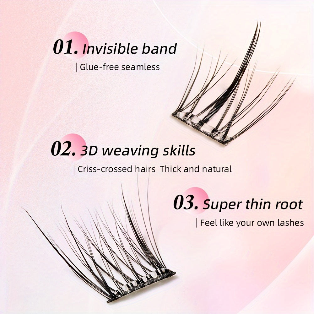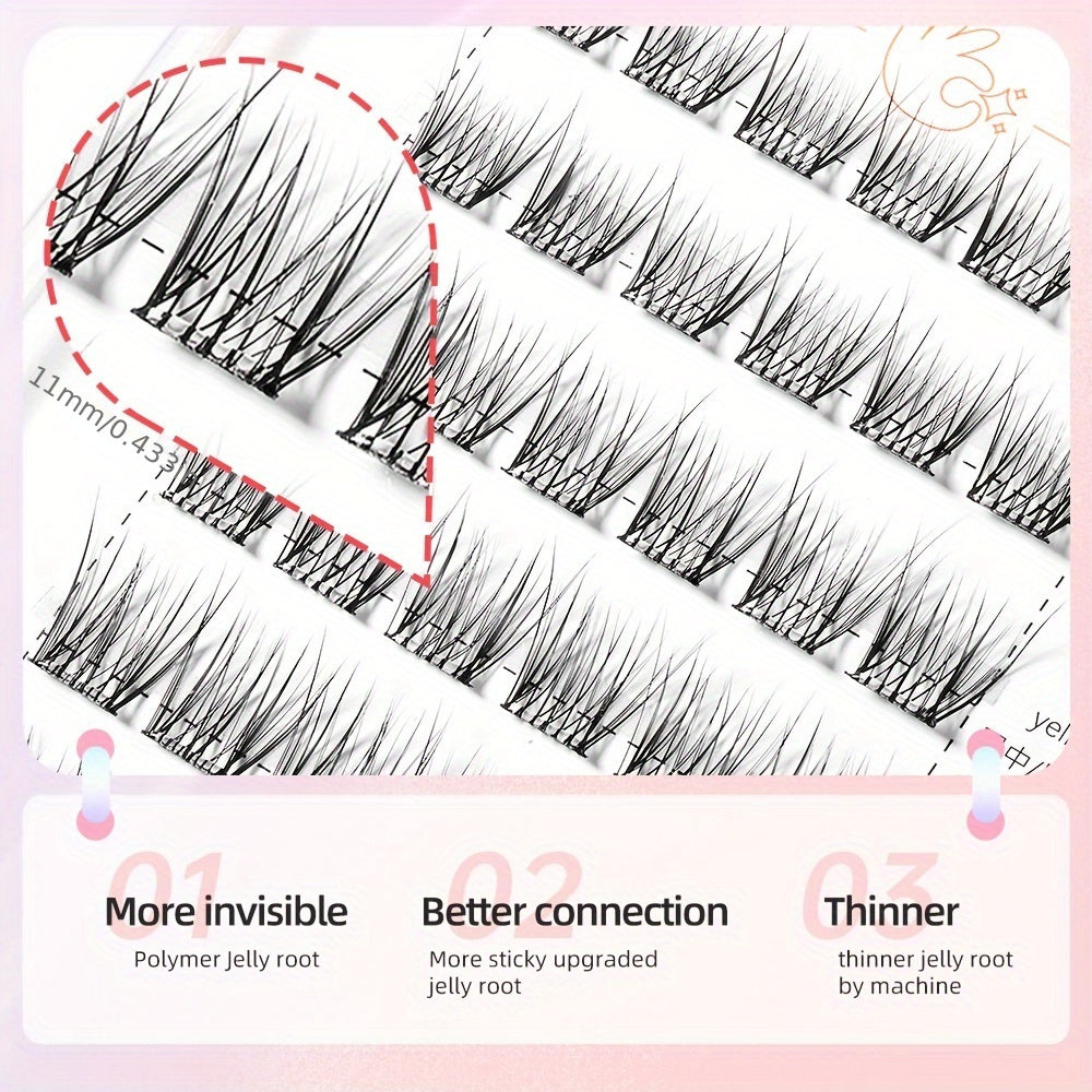 42 Clusters C/J Curl No Glue Needed Eyelash Extensions Handmade Grafting Individual False Eyelash Wispy Lashes Gift for Women & Girl