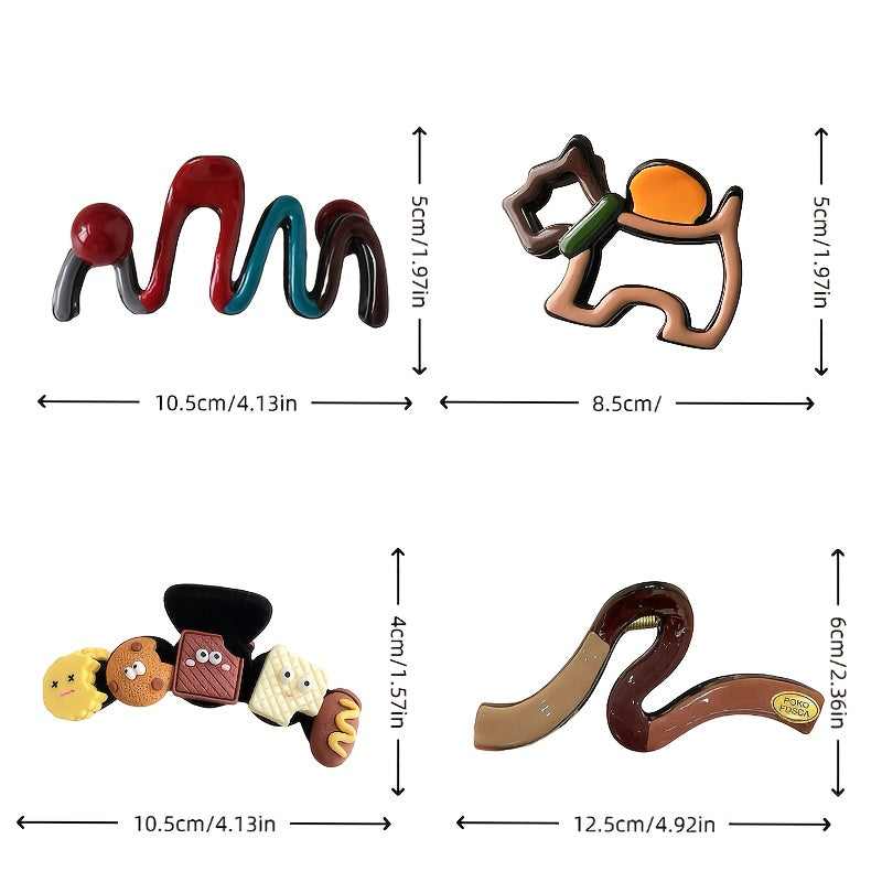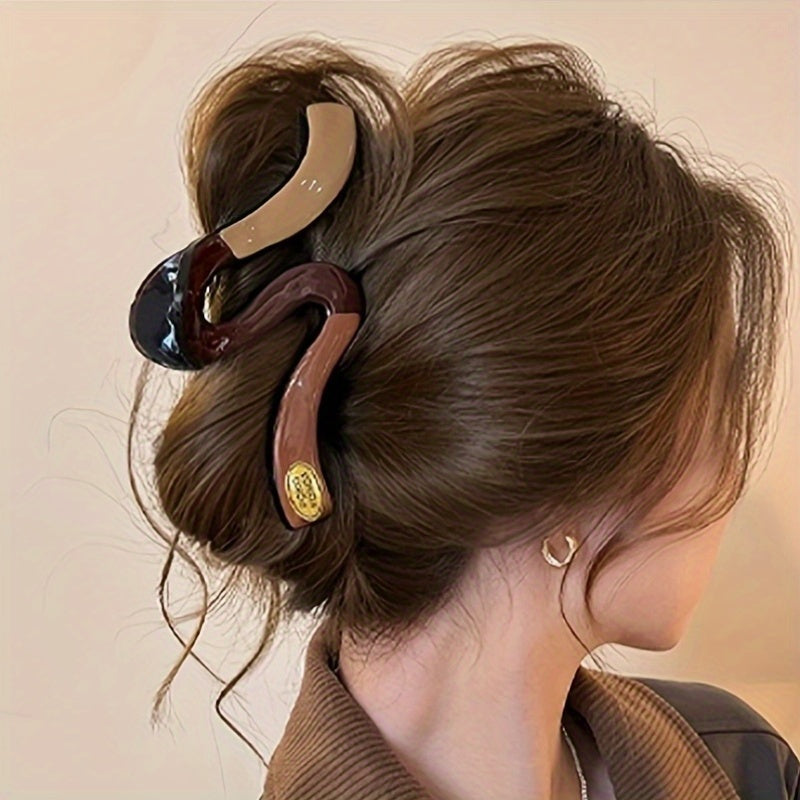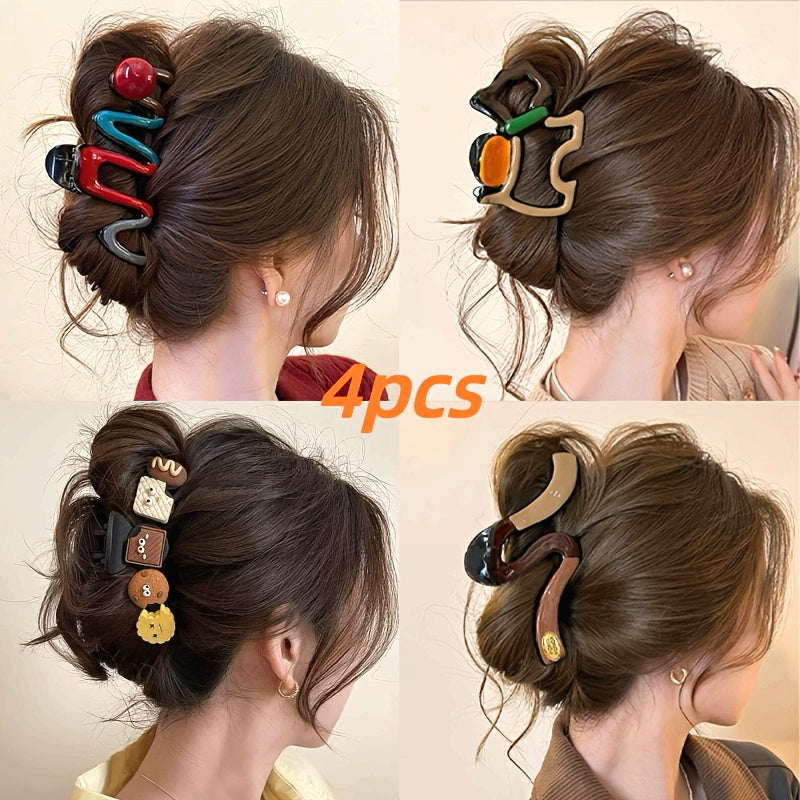 [4pcs Hair Clips] 4pcs Elegant Hair Claw Clips | Chic Wavy Design with Faux Pearl & Color Accents, Non-Slip Shark Clips for Thick Hair