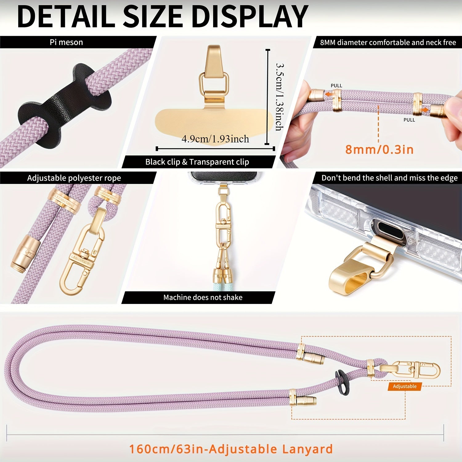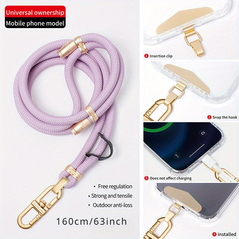 63-Inch Adjustable Crossbody Phone Lanyard with Clip - Durable, Anti-Theft Wrist Strap for Secure Shopping & Travel - Available in Multiple Colors