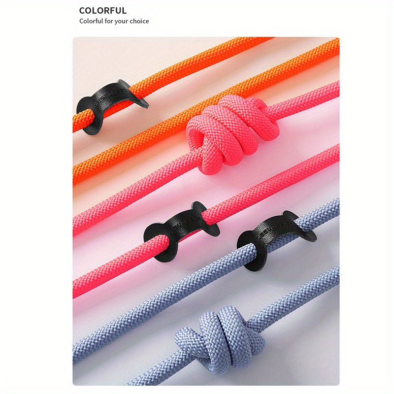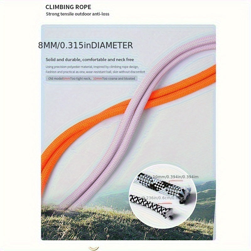 Available colors: black, khaki, purple, blue, orange, etc. Total length: approx. 160cm/63in Rope thickness: approx. 8mm/0.31 inches Material: alloy, polyester fiber, comes with a plated metal clip