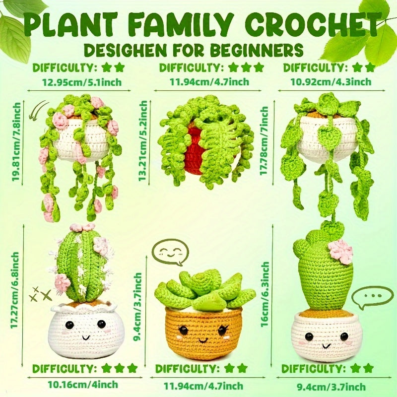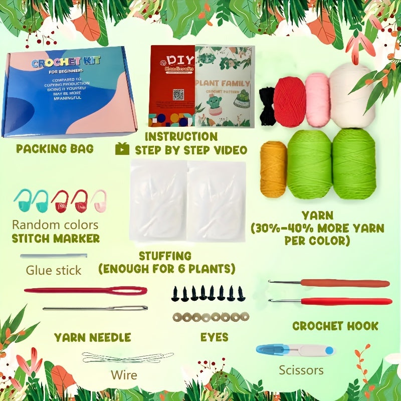 6pcs DIY Handcraft Set Beginner Crochet Kit with Yarn, Instructions, Video Tutorial for Adults - Perfect for Halloween & Christmas Gifts