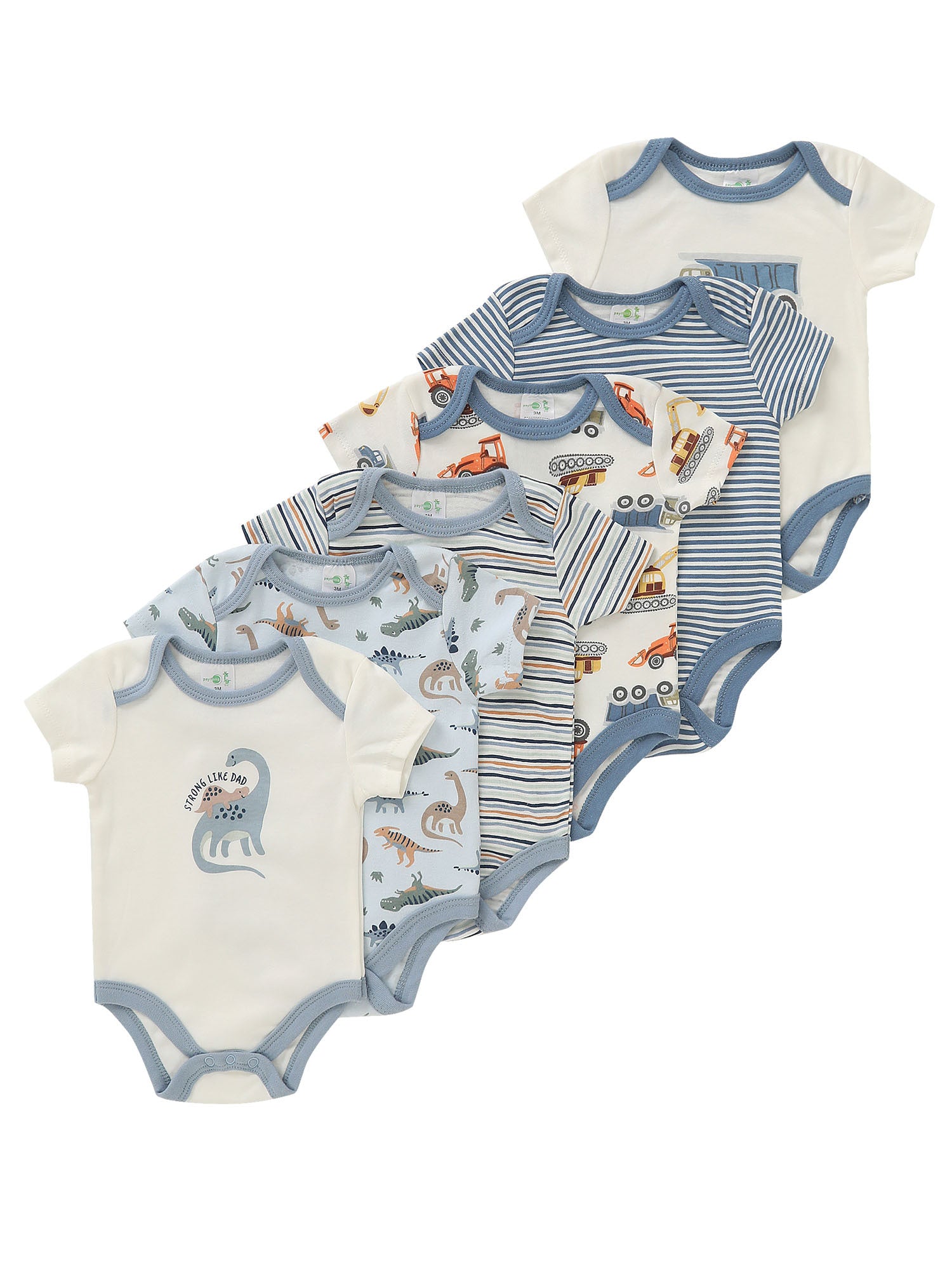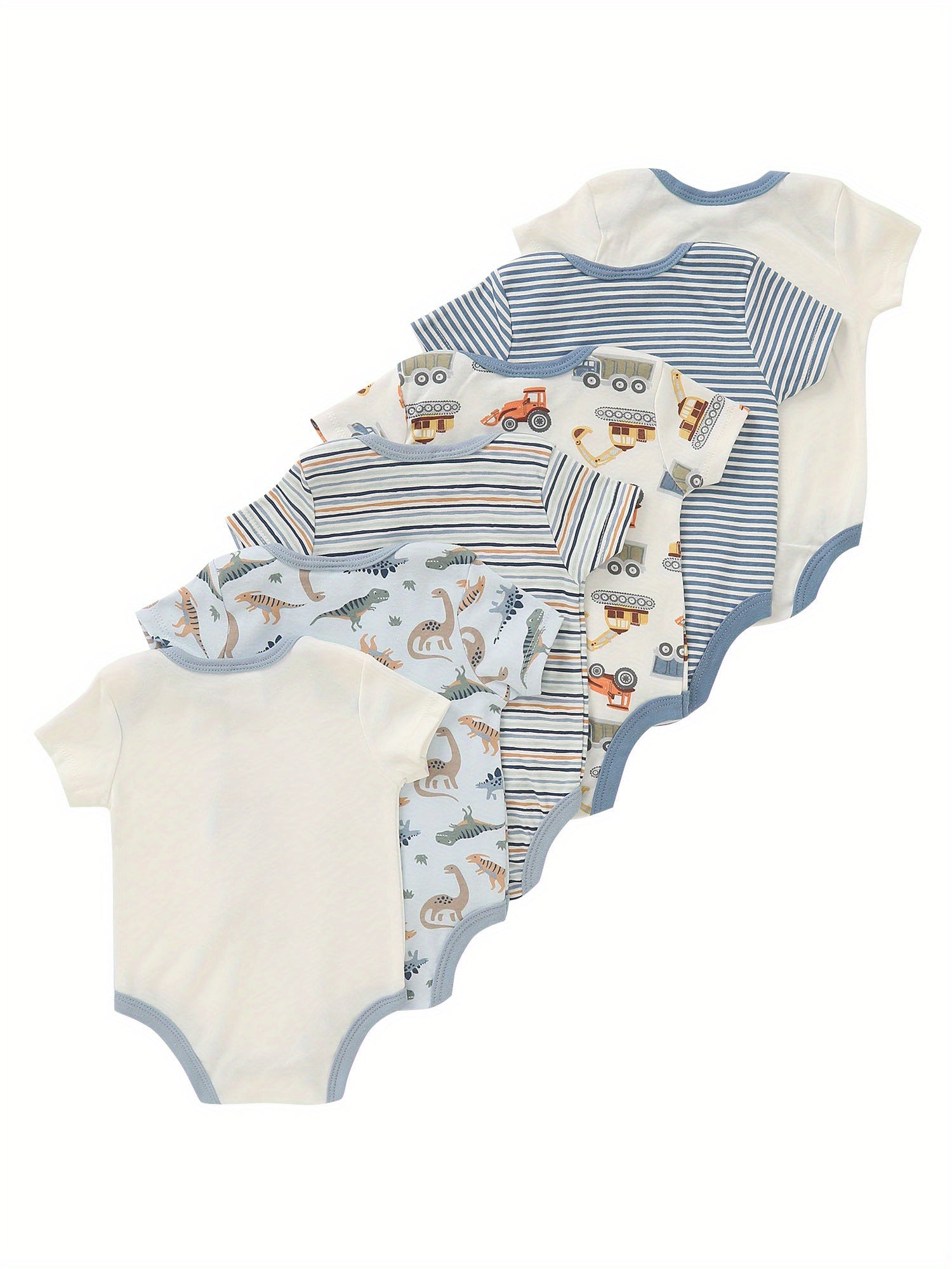 6pcs PAYIFANG Youngsters Boy Rompers with Dinosaur & Truck Embroidery - Cotton Blend, Short Sleeve, Round Neck Bodysuits for Youngsters & Youngsters, Ideal for Outdoor Activities, Youngsters Boy Clothes, Perfect for Outdoor
