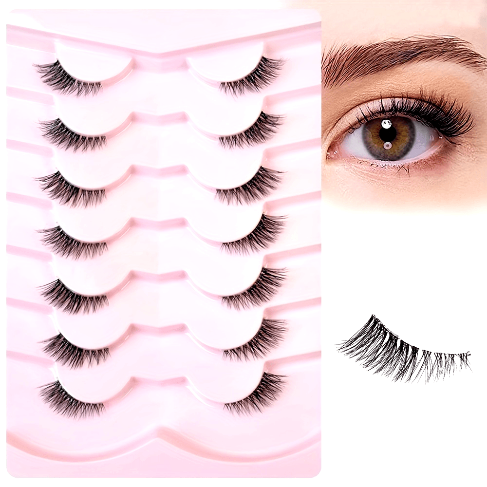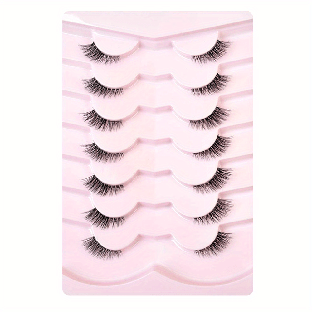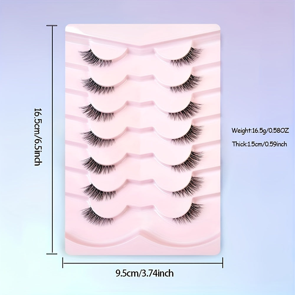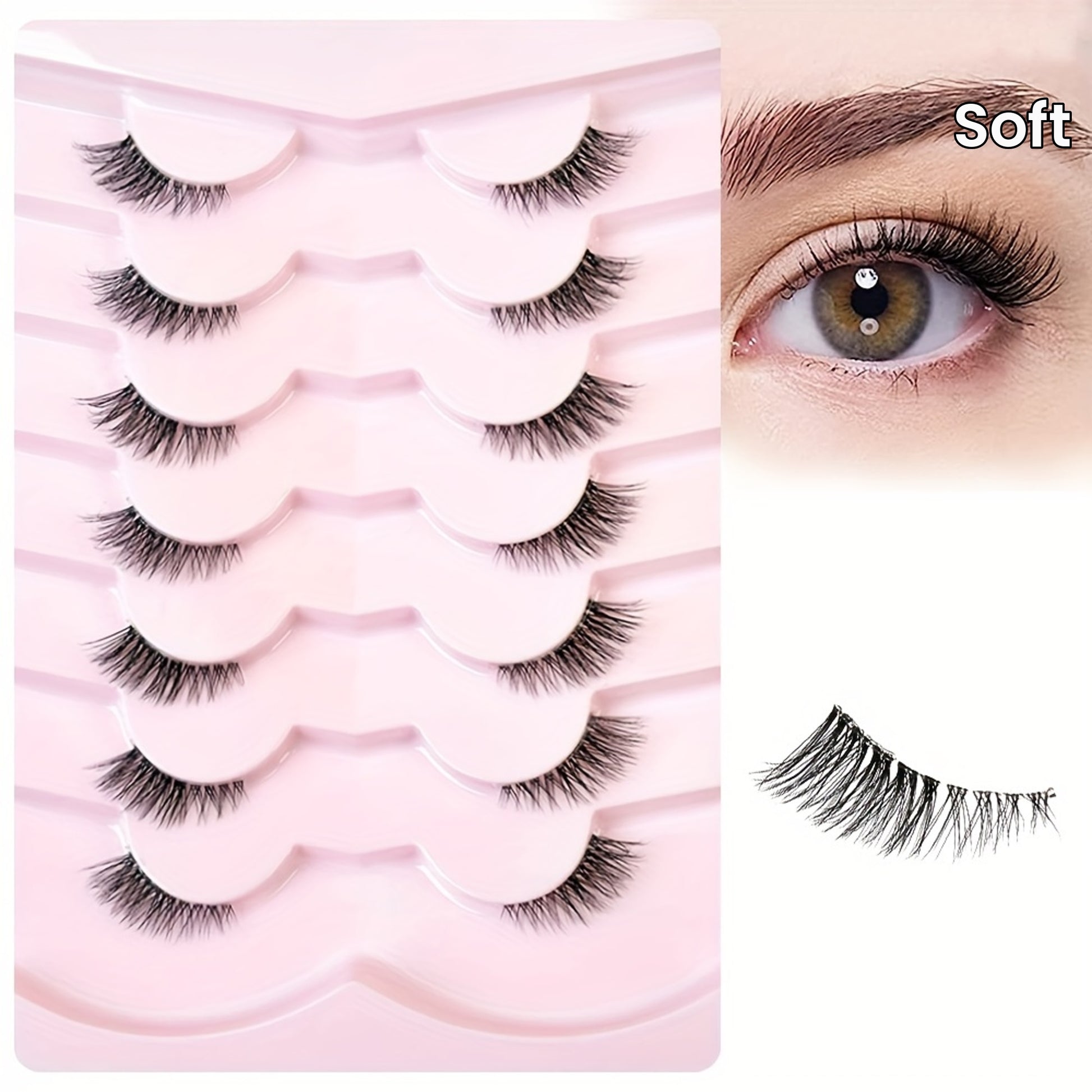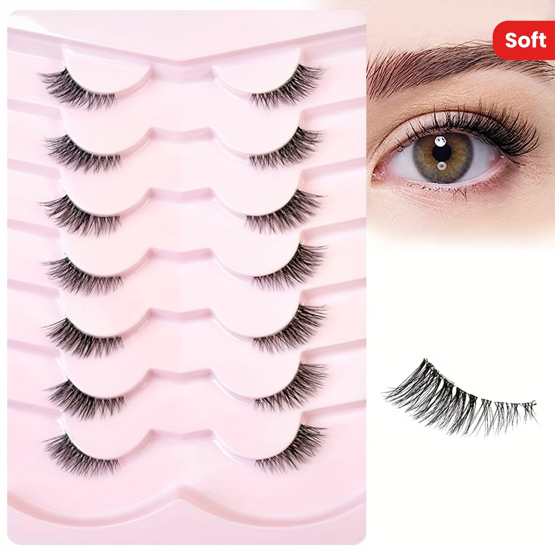 7 Pairs 10MM Short Soft Faux Mink Half Lashes with Clear Band, Natural Looking, Wispy Cat Eye, 3D Fluffy False Lashes Multipack