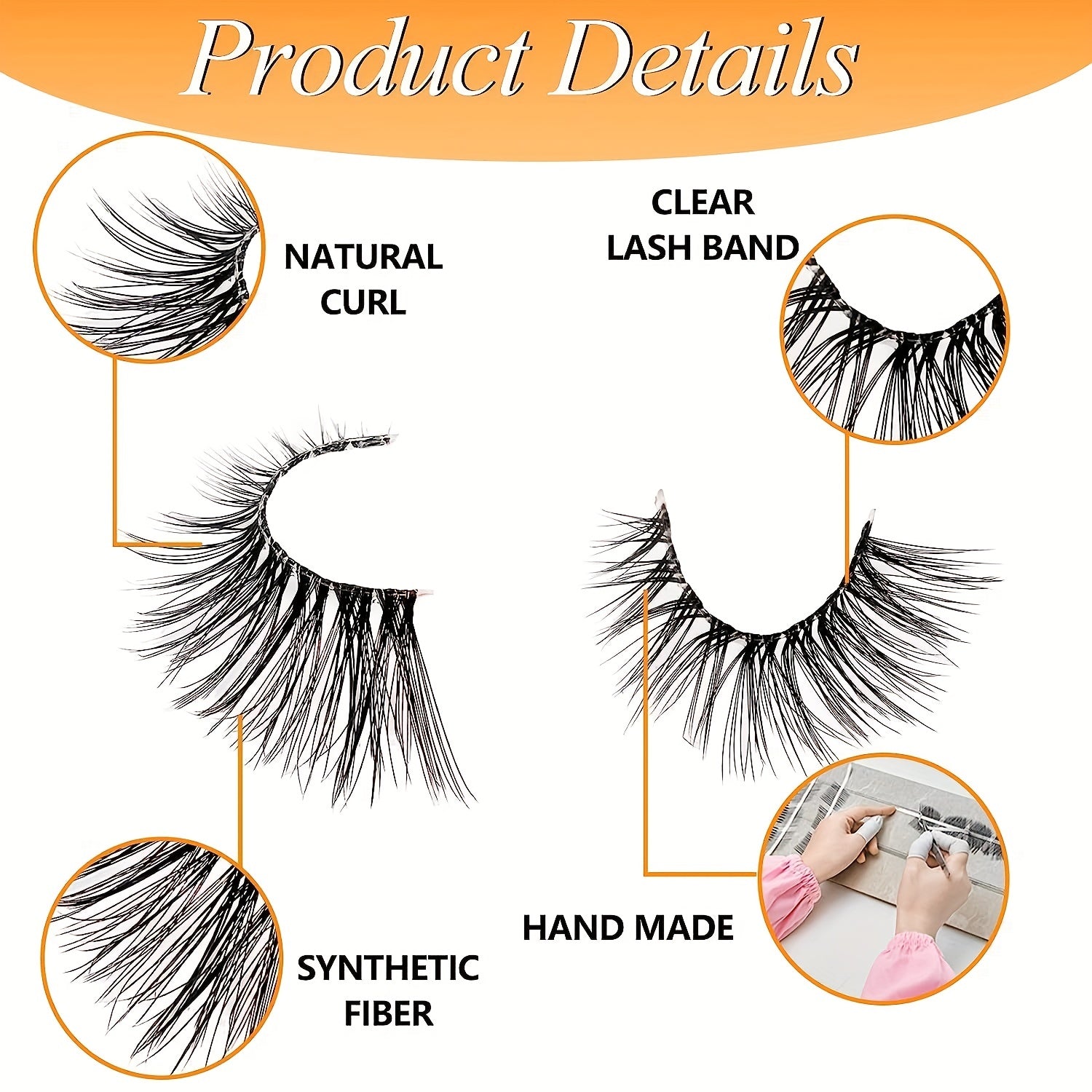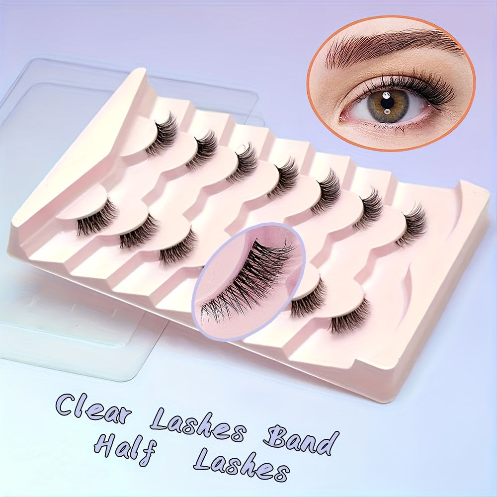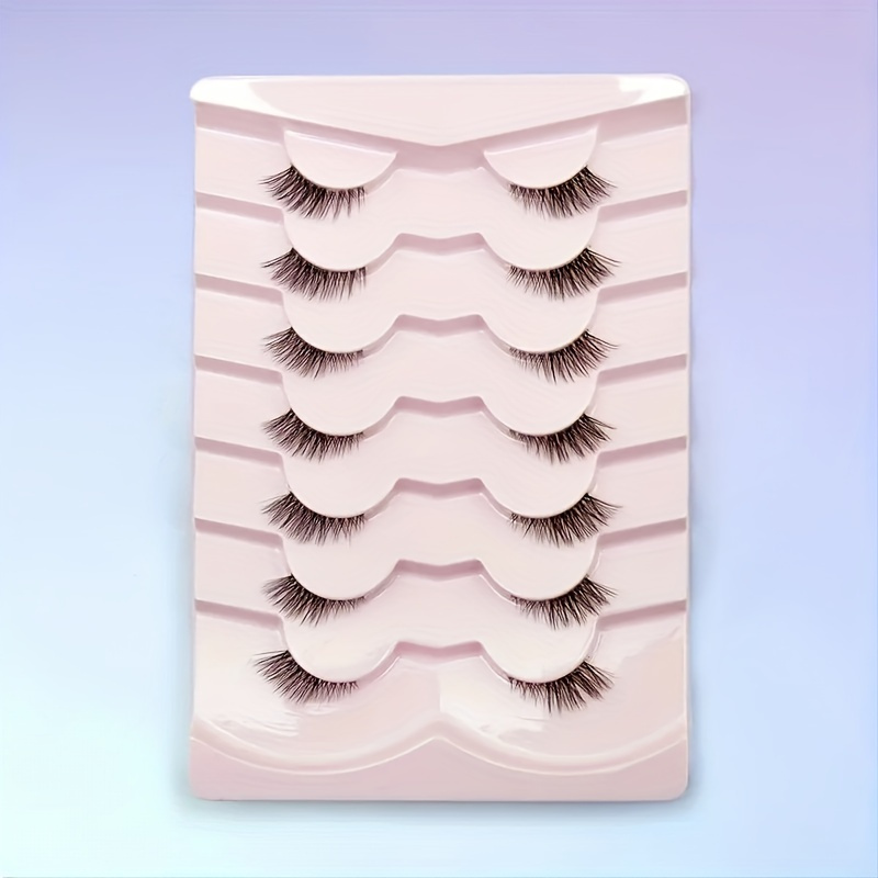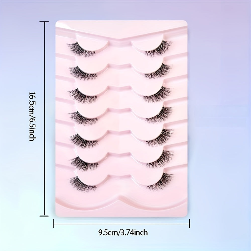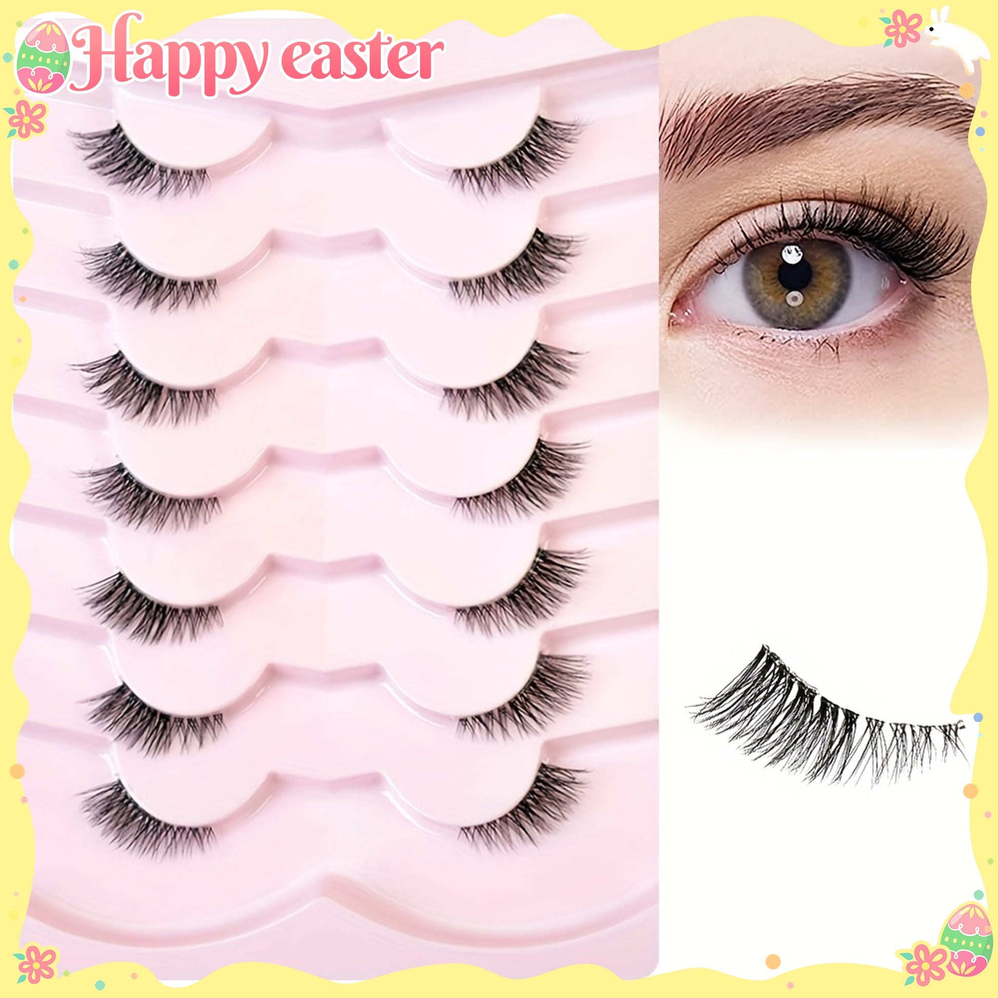 7 Pairs 10MM Short Soft Faux Mink Half Lashes with Clear Band, Natural Looking, Wispy Cat Eye, 3D Fluffy False Lashes Multipack