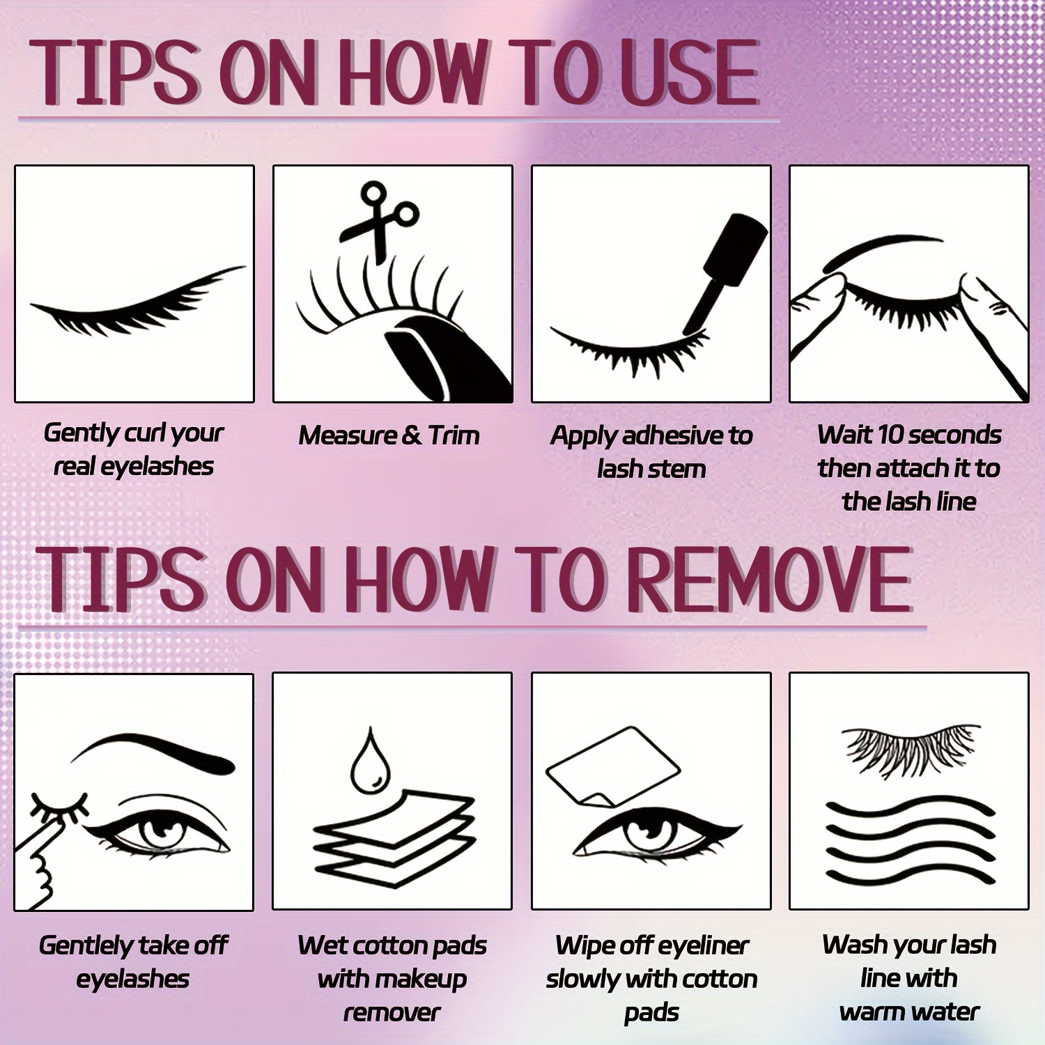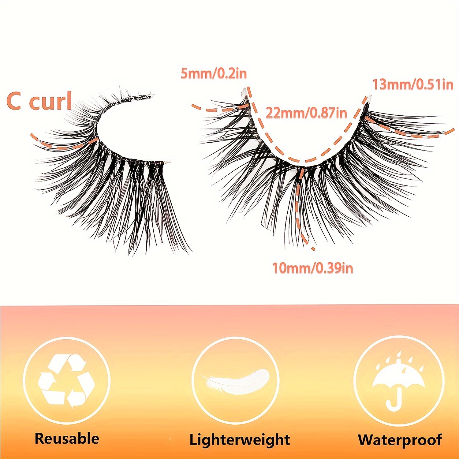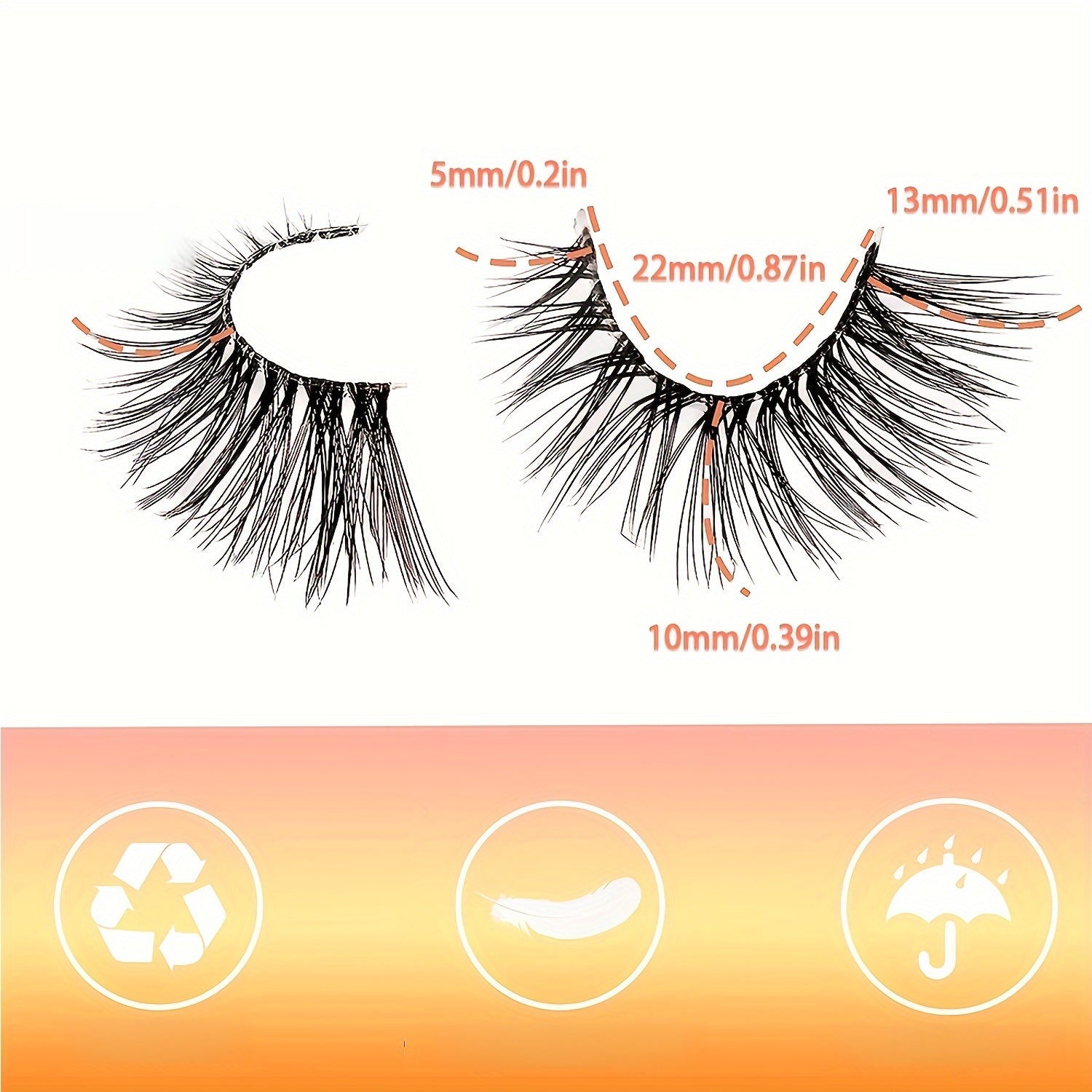 Natural looking wispy cat eye design Clear band for seamless application 3D fluffy false lashes for added volume 7 pairs included for multiple uses Short 10mm length for a subtle look Made of soft faux mink for comfort