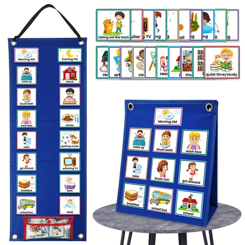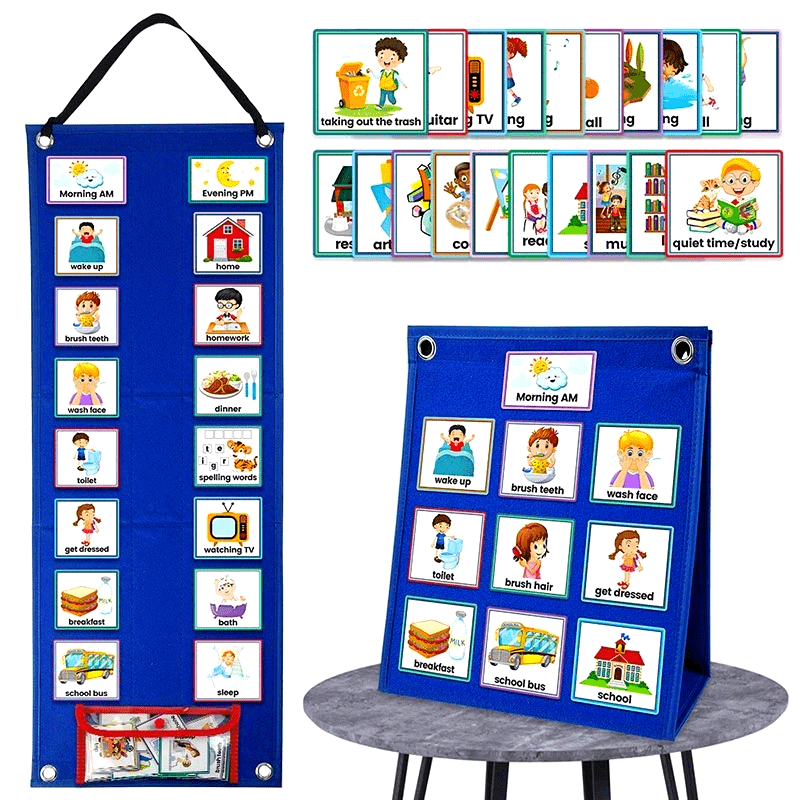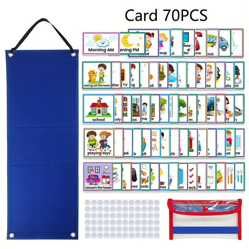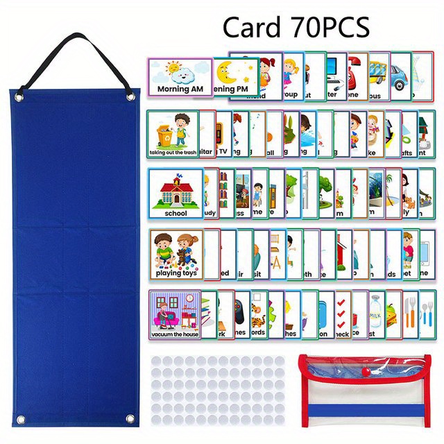 70-Card Visual Daily Schedule Board - Autism Learning Materials for Home School, Morning Bedtime Routine Chart, Chore Chart, and Responsibility Tracker with Communication Cards - Non-Electronic, Uncharged, and Easy-to-Use Educational Tool