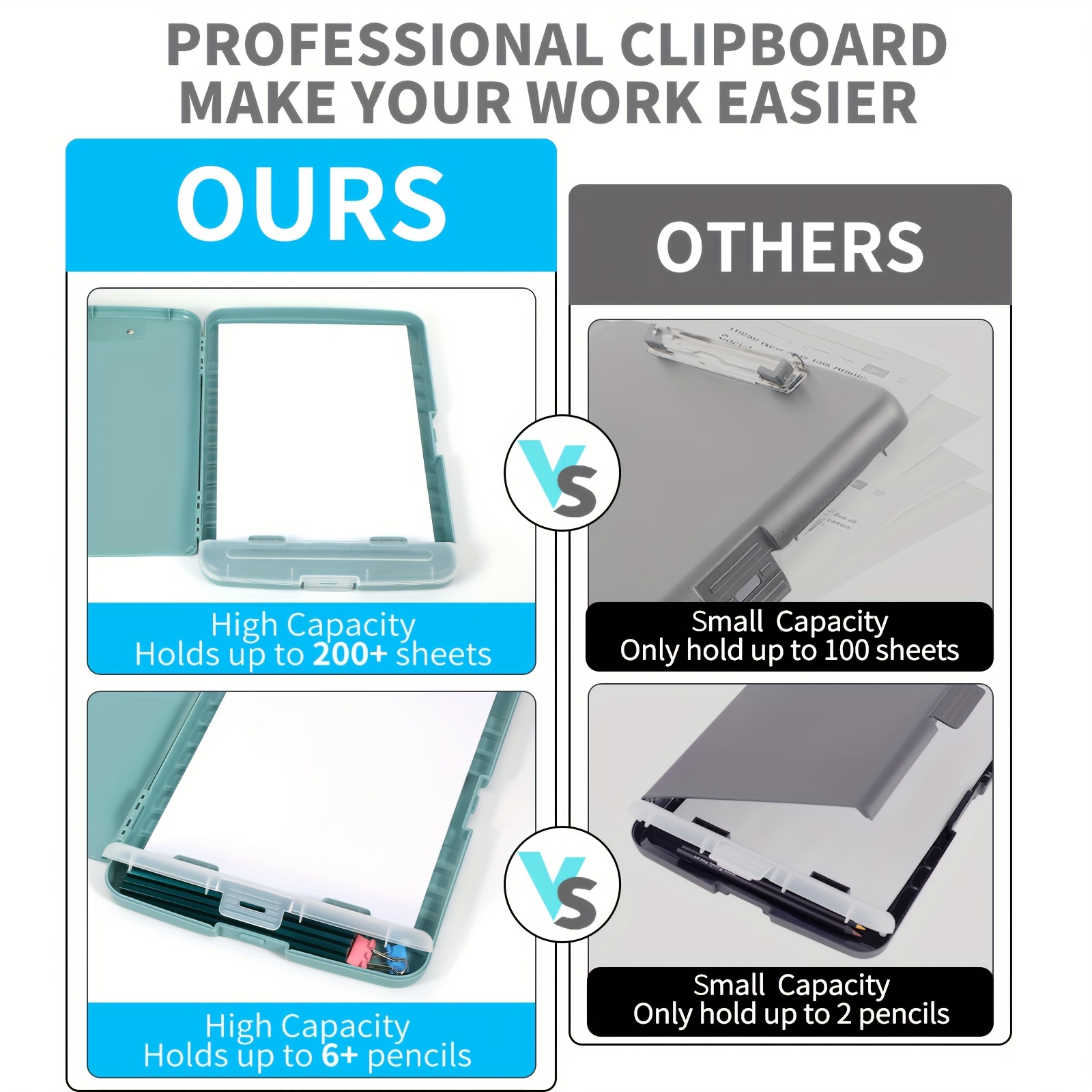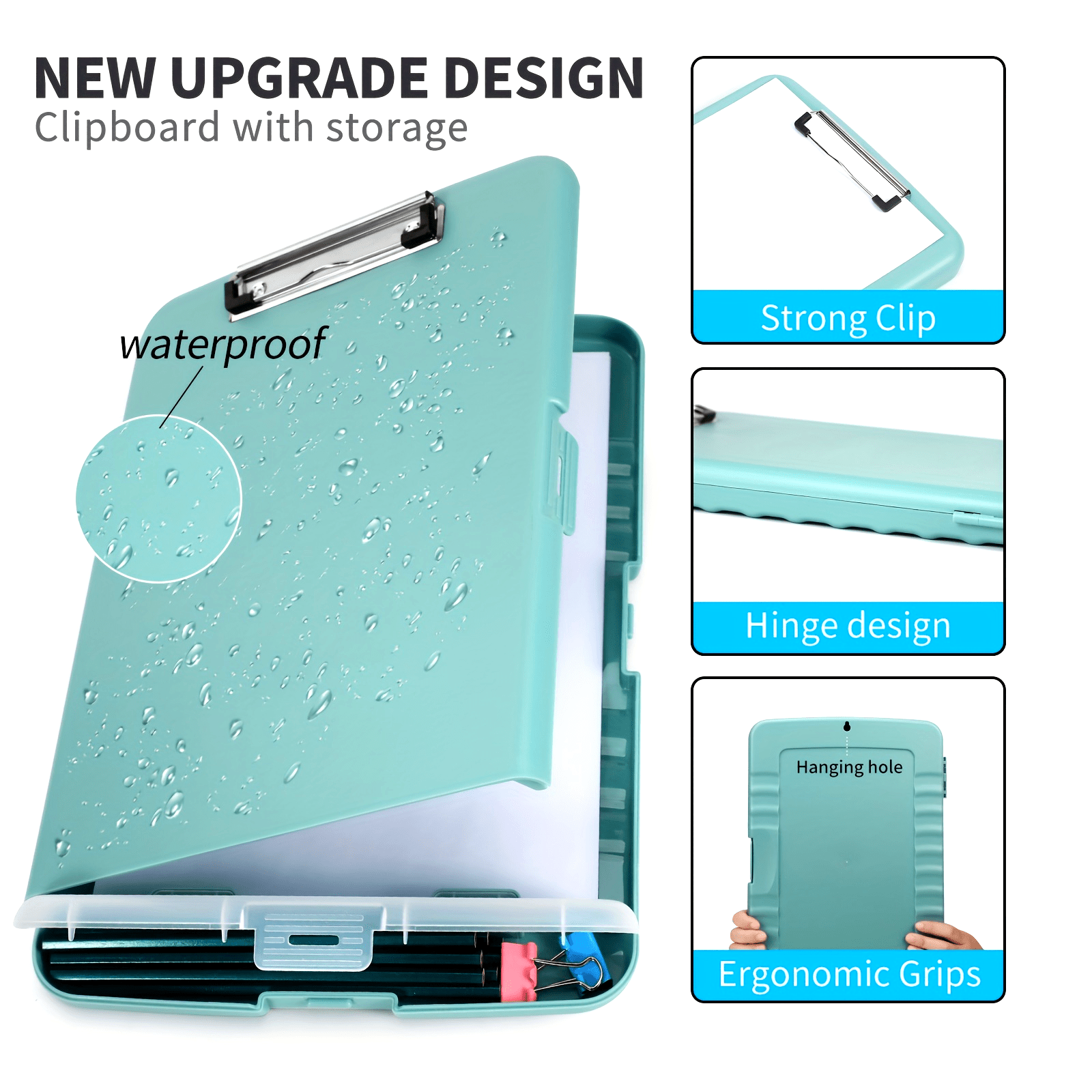 8.5X11 Clipboard with storage, Plastic A4 Clips Board with pen holder to keep your documents organized