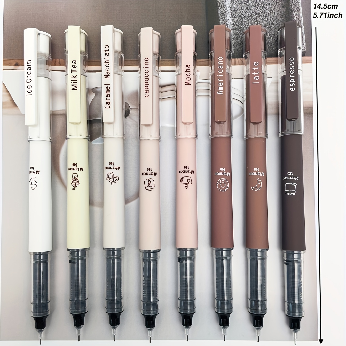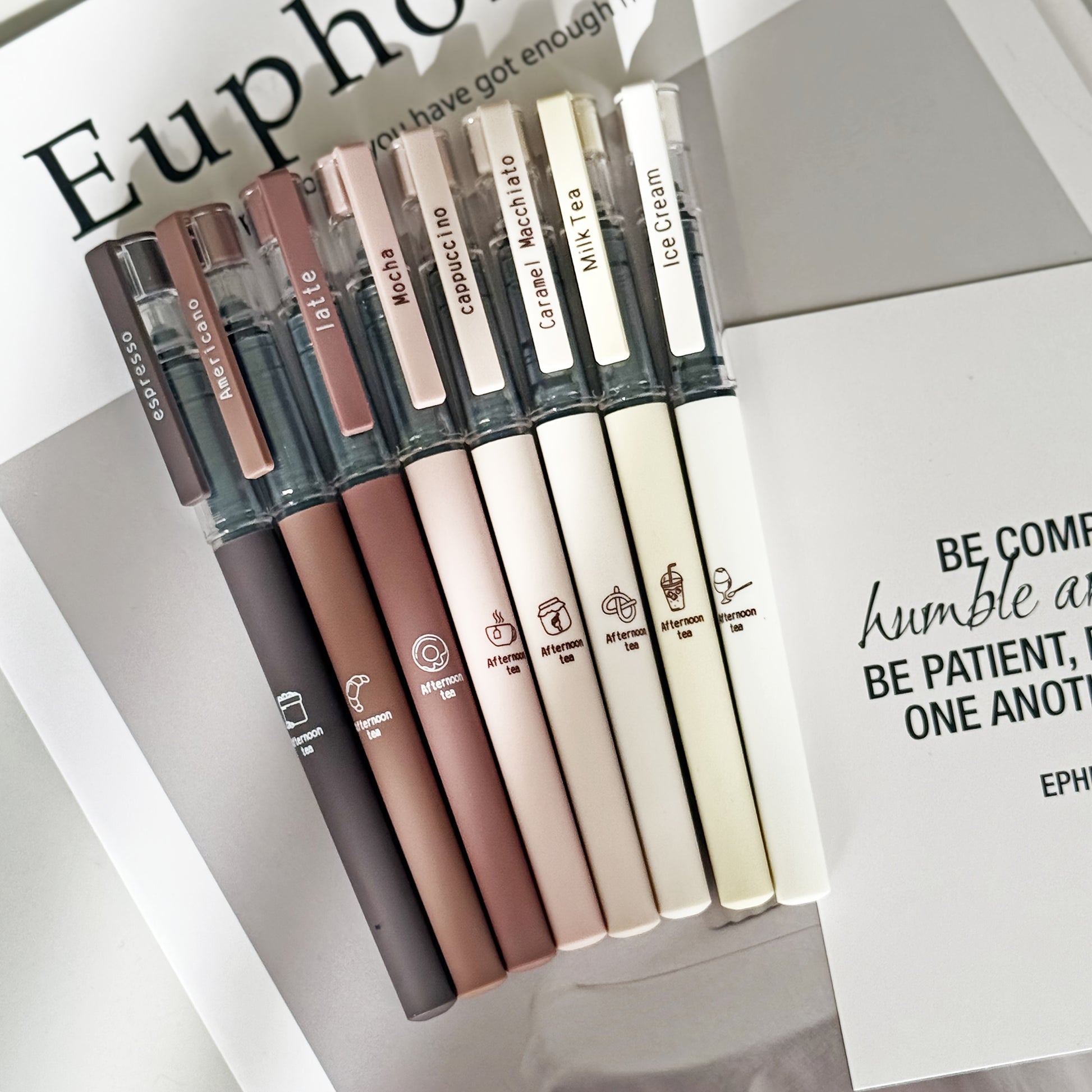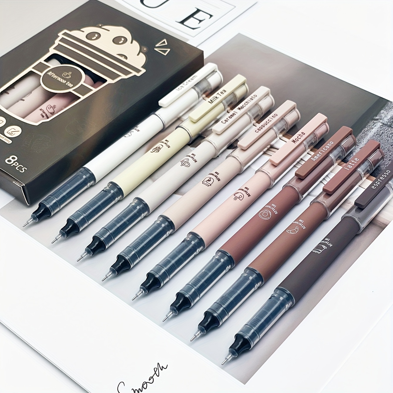 8pcs Coffee-Themed Quick-Dry Gel Pens, No-Smear Soft Fine Tip for Note-Taking, Drawing, School & Office Supplies, Mixed Colors, Back to School Essentials