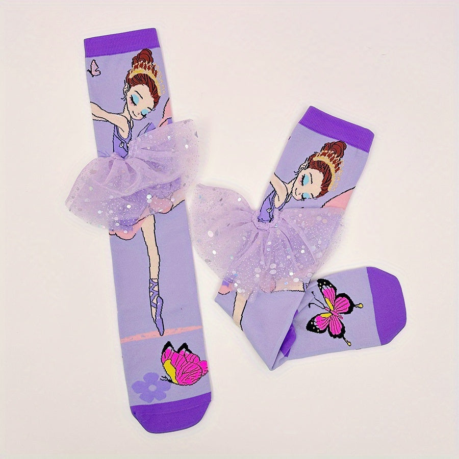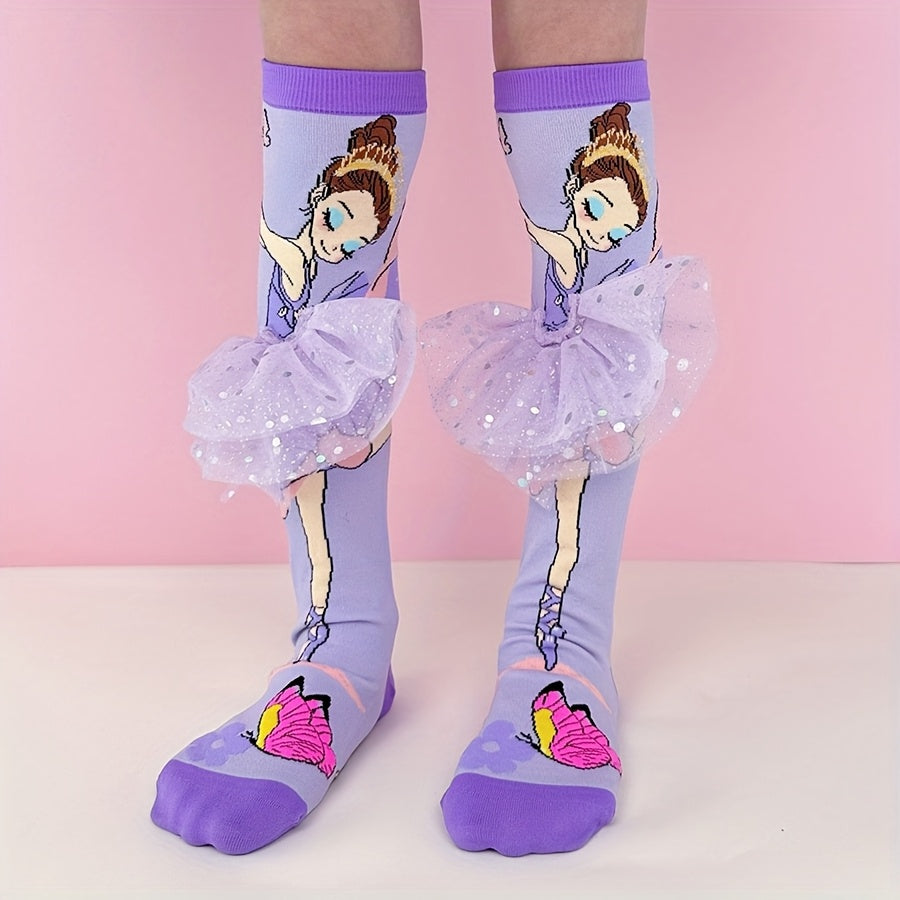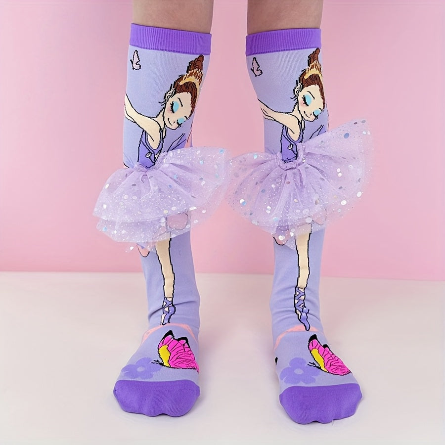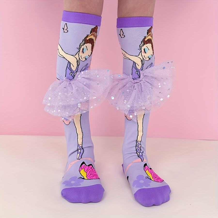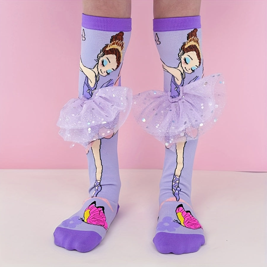 A pair of cartoon purple ballet girl knee-high socks, suitable for daily wear, vacation wear, party wear, suitable for holiday gifts