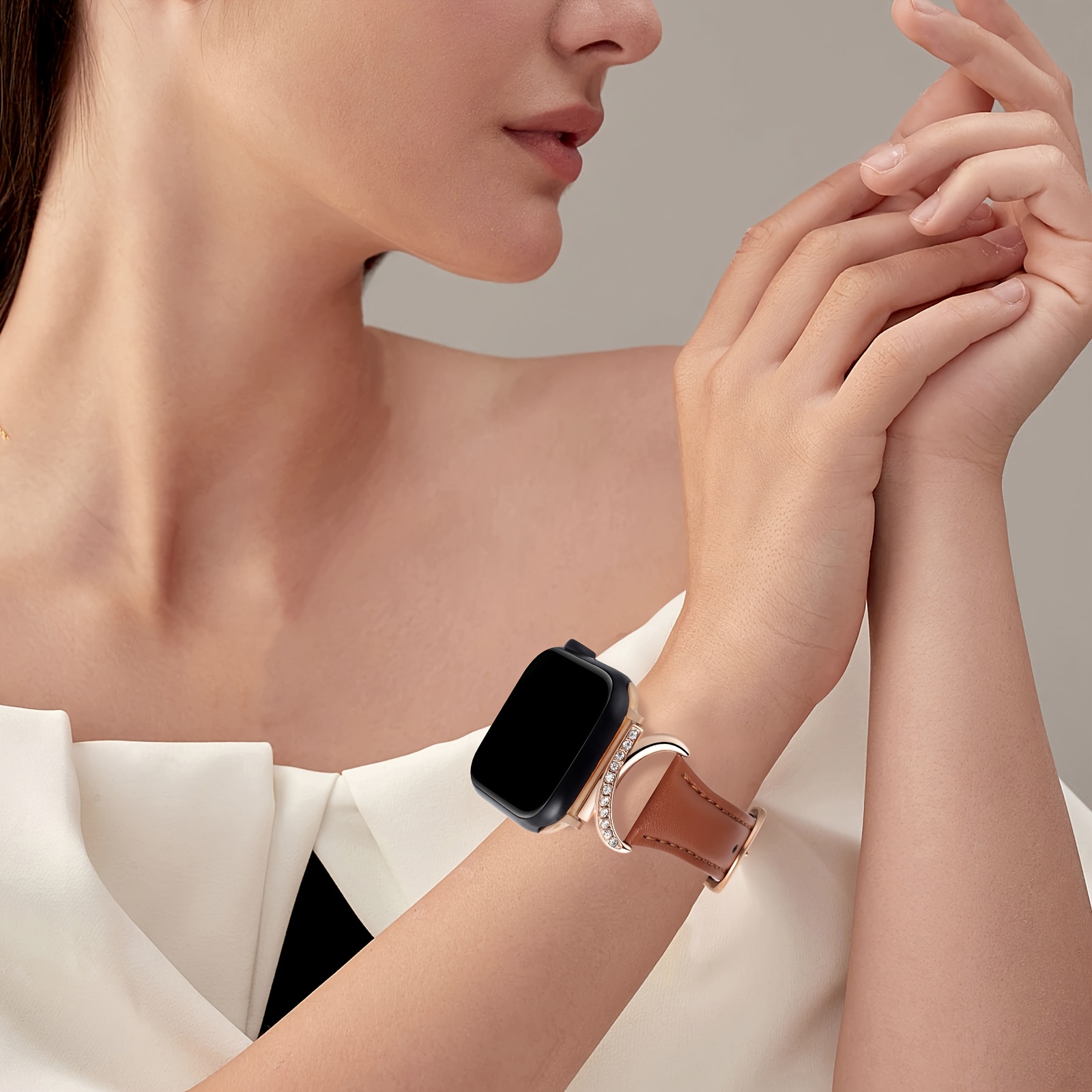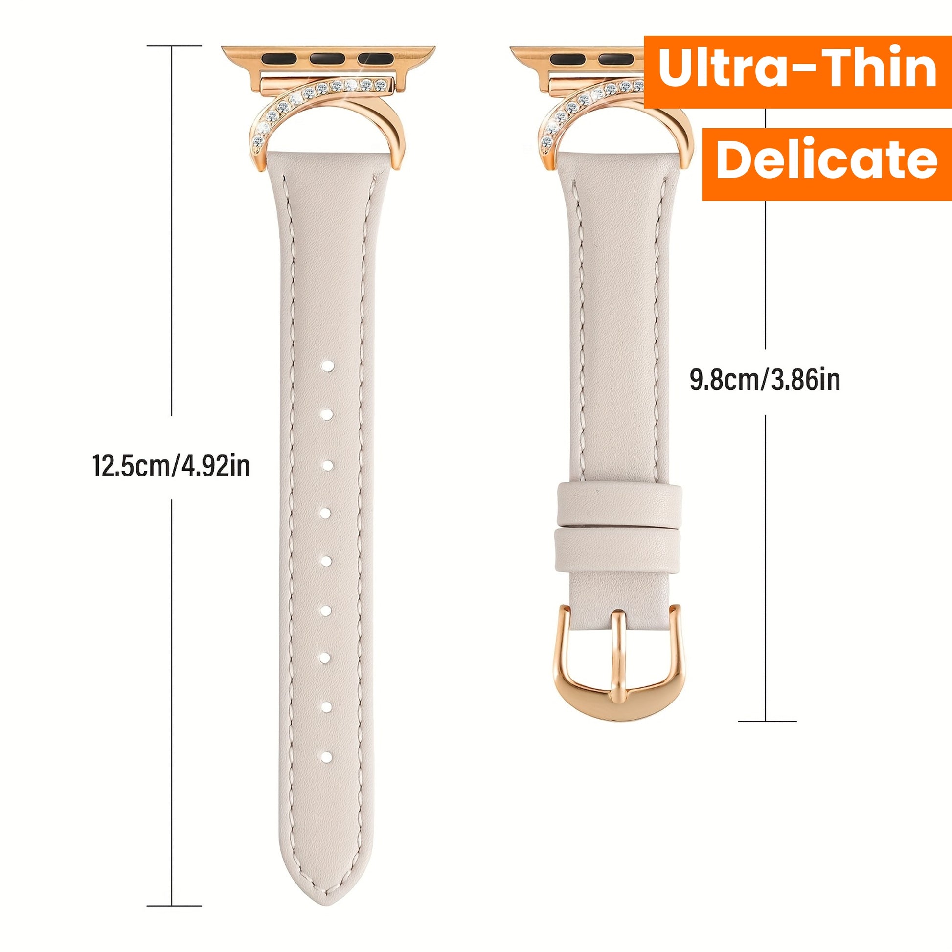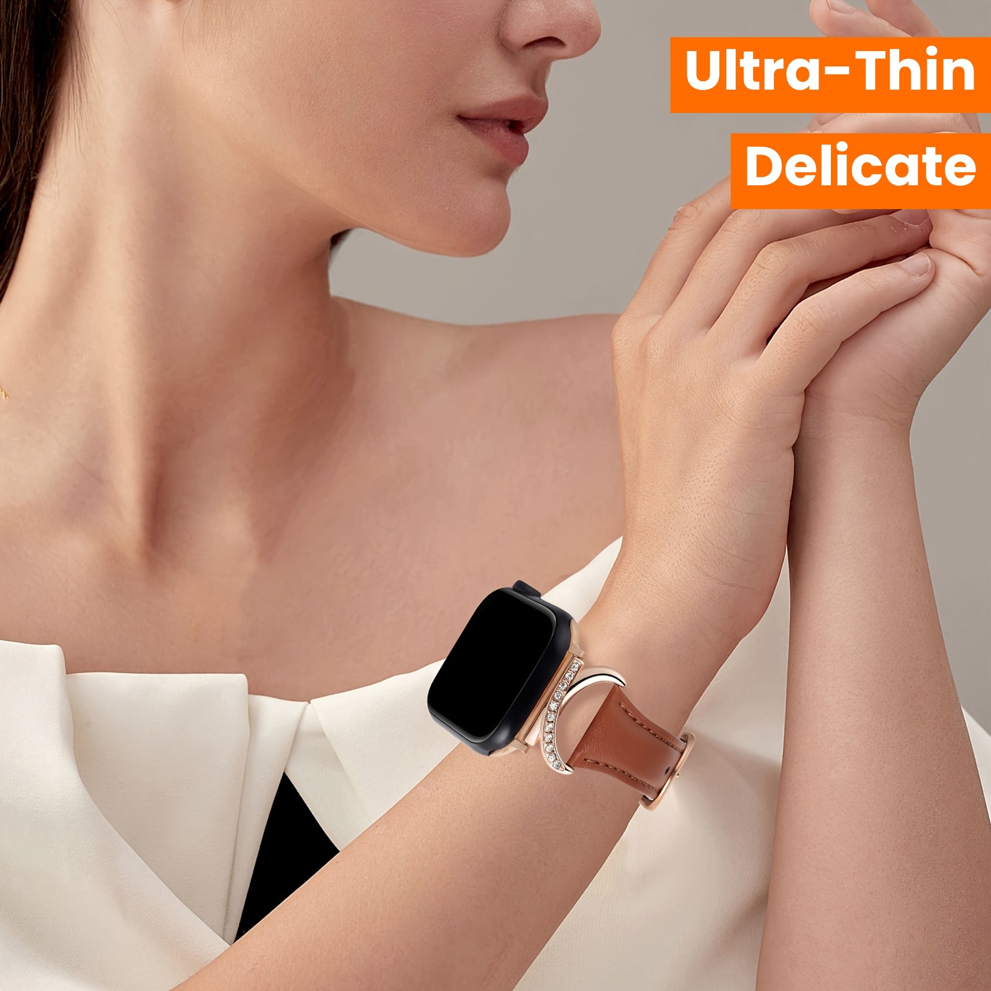 Apple Watch Leather Strap - Ultra-thin Delicate C-shaped Golden Buckle - 41mm 40mm 38mm 42mm 44mm 45mm 46mm 49mm Replacement for Series 10 9 Ultra SE 8 7 6 5 4 3 2 1