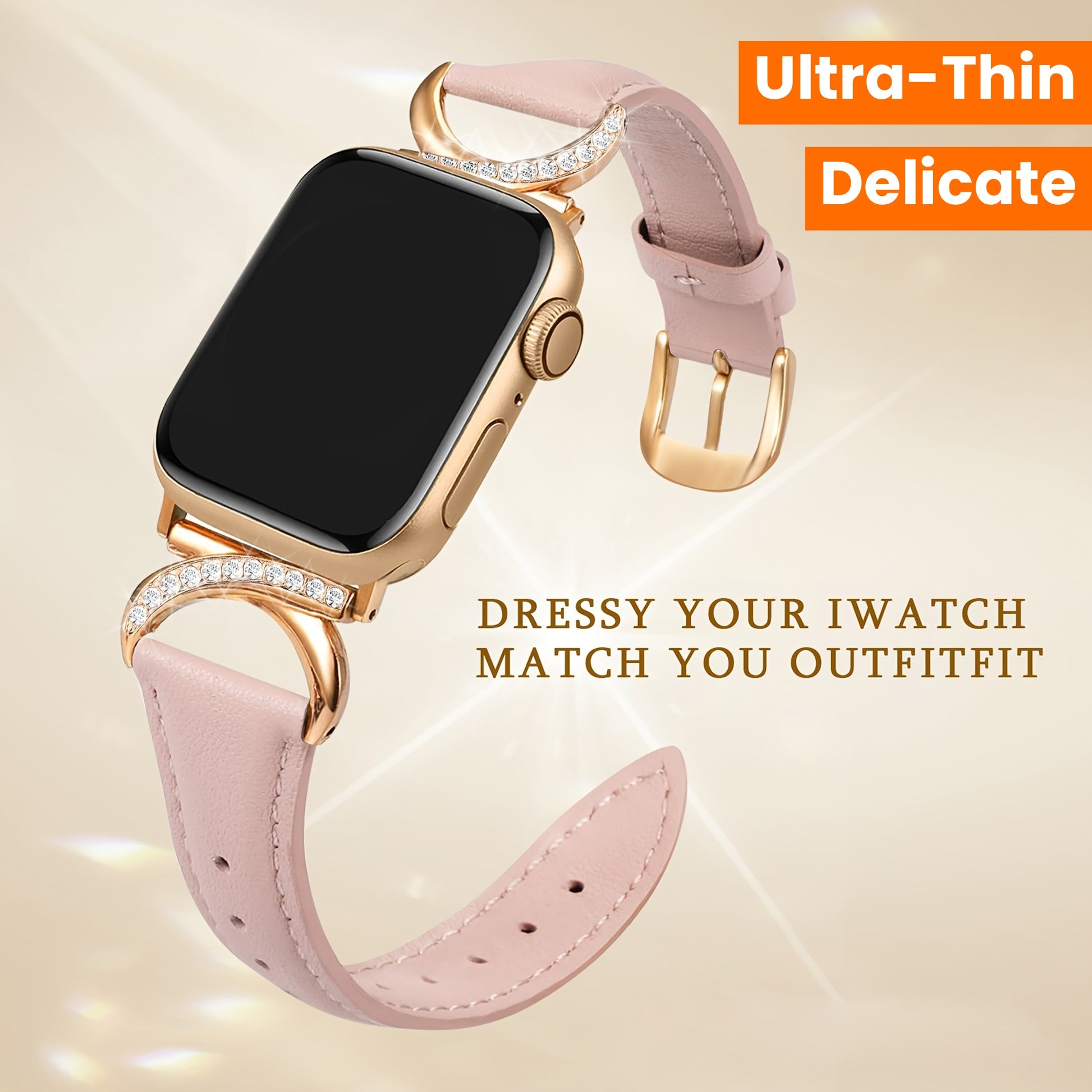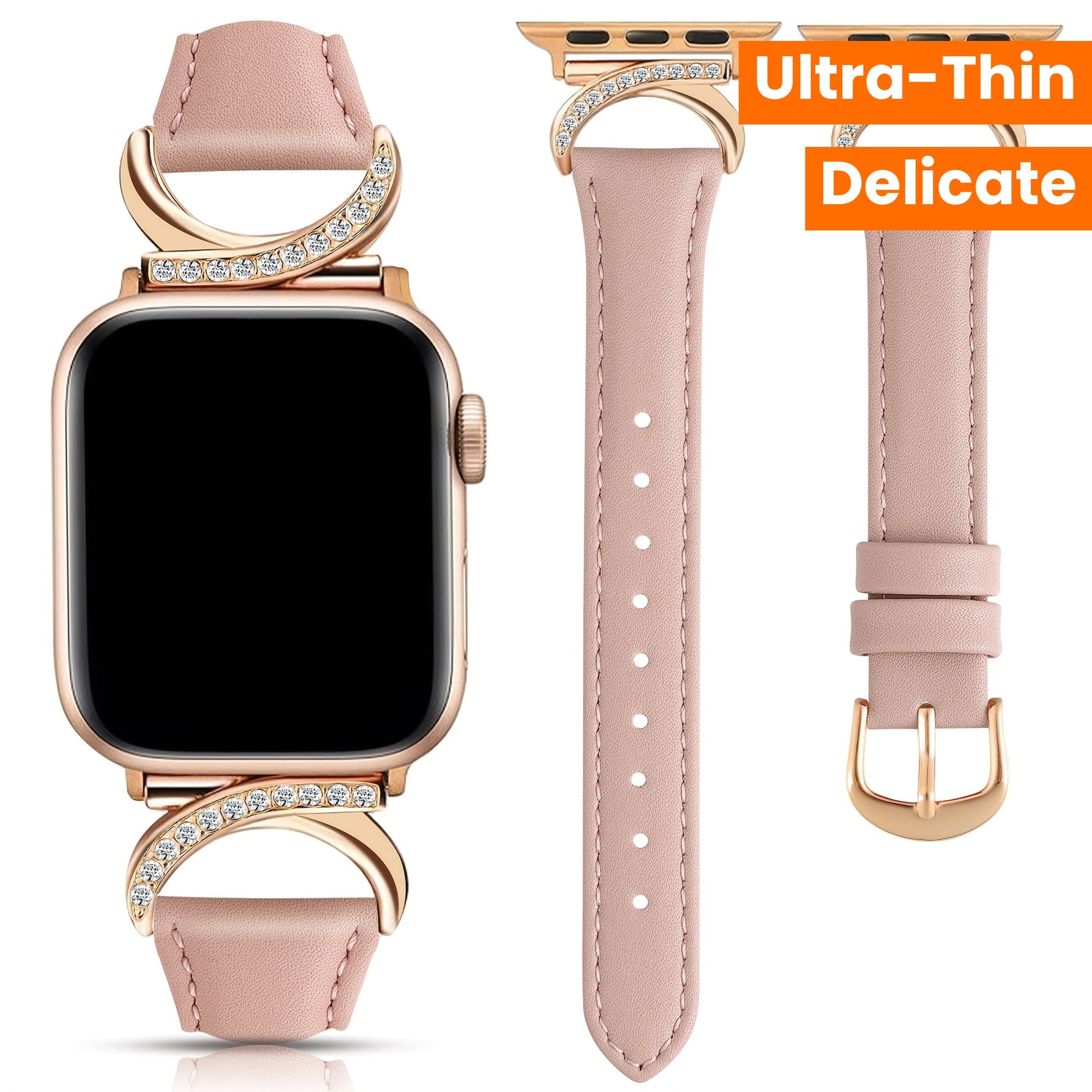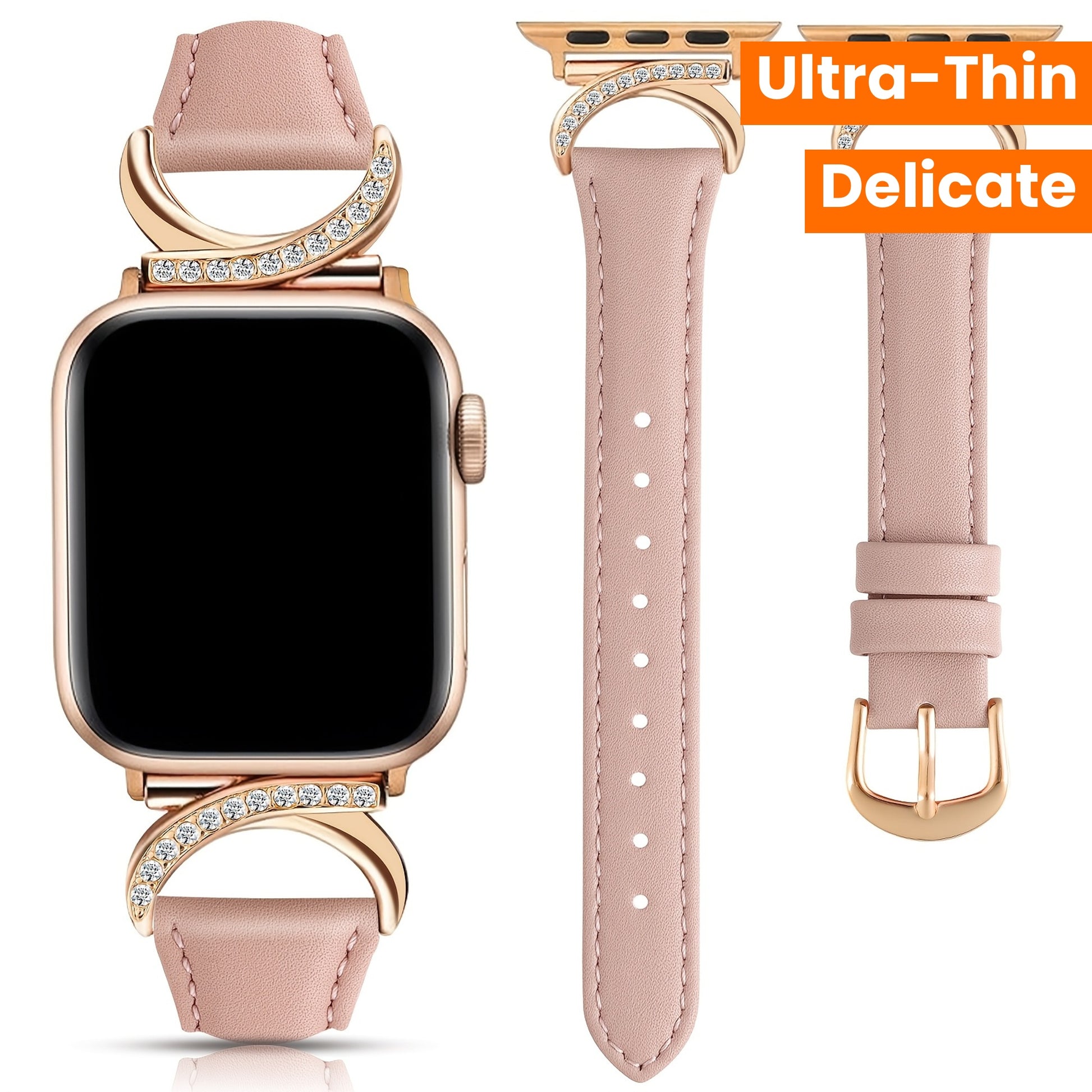 Apple Watch Leather Strap - Ultra-thin Delicate C-shaped Golden Buckle - 41mm 40mm 38mm 42mm 44mm 45mm 46mm 49mm Replacement for Series 10 9 Ultra SE 8 7 6 5 4 3 2 1