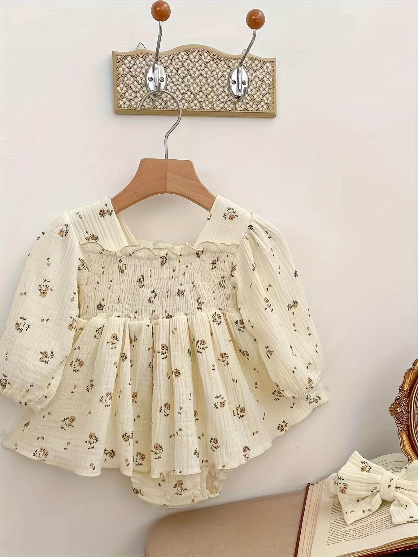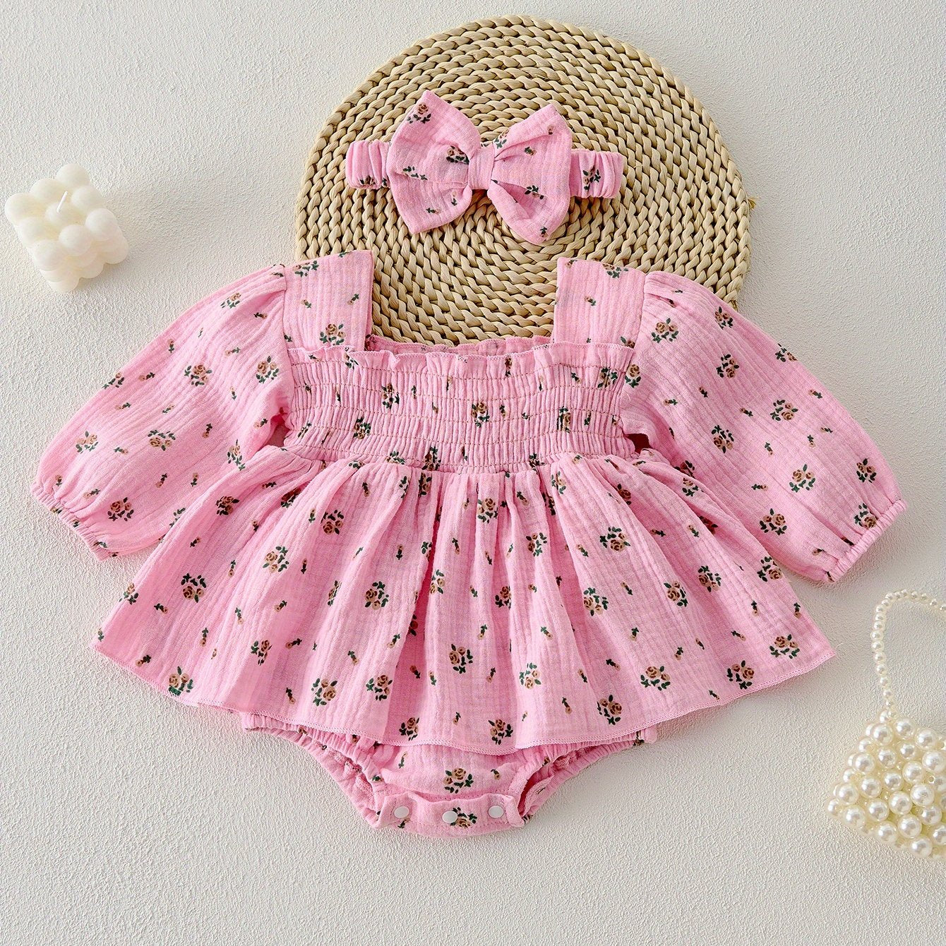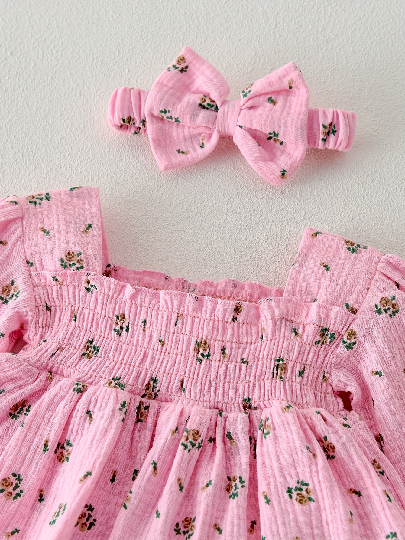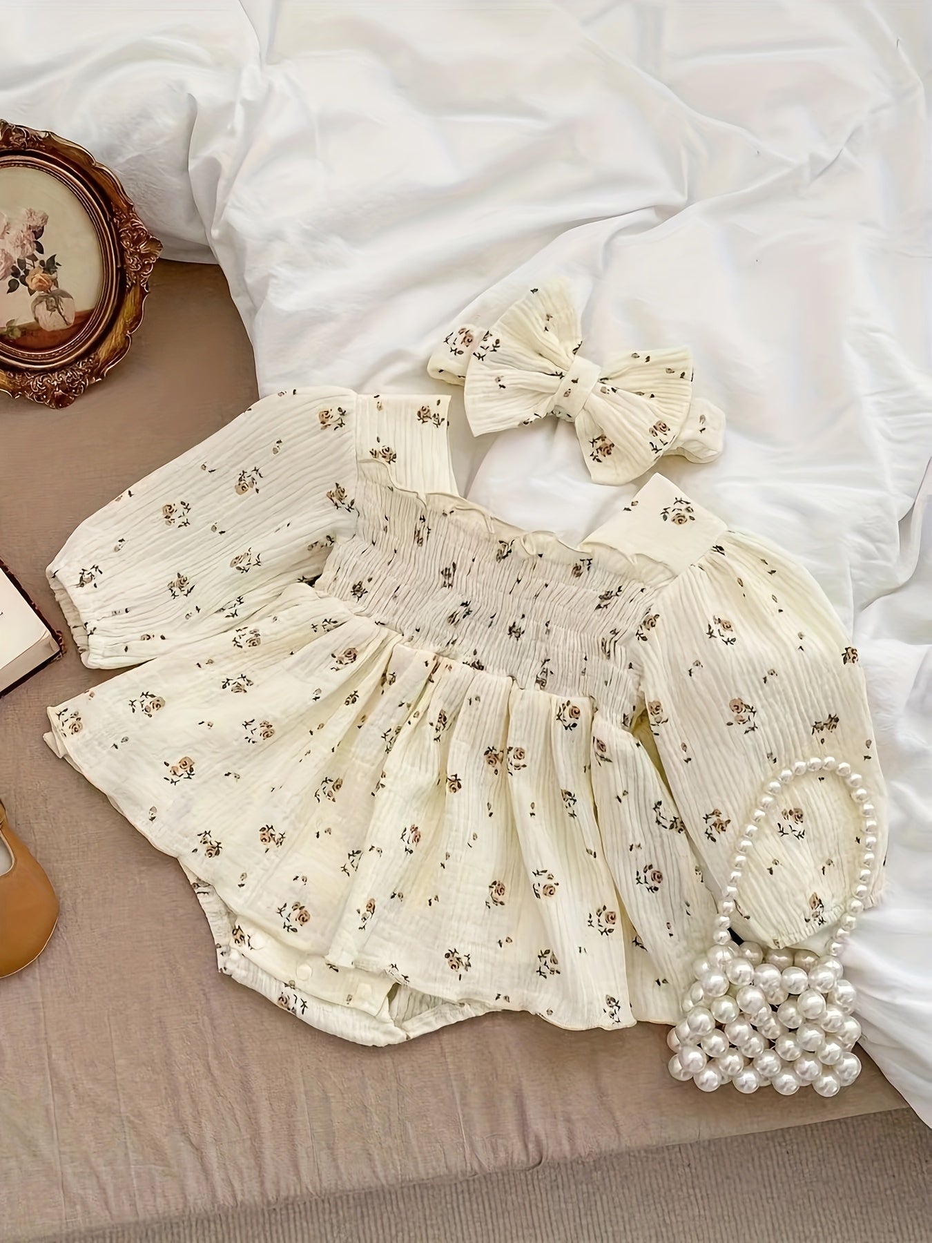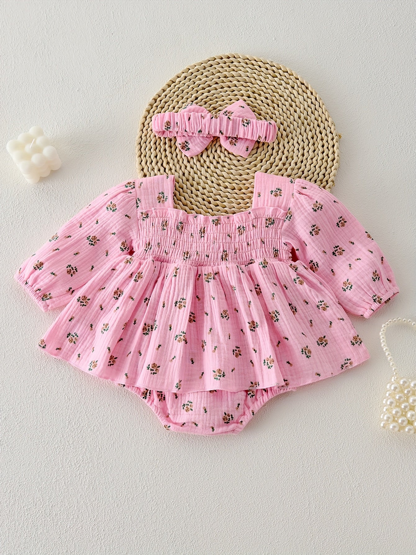 Baby Princess Dress with Small Floral Print And Climbing Suit