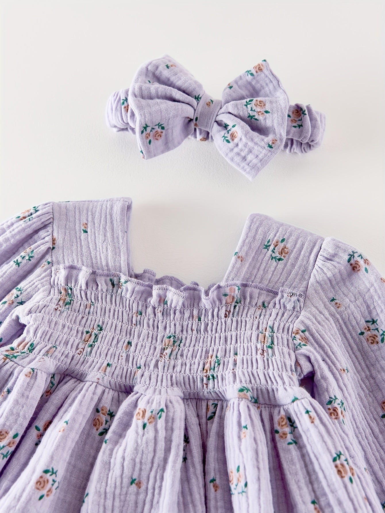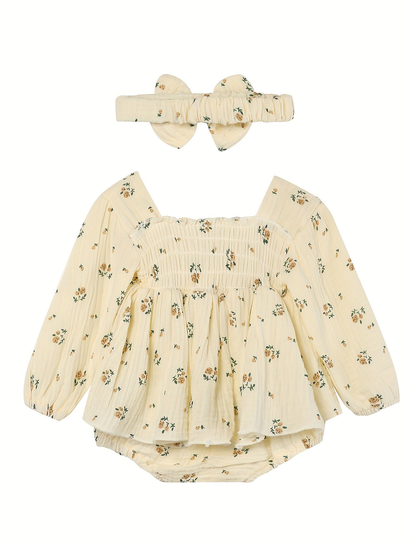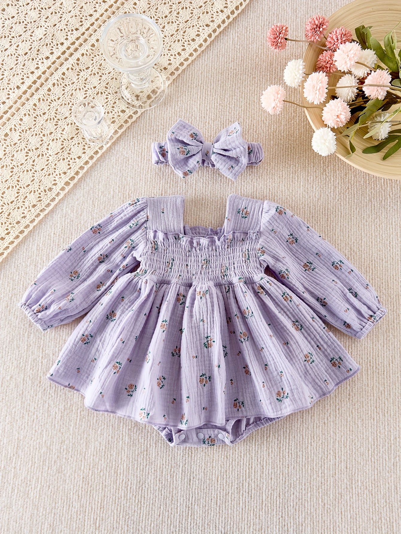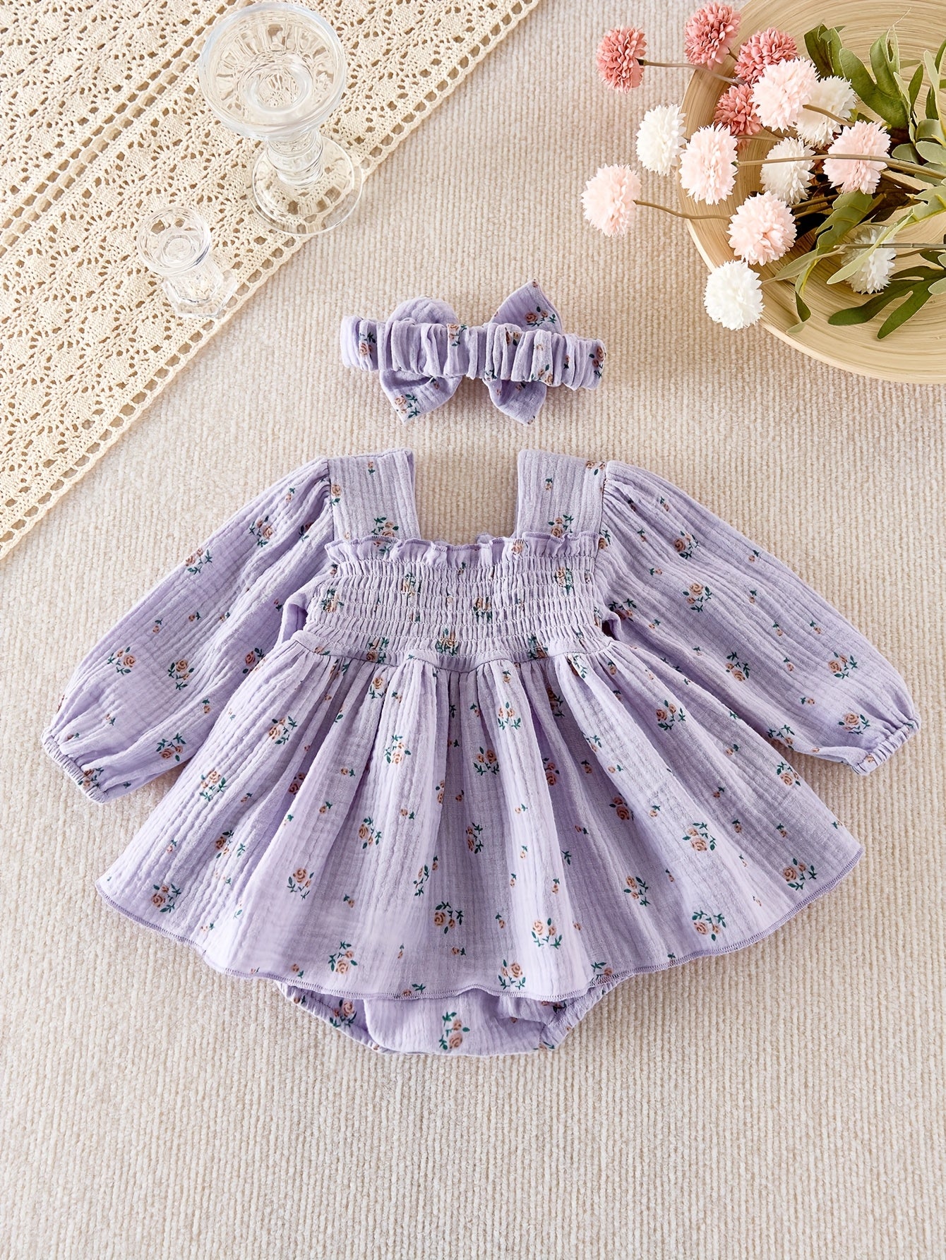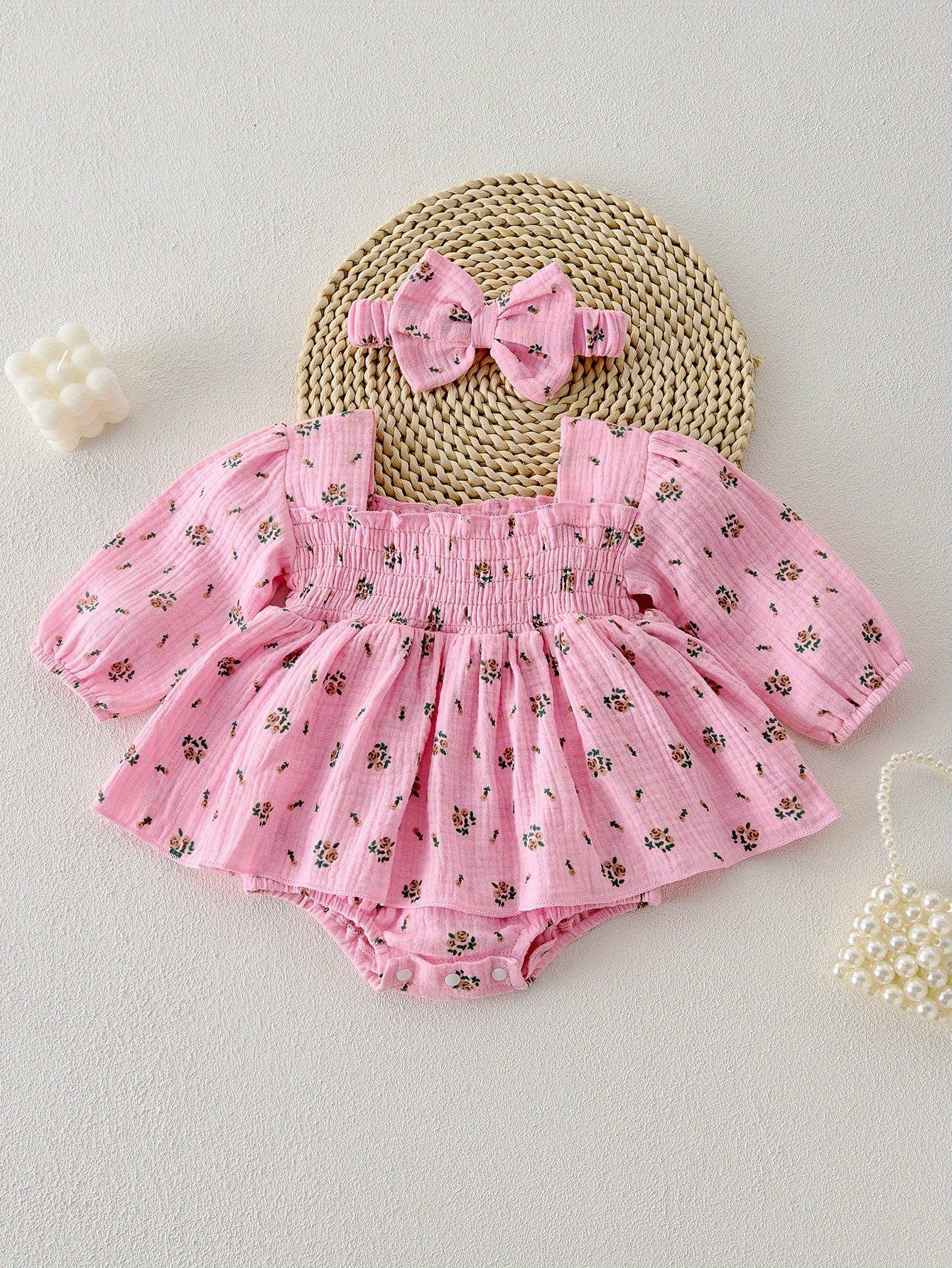 Baby Princess Dress with Small Floral Print And Climbing Suit