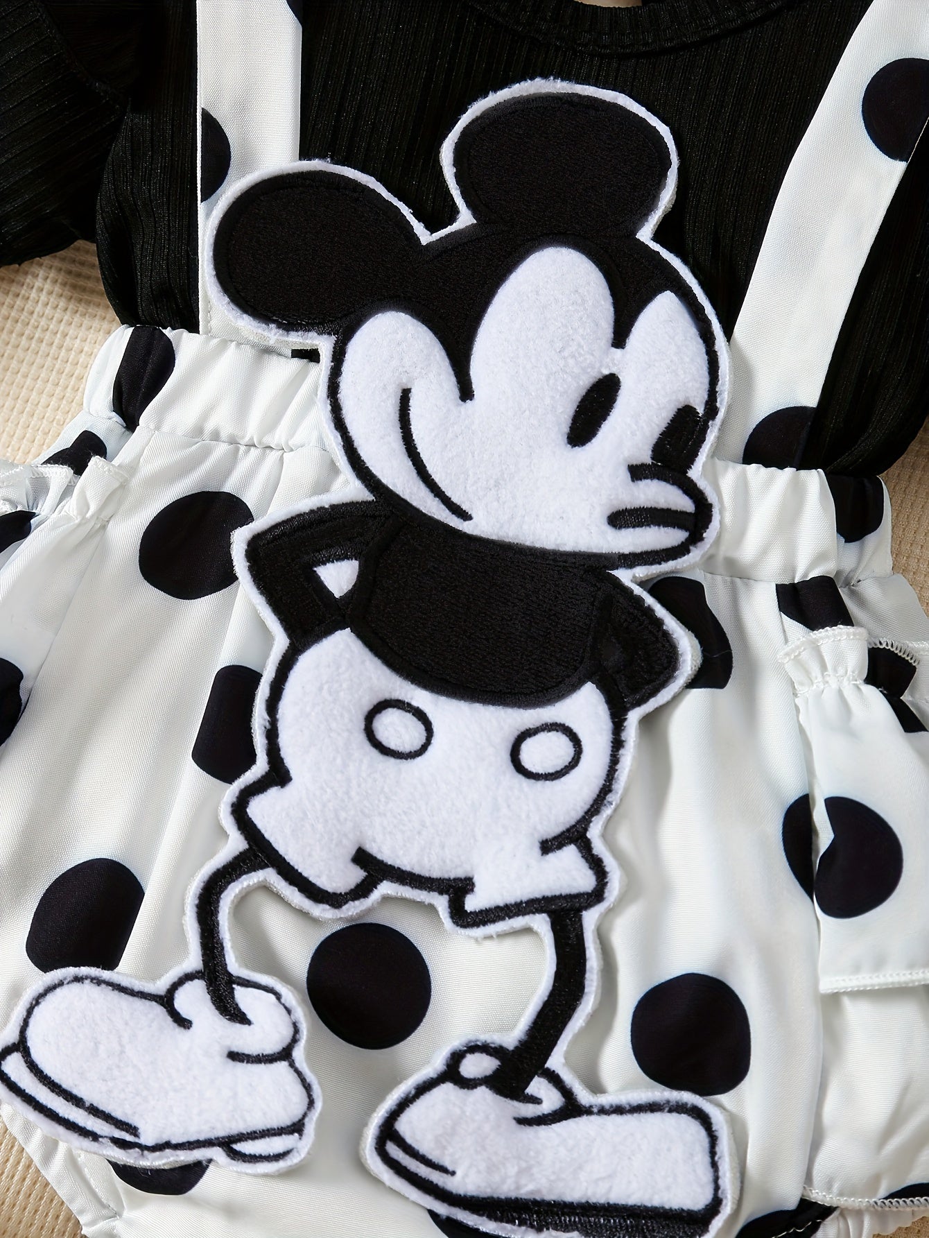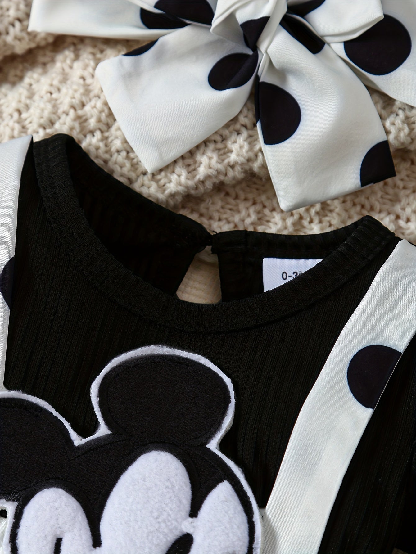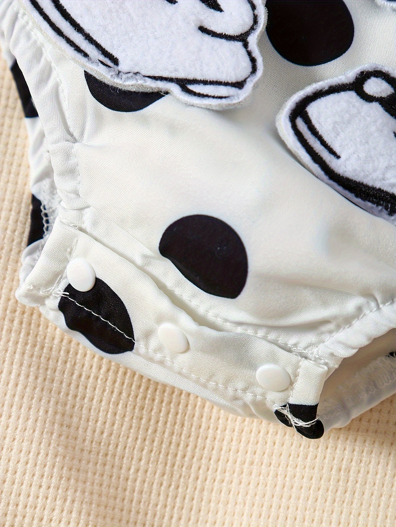 Baby's Cute Mouse Patchwork Faux Two-piece Bodysuit, Casual Short Sleeve Layered Romper Dress, Toddler & Infant Girl's Onesie For Summer