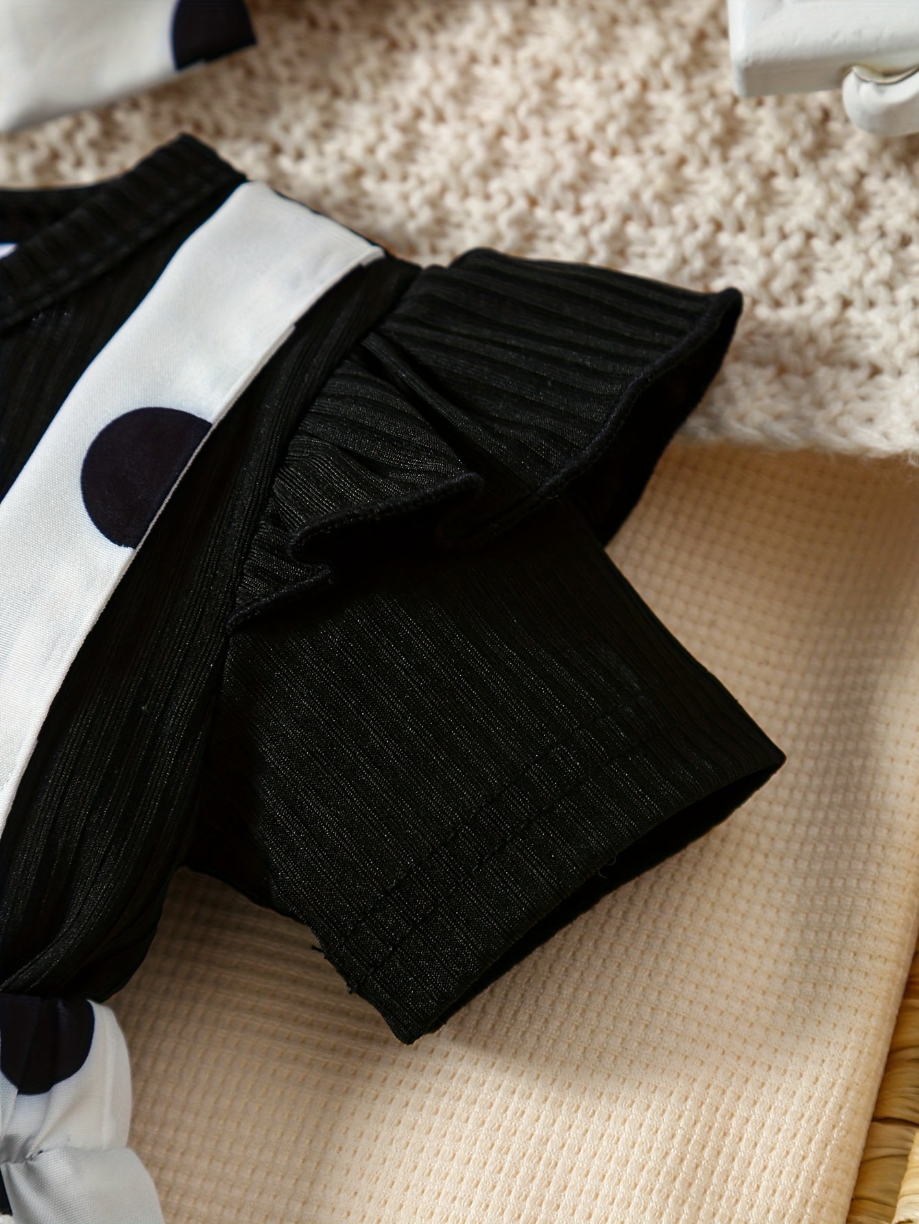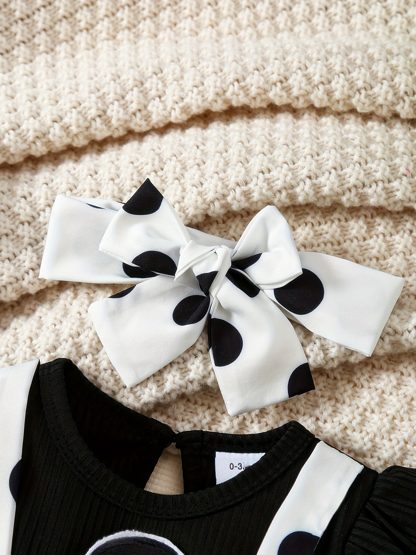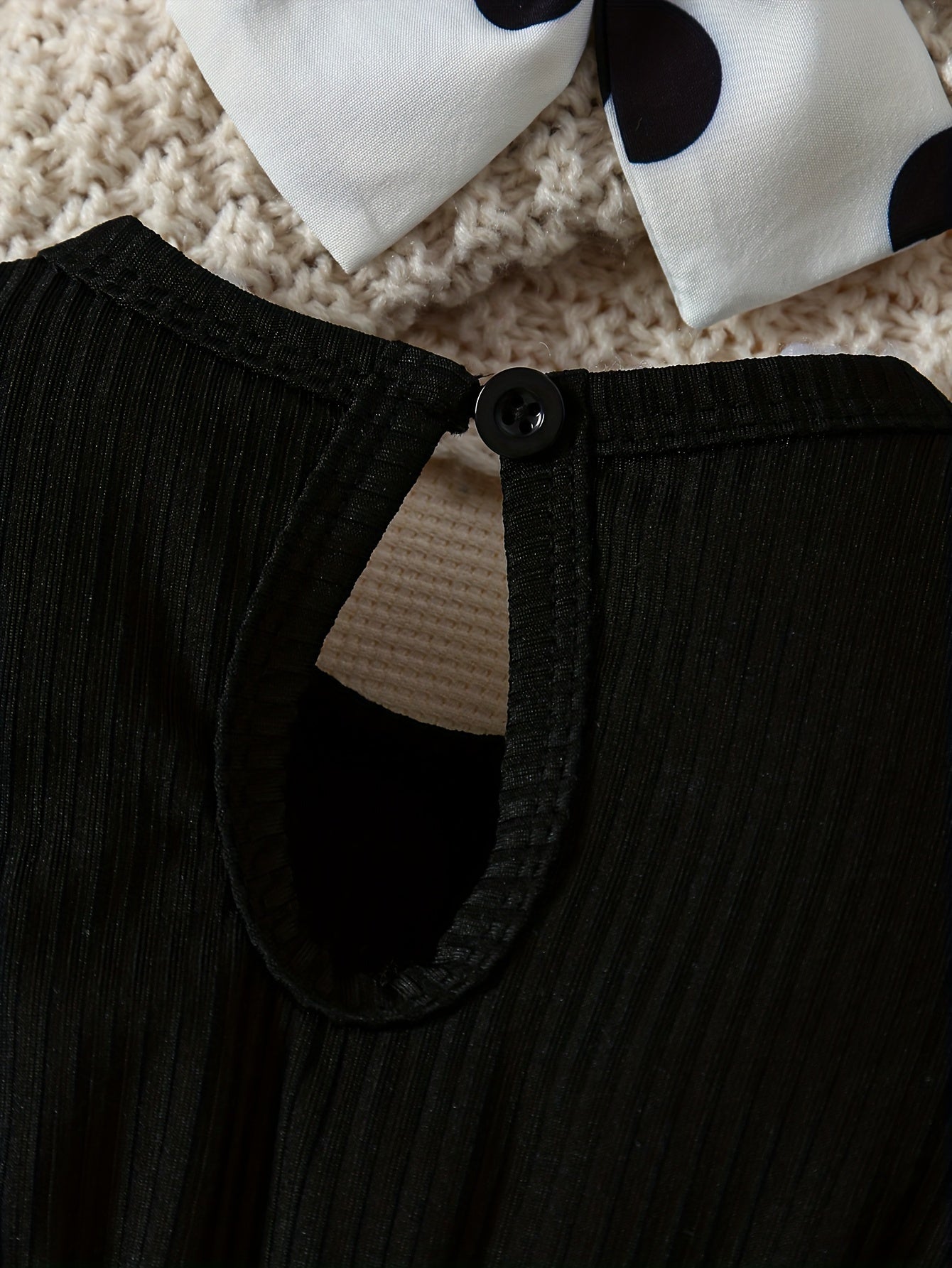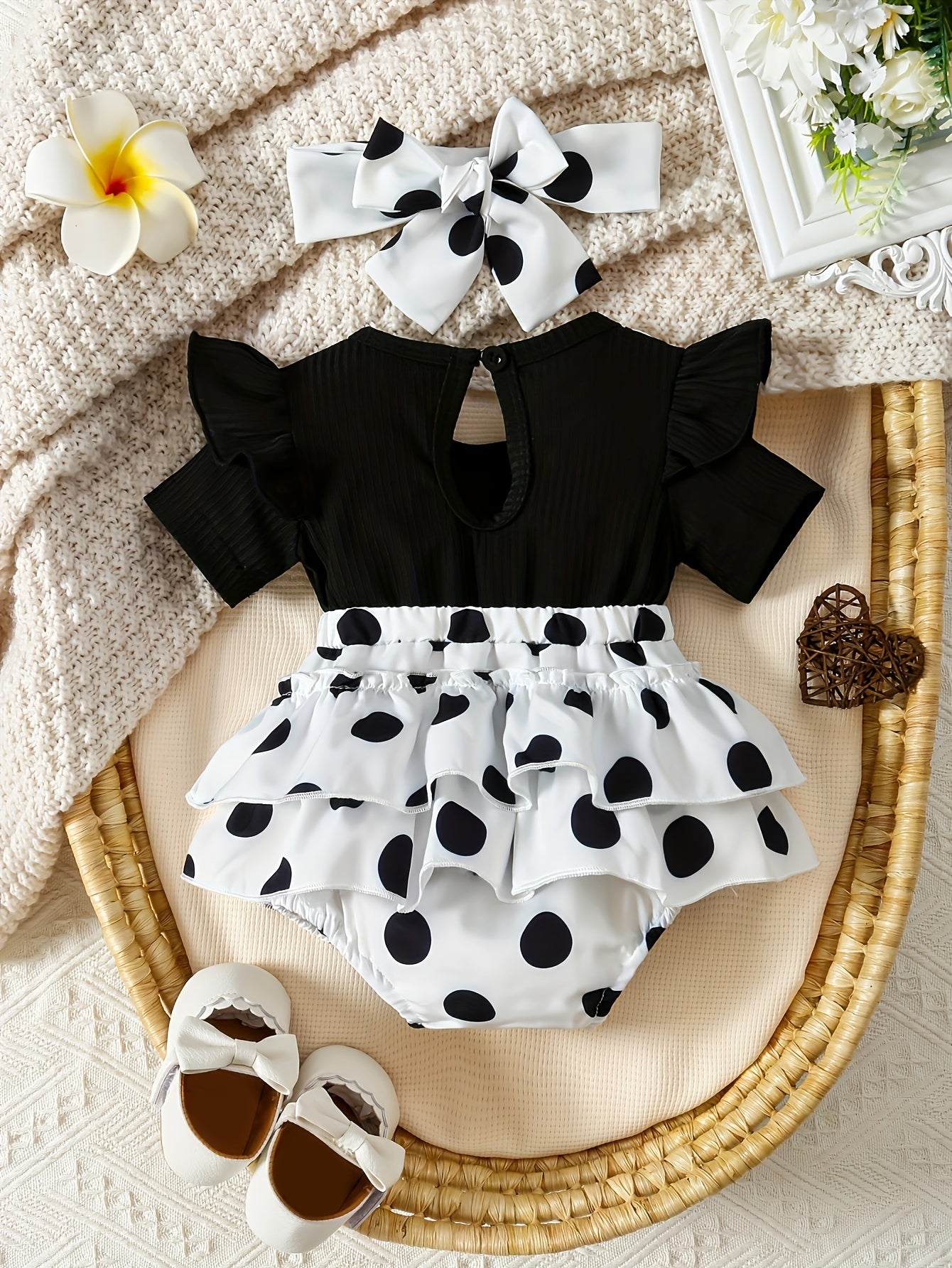 Baby's Cute Mouse Patchwork Faux Two-piece Bodysuit, Casual Short Sleeve Layered Romper Dress, Toddler & Infant Girl's Onesie For Summer