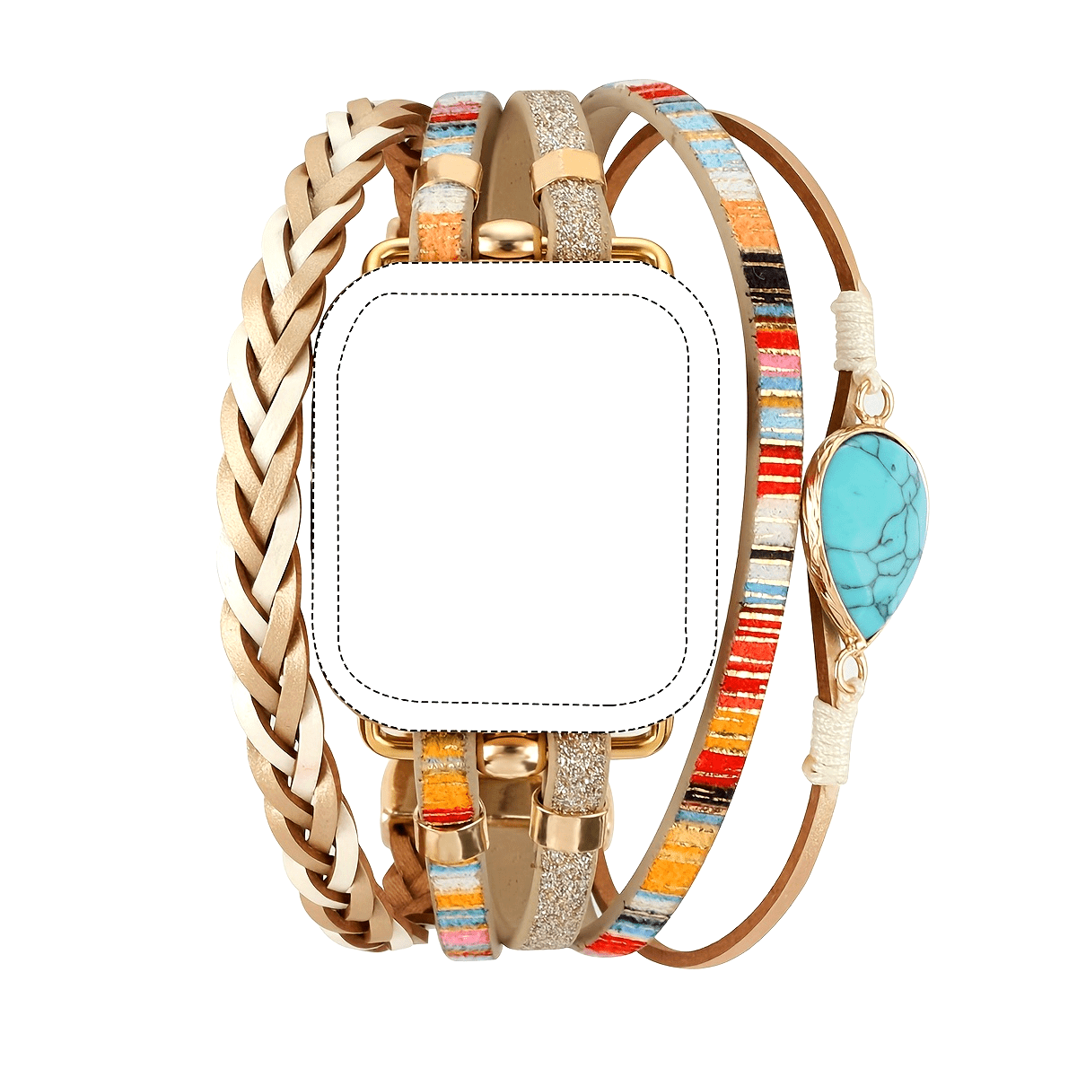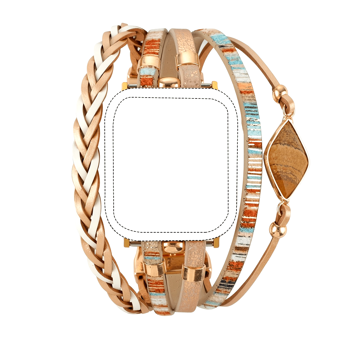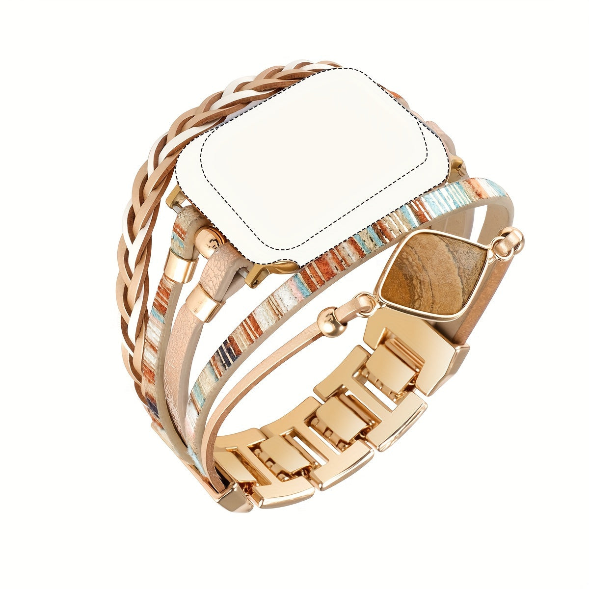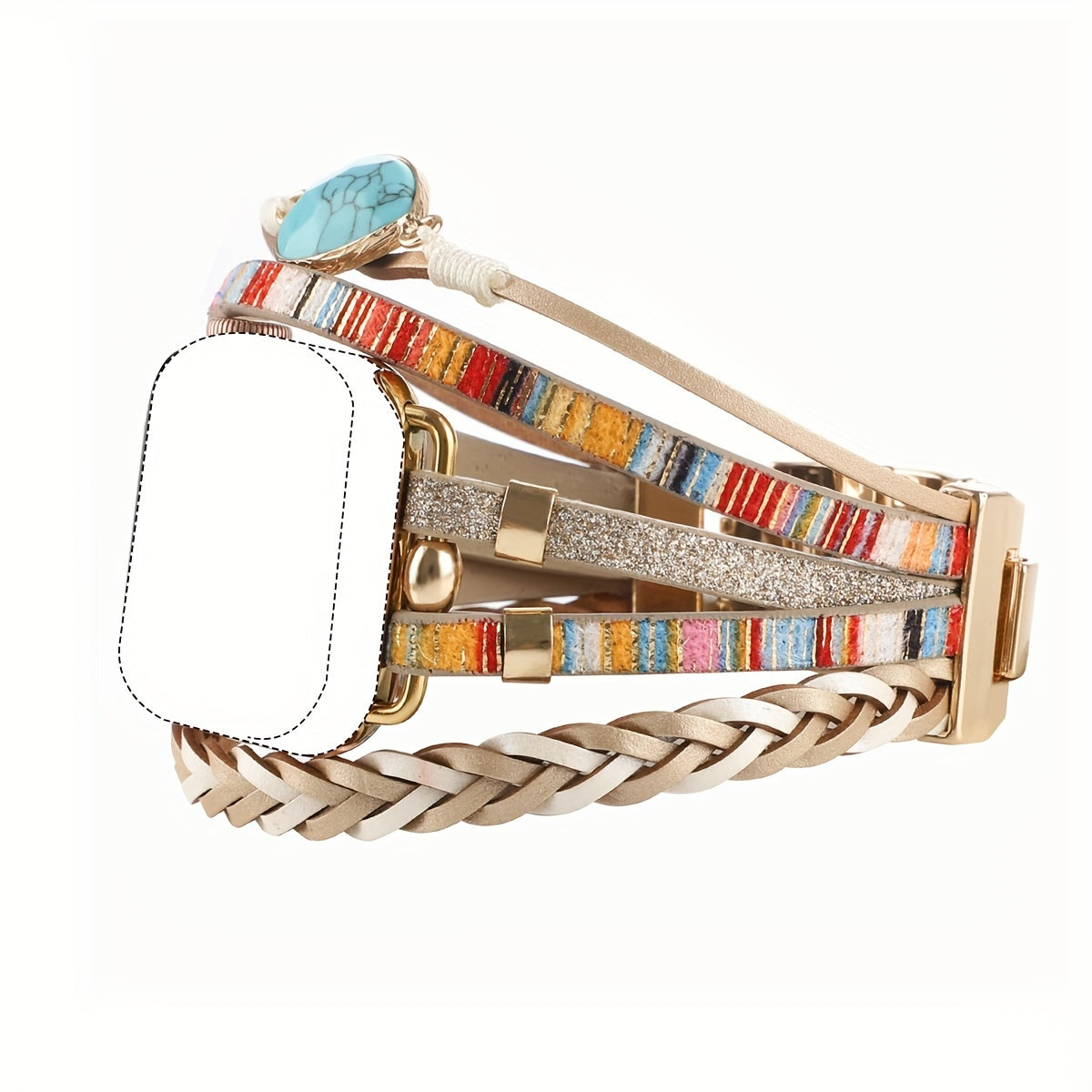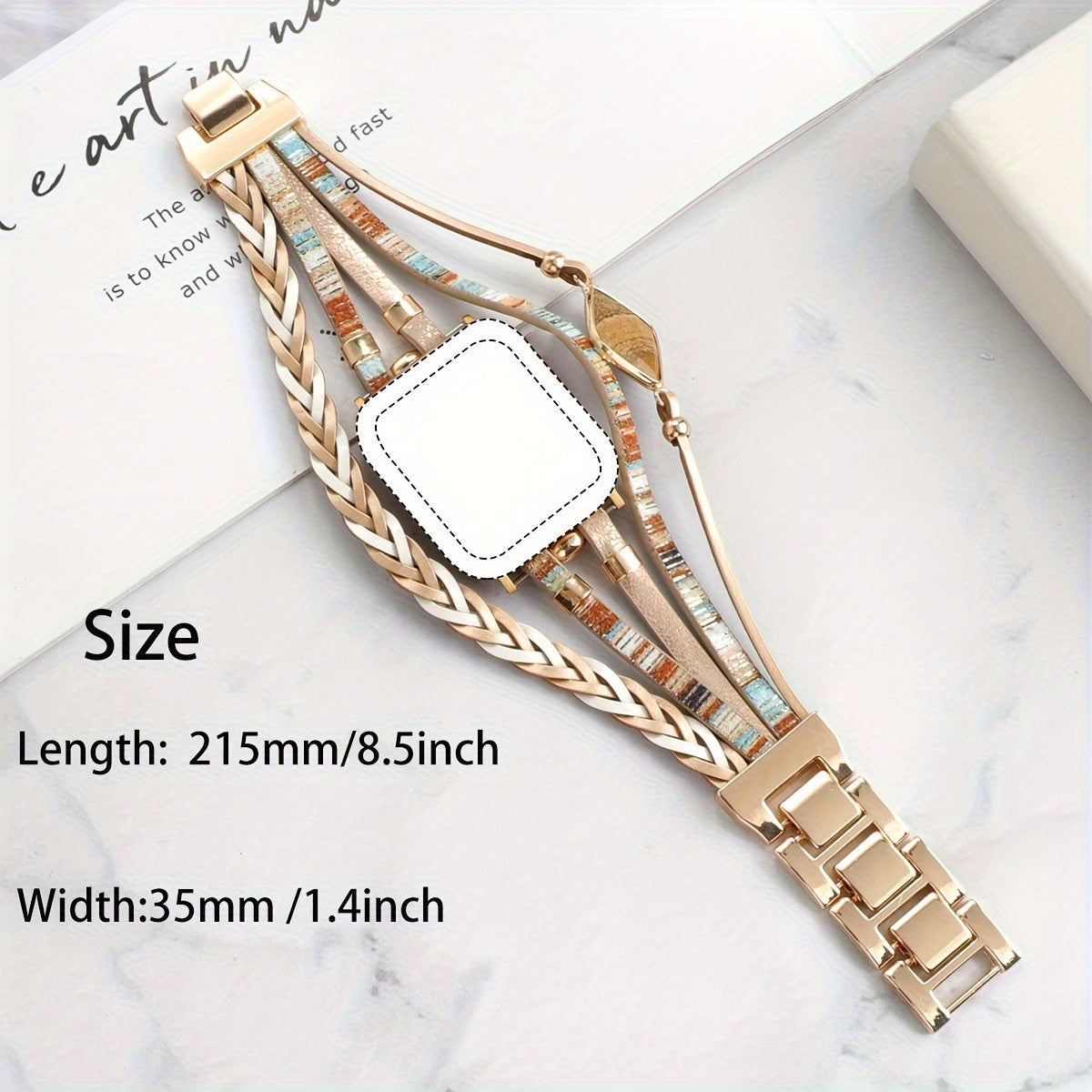 [Bohemian Metal Bracelet] Bohemian Style 1pc Multi-Layer Woven Metal Bracelet Watch Band for Apple Watch - 38mm to 49mm, Ultra Ultra 2 SE 9 8 7 6 5 4 3 2 1, Metal Buckle, No Battery Needed, Stylish Accessory