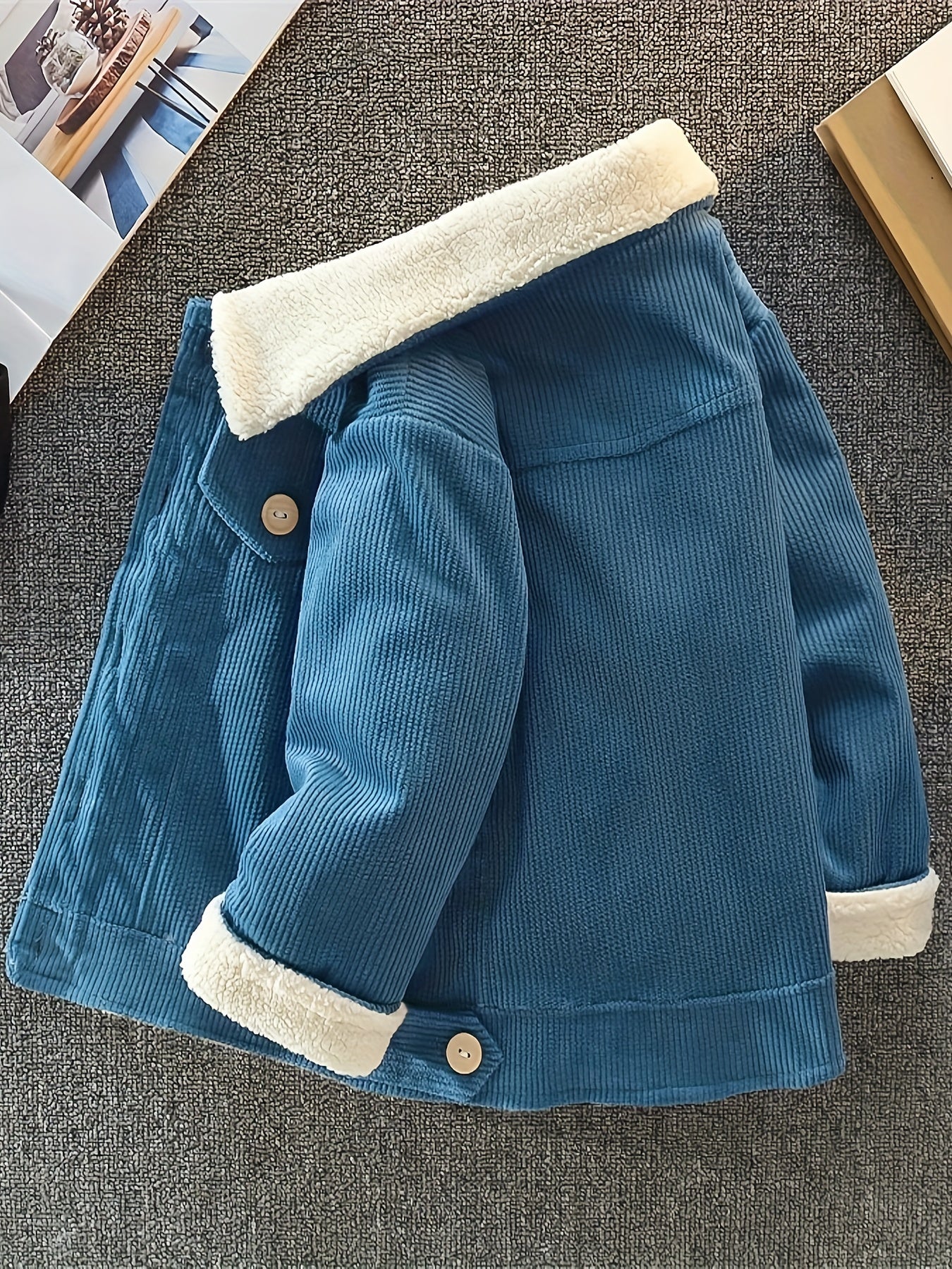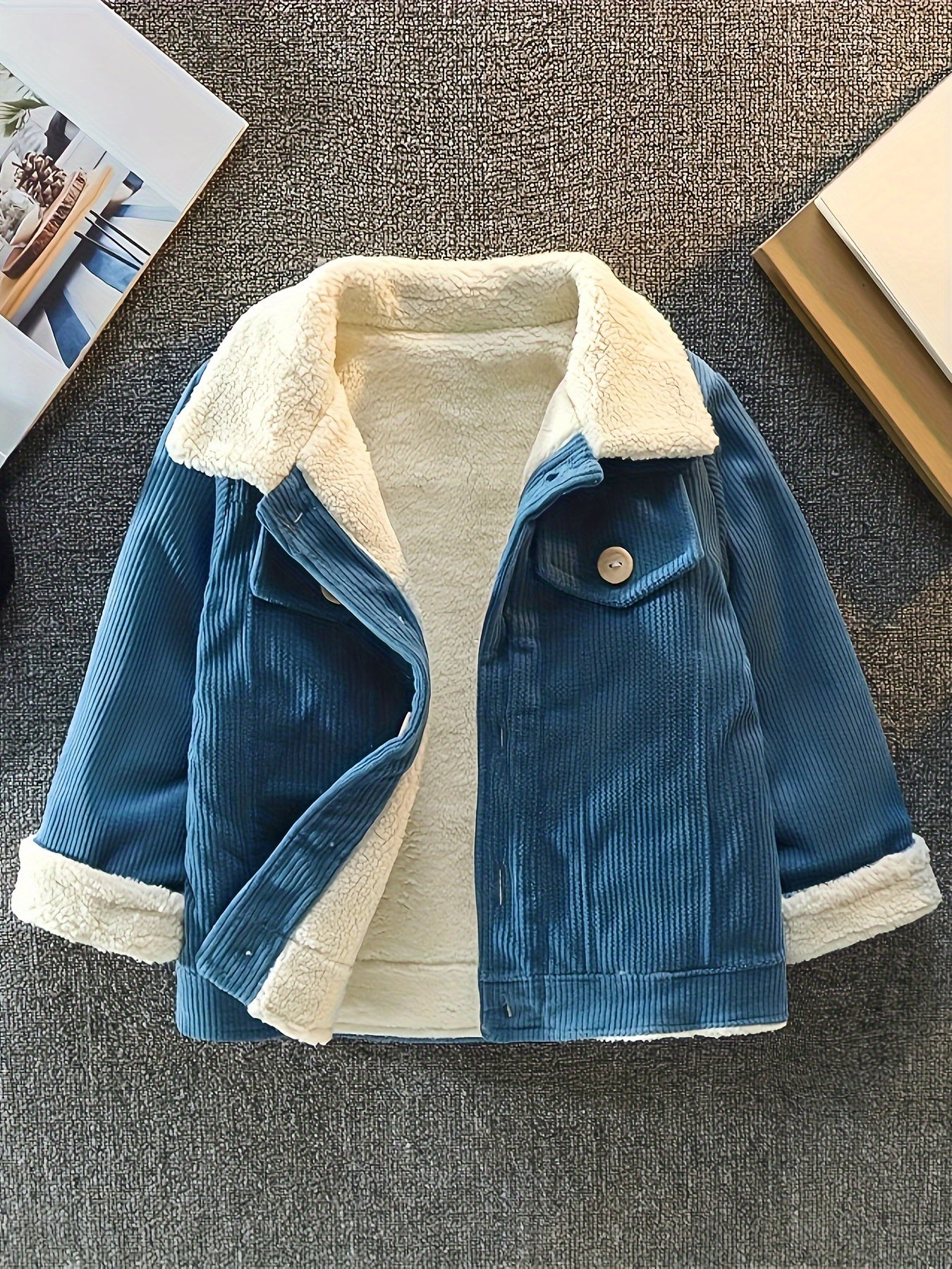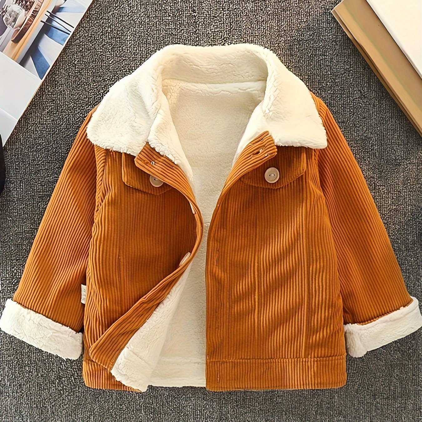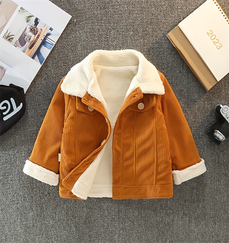 Boys Corduroy Fleece Jacket, Thick Button Front Coat, Boy's Clothes For Spring Fall Outdoor