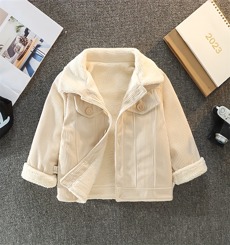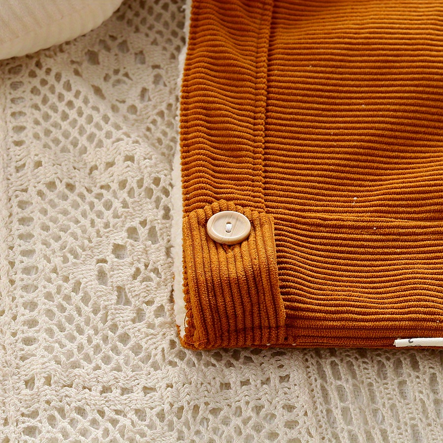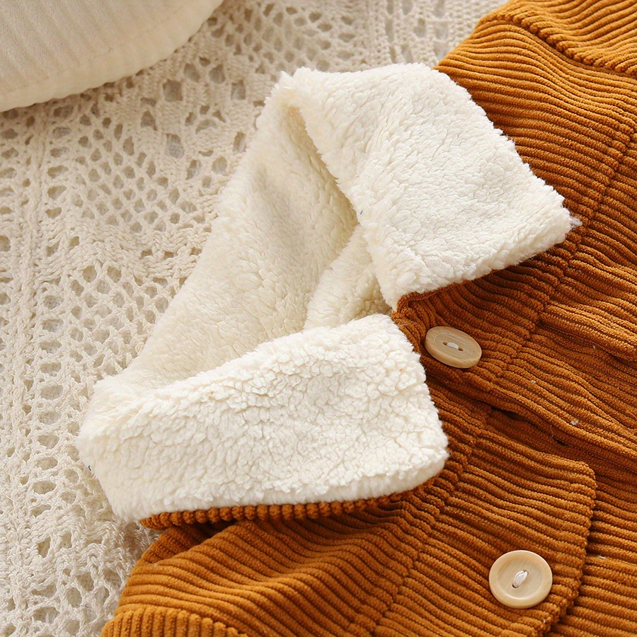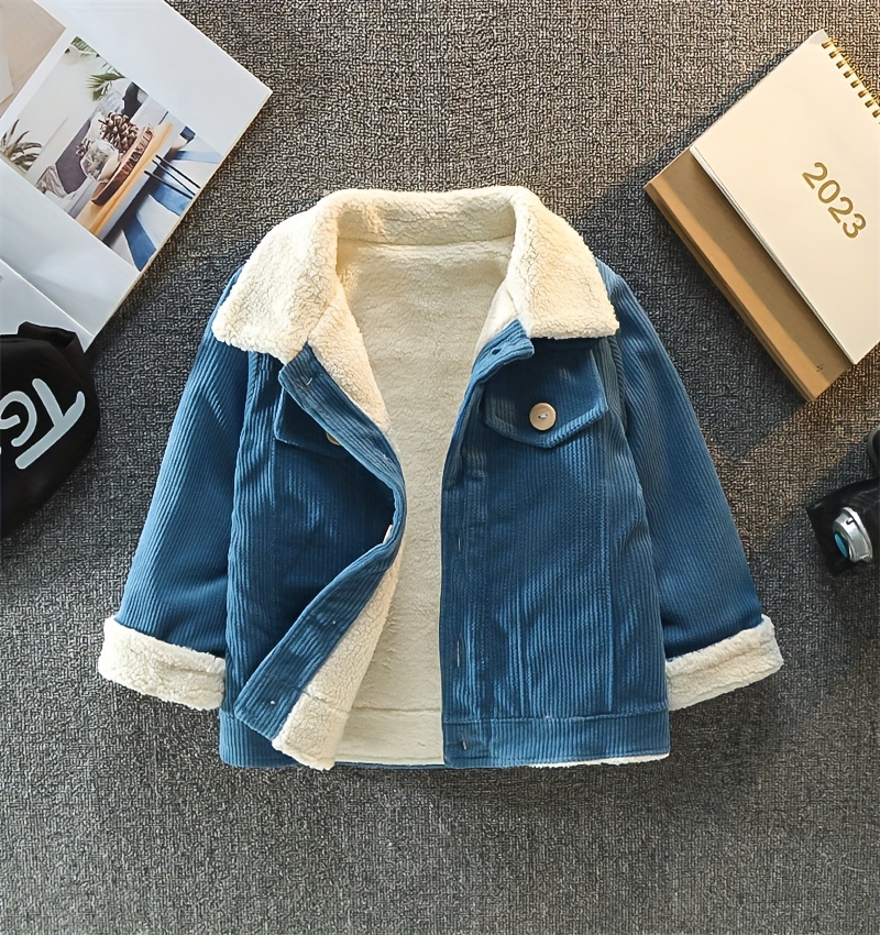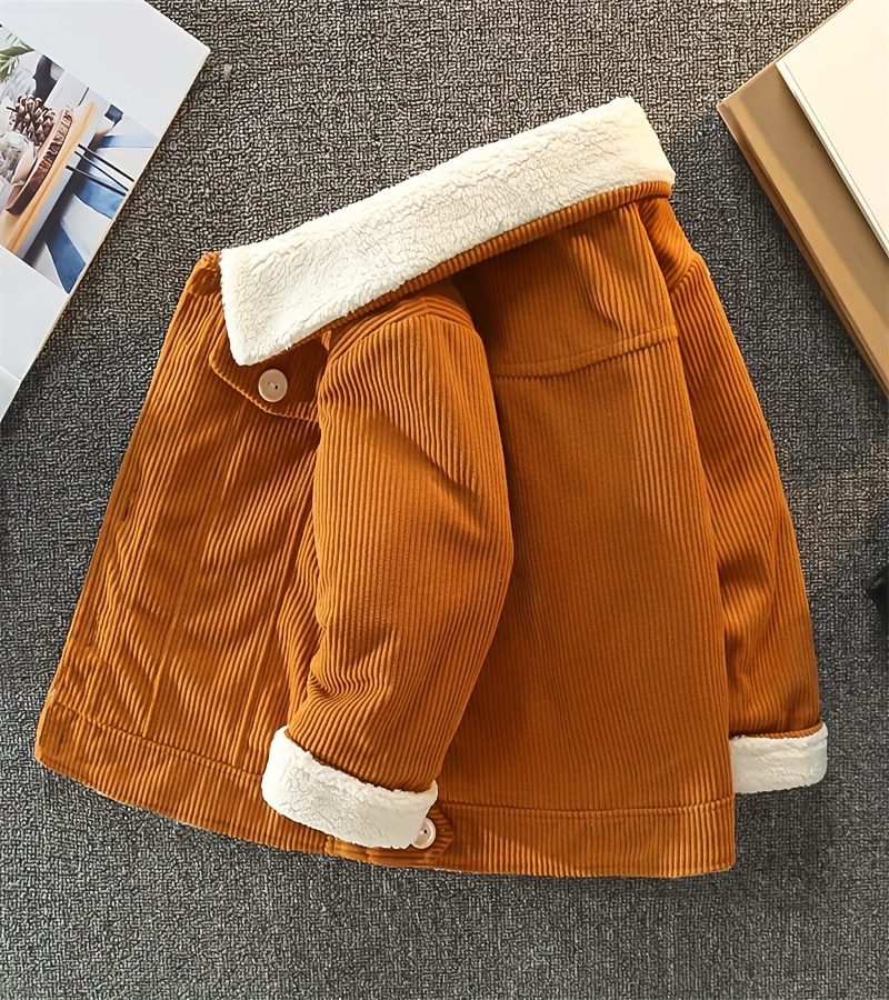 Boys Corduroy Fleece Jacket, Thick Button Front Coat, Boy's Clothes For Spring Fall Outdoor