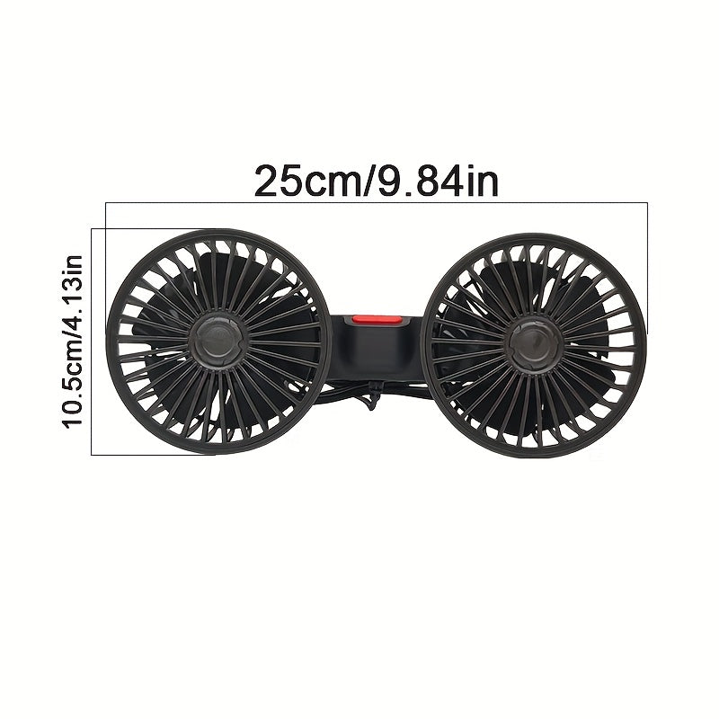 Car Fan, Dual-Head Car Ventilator, High Airflow Rear Seat Fan with Adjustable Speeds and Multi-Angle Rotation for Strong Wind Power
