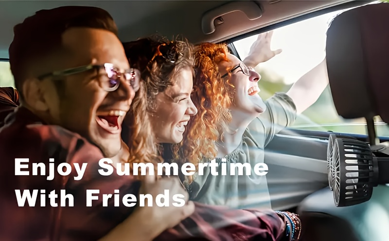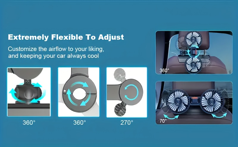 Car-Mounted Fan, Small Car Air Conditioner, Dual Fans, Vehicle Ventilator, Automotive Mini AC, Dual-Head Rear Fan, Powerful Windflow, 5 Blades, 360° Rotation, Ultra-Quiet Operation, Easy Clip Installation, Foldable for Underheadrest Storage, Detachable fo