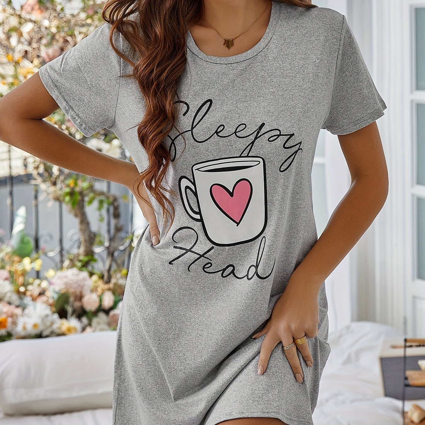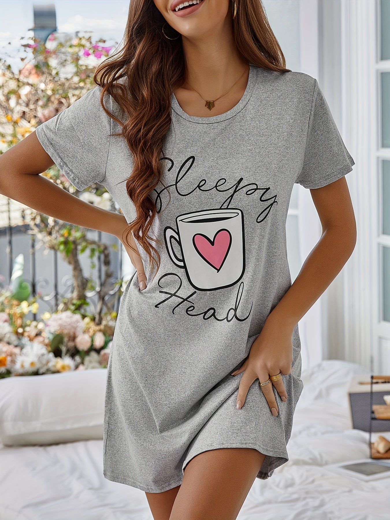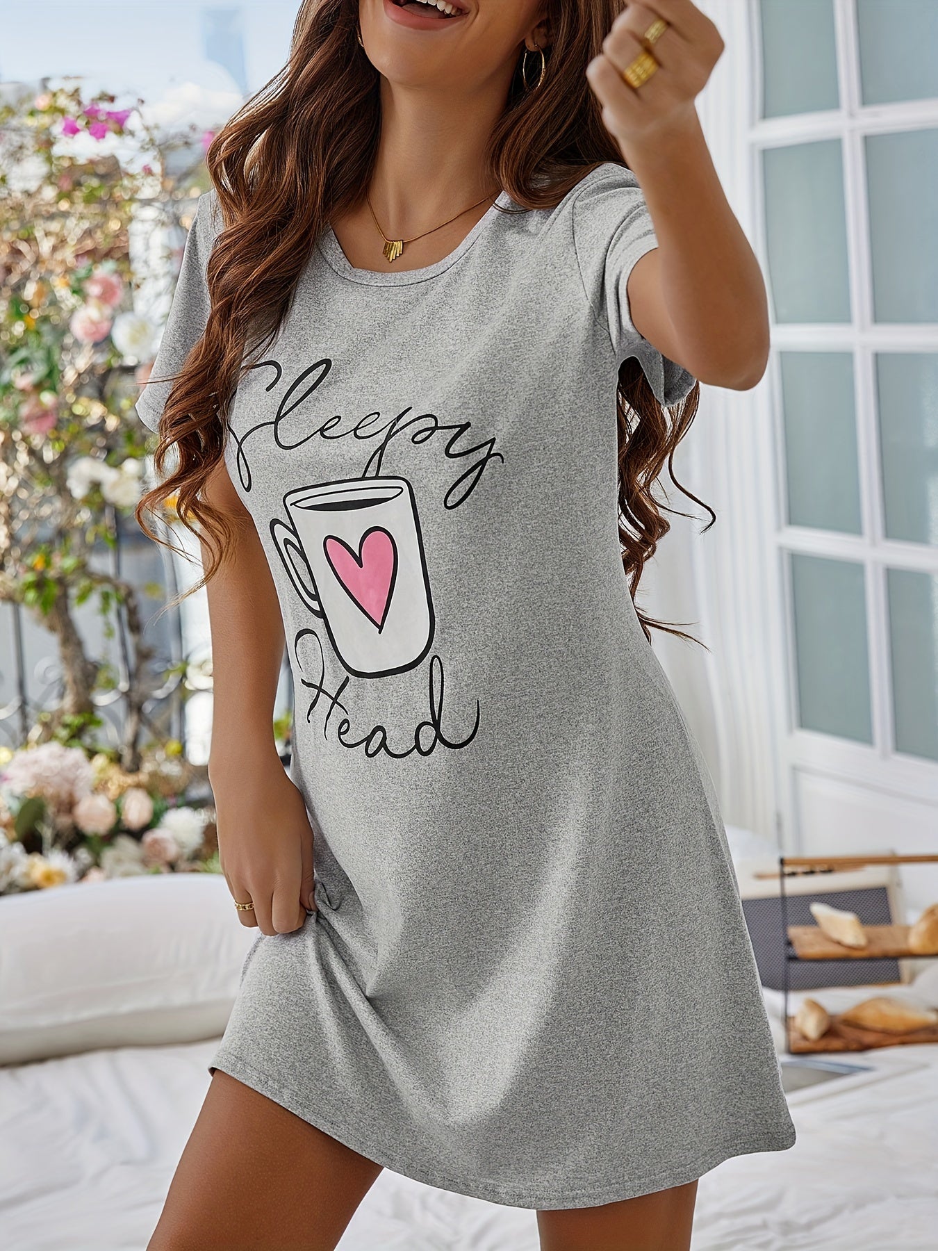 Cozy Printed Nightdress - Soft Short Sleeve Crew Neck Pajama Dress for Womens Comfortable Sleepwear and Lounging - Stylish Womens Dresses for a Relaxing Night In