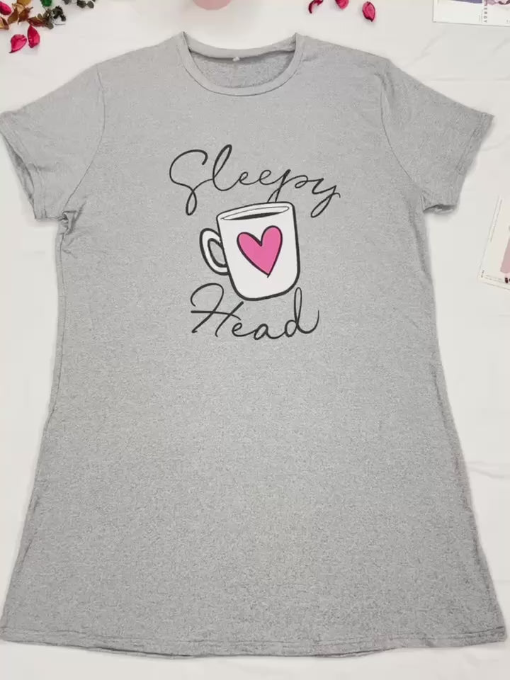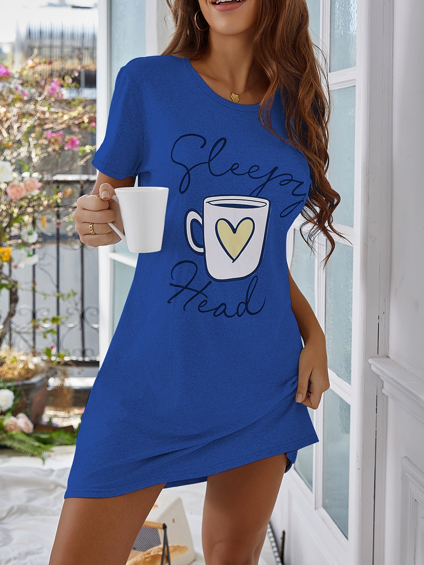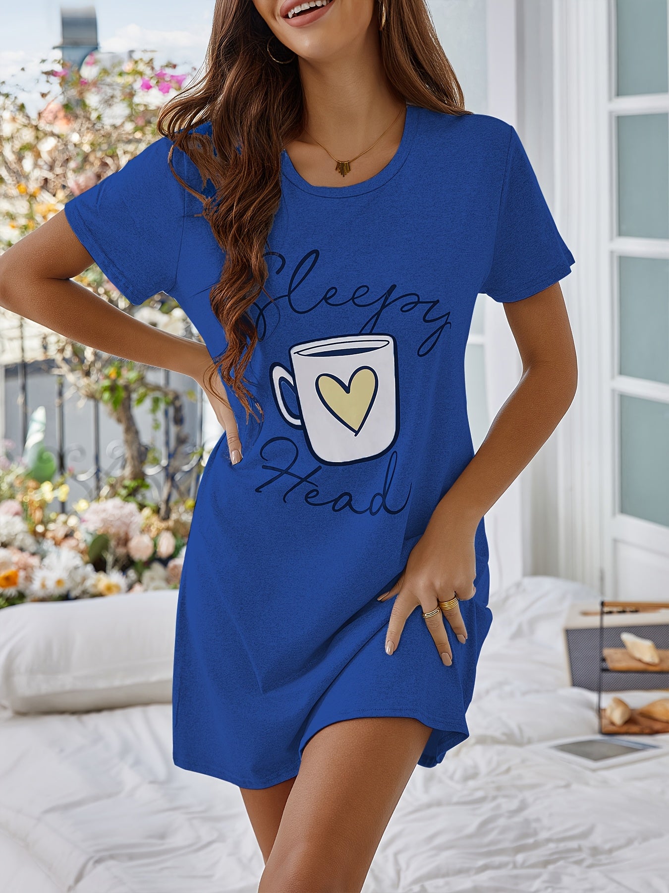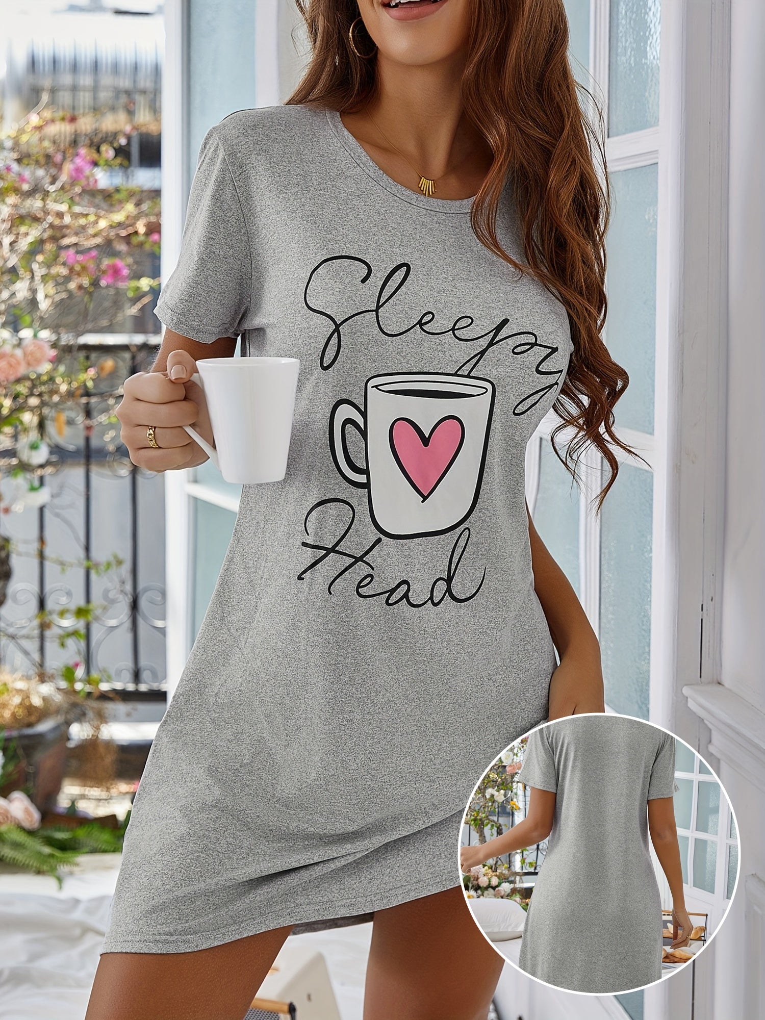 Cozy Printed Nightdress - Soft Short Sleeve Crew Neck Pajama Dress for Womens Comfortable Sleepwear and Lounging - Stylish Womens Dresses for a Relaxing Night In