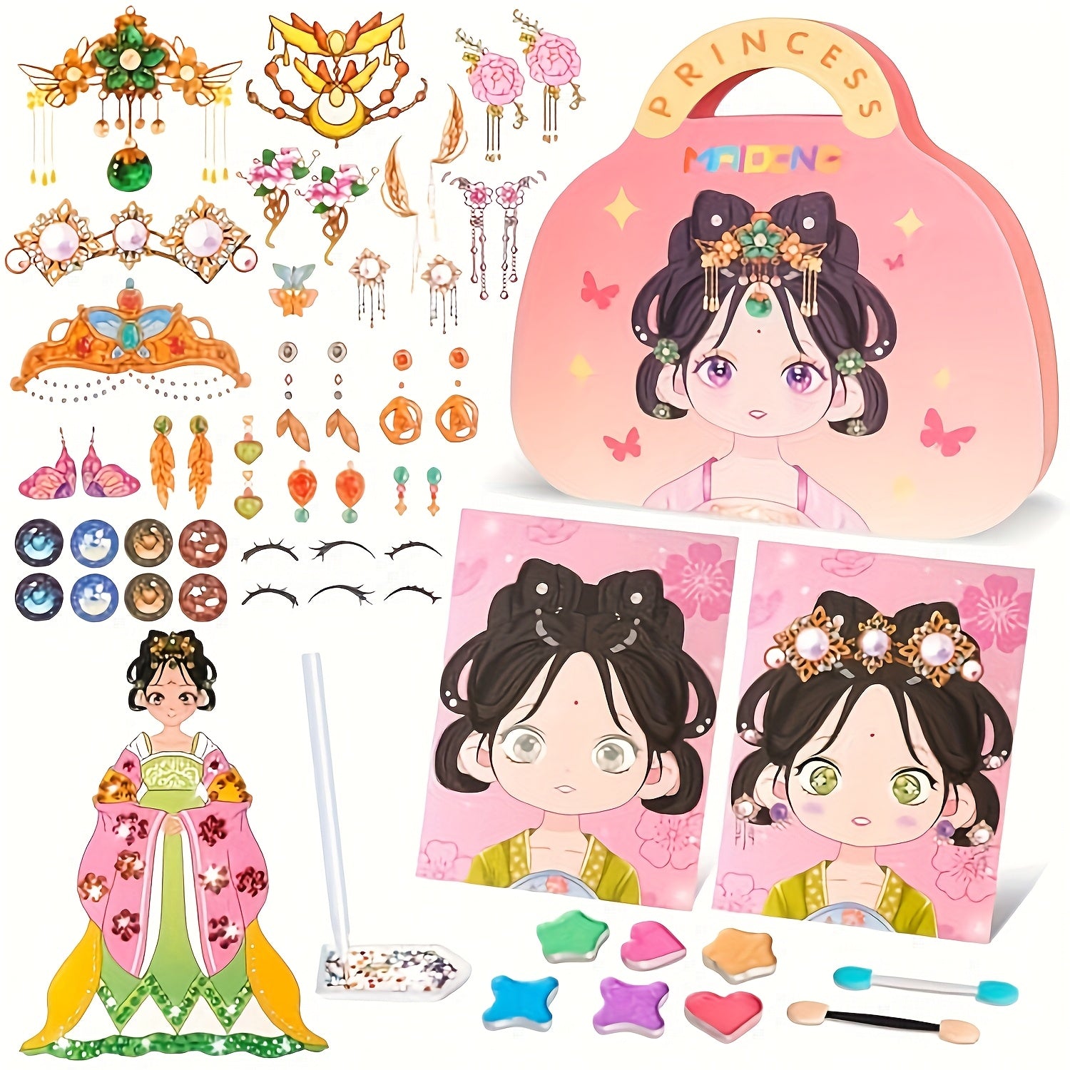 DIY Princess Makeup Bag Set - Handmade Makeup Dress Up, Diamond Stickers, Suitable for Girls | Perfect for New Year, Easter, Christmas, Mother'S Day, New Year